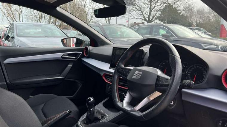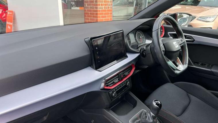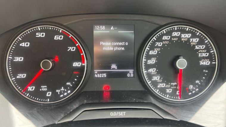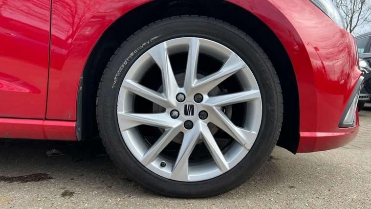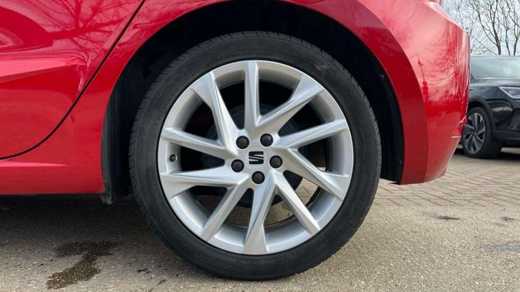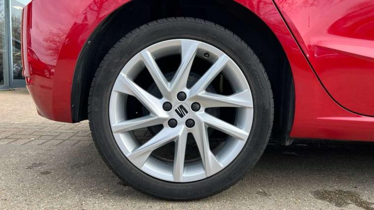 'Lights On' Reminder warning buzzer, 8" Digital cockpit, 9.2" touchscreen navigation system with type C USB socket, Voice control and DAB/AM/FM radio, Auto start and stop system, Bluetooth audio streaming with handsfree system, Digital clock, E-call, Full link smartphone integration with mirror link, wireless apple carplay, Google android auto + USB Type C cable for apple and android devices, Lane assist, Low fuel warning light, Outside temperature gauge, Power Steering, Seat connect with safety, service, remote and online, SEAT drive profiles and ECO function, SEAT logo boot release, Speed limiter, Trip computer, Sports suspension, Auxiliary input socket, Radio/MP3 player, SD card slot, Steering wheel mounted controls, Anti theft roof antenna, Auto dimming rear view mirror, Automatic rain sensing wipers, Black door mirrors, Body colour bumpers, Body colour door handles, Brilliant black window surrounds, Dark tinted rear windows, Electric adjustable/heated/folding door mirrors, Electric front windows, Electric headlight adjustment, Electric rear windows, Front/rear fog lights, FULL LED automatic headlights with dynamic headlight range control, coming and leaving home, LED daytime running lights, LED tail lights, Rear roof spoiler with FR twin exhausts, Rear side wing doors, Rear wiper, Third brake light, 3 seat bench in 2nd row, 60/40 split folding rear seat, Ambient interior lighting, Chrome detailing and black headlining, Cloth upholstery, Dual zone climate control with combination filter, Front courtesy lights, Front cupholders x 2, Front reading lights, Gear shift indicator, Glovebox, Height adjustable front and rear headrests (five), Height adjustable front seats, Height/reach adjust steering wheel, Illuminated air vent surrounds, Illuminated boot, Instrument lighting with brightness control, Isofix, Leather multifunction flat bottomed sports steering wheel, Passenger sunvisor, Single front passenger seat, Sports seats, Sunvisors with mirror and driver side card holder, 3 point seatbelts on all 3 rear seats, ABS, Active front headrests, Child locks on rear doors, Electronic stability control, Energy recovery system, Front assist forward collision warning and autonomous emergency braking, Front driver and passenger side airbags with curtain airbag and front passenger airbag deactivation, Hill hold control, Multi-Collision braking, Seat belt reminder for front and rear seats, Tiredness recognition system, Tyre pressure monitoring system, Electronic engine immobiliser, Locking wheel bolts, Perimeter alarm and interior monitoring with backup horn and tow away protection, Remote central locking + deadlocks, 17" Alloy wheels in Brilliant silver,
