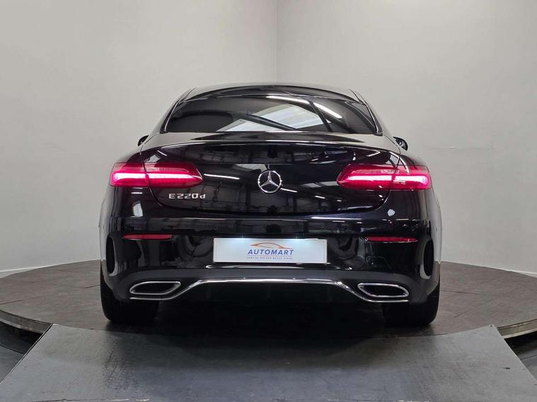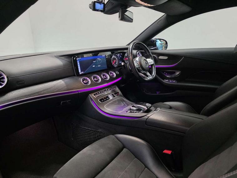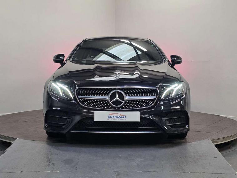 Active park assist with parktronic system, Analogue clock, Attention assist, Bluetooth interface for hands free telephone, Brake wear warning light, Collision prevention assist plus, Direct steering, DYNAMIC SELECT with a choice of driving modes (ECO, Comfort, Sport, Sport+ and Individual), Engine start/stop button, Instrument cluster with two tube-design round dials and 8.4-inch TFT multifunction display, Mercedes connect me, Multi function trip computer, Outside temperature display, Remote boot release, Service indicator (ASSYST PLUS), Touchpad with control wheel, Diesel particulate filter, Incorrect fuelling protection, 2 USB ports in centre console, Audio 20 with USB, touchpad and control wheel with Media Interface with Bluetooth interface and hands-free function, DAB Digital radio, Steering wheel mounted audio controls, Adaptive brake lights, AMG bodystyling, AMG boot lid spoiler in body colour, AMG front, rear apron and side skirts, Automatic rain sensing wipers, Body colour door handles, Body coloured bumpers, Electric adjustable heated door mirrors, Electric front/rear windows with one touch/auto up/down, Illuminated front door sill panels with Mercedes-Benz lettering, LED daytime running lights, LED Headlights, LED tail lights, Magic Vision Control heated windscreen wiper system, Polished aluminium upper window surround, Pre-installation for roof rail systems, Twin exhaust pipes, 2 way rear head restraints, 3-spoke flat bottom multifunction AMG steering wheel with Touch Control buttons, trimmed in black nappa leather, 4 way adjustable front head restraints, 40:20:40 split folding rear bench seat, AMG floormats, Artico man-made leather upper dash trim, Bag hook in luggage compartment, Black roof lining, Centre armrest and door handle illumination, Child seat recognition sensor, Chrome door pins, Cupholders in centre console, Dual zone automatic climate control, Easy entry seats, Front and rear door pockets, Front centre armrest with storage compartment, Front footwell lights, Front seat back map pockets, Front seatbelt electric feeders, Heated front seats, Height/reach adjust steering wheel, Height/reach adjustable steering column, Illuminated air conditioned glovebox, Interior lighting - 64 colour Ambient lighting, Interior rear light/integral reading lights, Isofix rear child seat fastenings, Lockable glovebox, Multi contour front sports seats, Multi function steering wheel, Partial electric front seats/backrest/height adjust, Rear centre armrest with 2 cupholders + storage, Sports pedals with stainless steel surfaces and rubber studs, Steering wheel gearshift paddles, Storage net in luggage compartment, Stowage compartment with 12V socket, Sunglasses holder, Sunvisors with illuminated vanity mirrors, Twin front cupholders, Mirror pack - E Class, Seat comfort pack - E Class, 3 point seatbelts, ABS, Active bonnet, Active brake assist, Adaptive brake system, Adaptive driver and front passenger airbags, Crash sensor (auto door unlocking), Drivers knee airbag, Electronic parking brake, ESP with ASR, Front and rear window airbags, Front seatbelt pretensioners, Front side airbags, Head airbags, Hill hold function, Perforated front brake discs with "Mercedes-Benz" lettering, Seat occupancy sensor, Seatbelt warning, Tyre pressure monitoring system, Warning triangle and first aid kit, Alarm system/interior protection/immobiliser, Chrome surround in electric key, Keyless Go access/ignition system, Remote central locking, Open pore black ash wood centre console, Run flat tyres,