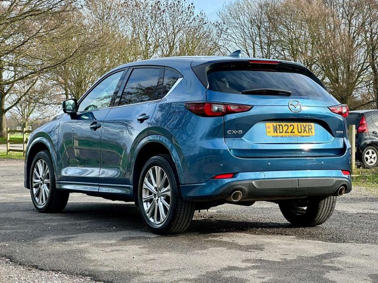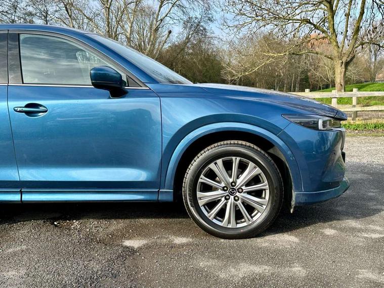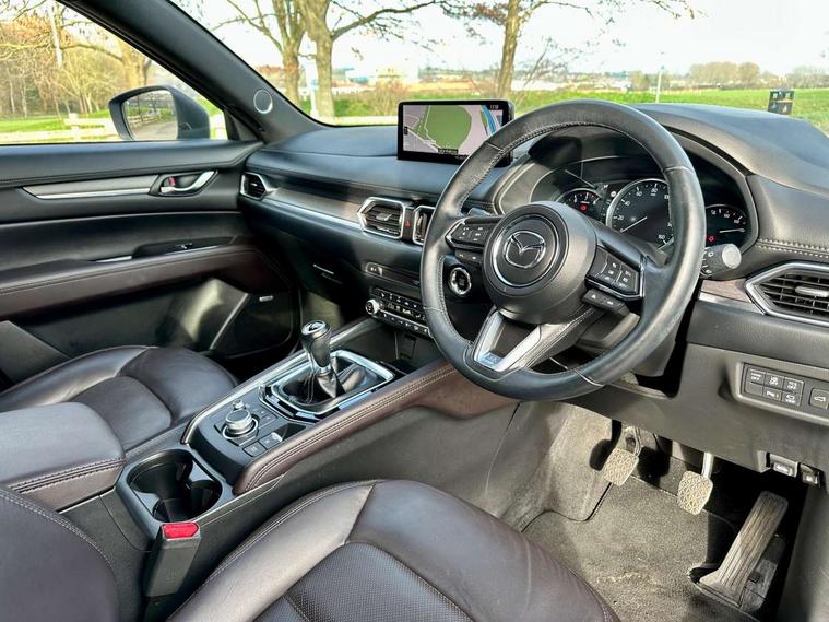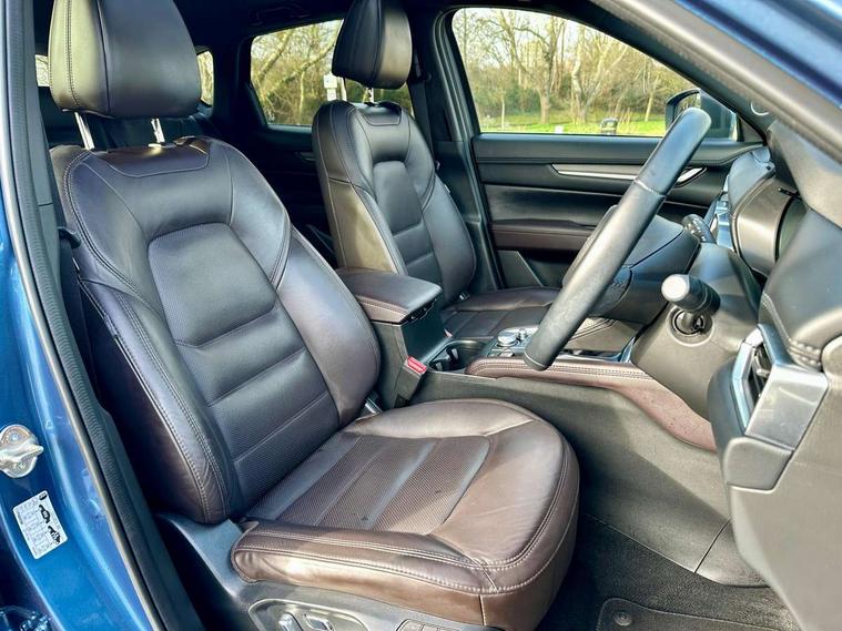 10.25" display with Mazda Connect infotainment, 360 degree surround camera, 7" colour TFT display, Apple car play/Android Auto, Blind spot monitoring with rear cross traffic alert, Bluetooth connectivity with voice control, Collision prevention assist, Connected services, Cruising Traffic Support, Driver attention alert system, Electric power steering, Emergency stop signalling system, Engine start/stop button, Forward collision warning, Front and rear parking sensors, Integrated navigation system, Intelligent speed assist, Lane departure warning system, Lane keep assist, Power liftgate, Qi wireless phone charging, Radar cruise control, Service indicator, Traffic sign recognition (TSR), Trip computer, Windscreen projected colour active driving display (HUD) with memory, Cylinder Deactivation, i-stop, 2 USB sockets in rear, 2x USB sockets in front, AM/FM radio, Bluetooth audio streaming, Bose premium sound system with 10 speakers, DAB Digital radio, Multimedia Commander including separate volume dial, Steering wheel mounted audio controls, Adaptive LED Headlights, Automatic headlights, Body colour door mirrors, Body colour roof spoiler, Body coloured front and rear lower bumper mouldings, Body coloured tire arch and side mouldings, Bright finish signature wing, Coming/leaving home lighting function, Door mirror integrated indicators, Dual large chrome tailpipes, Dusk sensitive headlamps, Electric front/rear windows with one touch auto up/down, Frameless auto dimming interior rear view mirror, Front grille in gloss black finish, Gloss black B and C pillars garnish, Gloss black front grille accent, High beam assist, Intermittent rear wash/wipe, LED auto levelling, LED daytime running lights, LED front fog lights, LED third brake light, Power folding and heated door mirrors, Power tilt/slide sunroof, Privacy glass (rear side windows only), Rain sensing front wipers, Real wood inlay dashboard panel, Rear side wing doors, Scuff plates, Shark fin antenna, Signature LED rear combination lights, Vinyl with real wood inlay door trim panel, Windscreen wiper de-icer, 12v electrical power outlet, 3 seat bench in 2nd row, 3 stage heated front seats, 40:20:40 Karakuri fold-flat seat system, 6 way electric adjustable passenger seat, 8 way electric driver seat with lumbar support + memory, Black roof lining, Cargo room flat floor board with waterproof undertray, Driver seat power slide, recline and height adjustment, Driver, Front passenger and two rear grab handles with coat hooks, Driver/passenger front seatback pockets, Driver/passenger sunvisors + illuminated vanity mirrors (drivers with ticket holder), Dual zone climate control, Folding centre armrest with 2 cup holders, Front and rear door pockets, Front centre storage with two cupholders, Front passenger seat power slide, recline and height adjustment, Front seat ventilation, Gear shift indicator, Heated outer rear seats, Heated steering wheel, Humidity sensor, Illuminated glovebox, Interior dome light with integral spotlight, ISOFIX child seat anchorage points attached on outer rear seats, Karakuri tonneau cover, Leather gear knob, Leather steering wheel with unique stitching and chrome centre bezel, Luggage compartment LED lighting, Luggage compartment power outlet, Nappa leather upholstery, Rear air vents, Rear headrests, Rear seat recline, Roof mounted sunglasses holder, Single front passenger seat, Three height adjustable head restraints, Tilt/height adjustable steering wheel, White interior LED illumination lighting, 3 point front seatbelts with pre-tensioners, 3 rear 3 point seatbelts, ABS, Advanced Smart City Brake Support - SCBS, Child locks on rear doors, Driver and front passenger side airbags, DSTC-Dynamic Stability and Traction Control, Dual front airbags, Electronic brake force distribution, Electronic parking brake with auto hold, ESP, Front and rear curtain airbags, Front passenger airbag deactivation, G-Vectoring control, Hill hold assist, Rear smart city brake support, Seatbelt reminder front and rear, Single stage passenger airbags, Smart brake support with forward obstruction warning, Tyre pressure monitoring system, Automatic door locking when moving off, Deadlock, Immobiliser, Power door locks, Remote central locking, Smart keyless entry, Thatcham Cat.1 alarm, Upper dashboard and door cards wood trim, 19" exclusive design bright alloy wheels, Tyre repair kit,