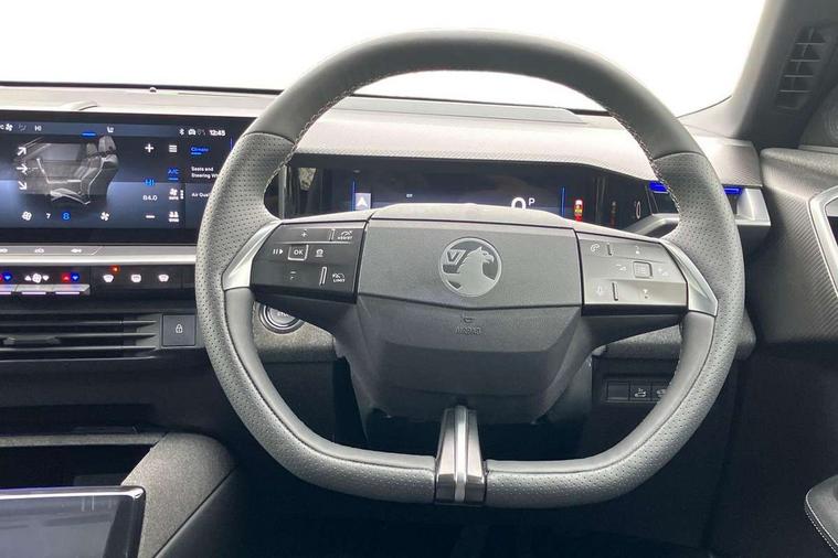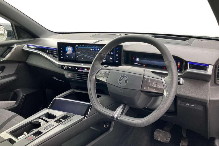 10" digital instrument cluster, 16" multimedia navigation with wireless Apple Carplay/Android auto, 360 degree surround camera, Anticipated intelligent speed adaptation, Central facia display with digital clock, outside air temperature and audio information, Curve speed adaptation, Digital fuel gauge with low fuel level warning light, Digital rev counter, Digital speedometer, Digital water temperature gauge with warning light, Drive mode selector (Eco, Normal, Sport), Driver information - Total mileage, service indicator, oil life, Electric power steering, Front and rear parking sensors, In-crash braking, Intelli-HUD (Extended heads up display), IntelliDrive 2.0 - Semi autonomous lane change assist with lane positioning assist, rear cross traffic alert and side long range blind spot detection, Lights on audible warning, Multi function trip computer - Trip odometer, vehicle range, average speed and fuel economy, instantaneous fuel economy and driving time, Power tailgate, Speed sign recognition, Start/stop system, Vauxhall connect including Emergency call (SOS e-call) and Breakdown call (b-call), Wireless charger for mobile devices, Anti-roll bars, Compound crank rear suspension with coil springs and gas pressure dampers, Independent decoupled MacPherson strut front suspension with gas pressure dampers and coil springs, anti-roll bar, Stability control, 2 rear USB-C sockets, AM/FM and DAB radio, Premium focal Hifi sound system includes 10 speakers and subwoofer, Radio controls on steering wheel, Acoustic windscreen, Auto headlights, Automatic headlight beam levelling, Black door mirrors, Black grained wheel arch claddings, Body colour door handles, Dark tinted rear windows, Electrically defrosting driver and passenger door mirrors, Electrochromic frameless rear view mirror, Front illuminated griffin, Front wiper system spraying directly from wipers, Grained lower door claddings, Heated windscreen, High gloss black front and rear bumpers, High gloss black roof spoiler, Illuminated rear Vauxhall, IntelliLux LED headlights with 3D illuminated vizor, welcome and farewell animation, 11 driving modes and adaptive high beam assist, Intermittent rear window wash/wipe, LED 3rd brake light, LED daytime running lights, LED tail lights, Magic wash, Panoramic opening glass roof, Power folding door mirrors with memory function and reverse mode, Power front and rear windows, Rain sensor windscreen wipers, Rear side wing doors, Rear wipers with camera cleaning, Two speed windscreen wipers with variable intermittent wipe, Welcome lighting, 10 way manual adjustable heated front seats with AGR approved with pneumatic lumbar support, cushion nose extension and power tilt, 2 cupholders with slider, 3 12V plugs, 3 bench rear seats in 2nd row, 3 spoke leather effect steering wheel with dimpling, 7 colour ambient lighting, Automatic air conditioning, Centre console armrest, Chrome effect interior door handles, Clean cabin system, Cooled glove box and central console storage with LED light, Dashboard and door panels polychromatic ambient lighting, Dual zone electronic climate control, Front door storage with 1.5 litre capacity, Front seat back storage pockets, Fully carpeted luggage area, Heated steering wheel, Height adjustable headrests, Illuminated vanity mirrors, Intelli air, Paddle shifts, Pixel storage, Rear armrest, Rear centre seat head restraint, Rear clothes hooks on B pillar trims, Single passenger seat, Sunglasses Box, Touch sensitive front and rear reading lights, Anti-lock braking system (ABS), Automatic emergency braking system, Child proof locks on rear doors, Deactivation switch for front passenger front and side impact airbags, Deflation detection system, Driver airbag, Dual seatbelt pretensioners on front seats, EBD - Electronic brakeforce distribution, Electronic parking brake, Front and rear ventilated discs, Front passenger airbag, Front seat side impact airbags, Full-size curtain airbags for driver and front passenger, Hill assist control, Hydraulic Brake Assist (HBA), Inertia reel lap and diagonal seatbelts for all seats, Load limiters on outer rear seatbelt retractors, Pretensioners on outer rear seatbelt retractors, Rear 3 point ISOFIX, Smart seatbelt reminder for front and rear seats, Tyre pressure monitoring system, Central locking, Deadlocking system, Electronically protected audio equipment, Engine deadlock immobiliser, Keyless entry and start, Locking wheel nuts, Remote security alarm system, Mistral dark ambience, 19" Diamond cut alloy wheels, Tyre repair kit,