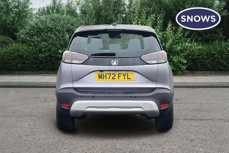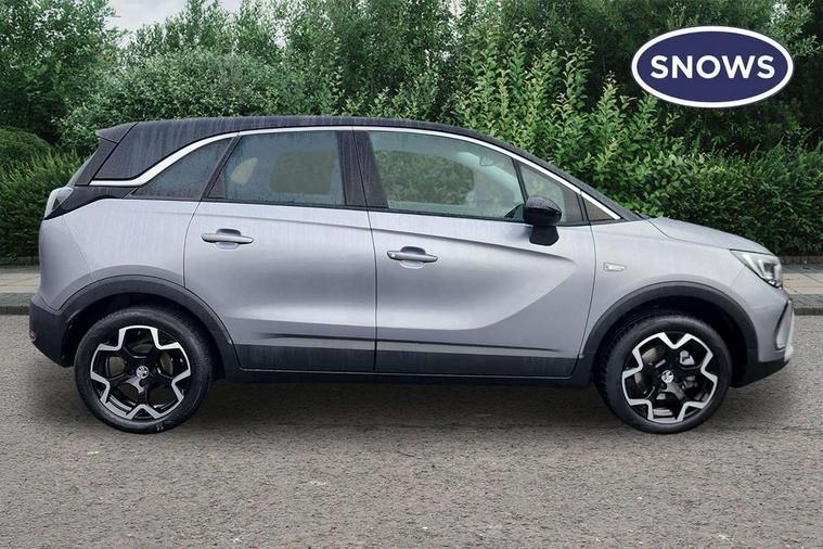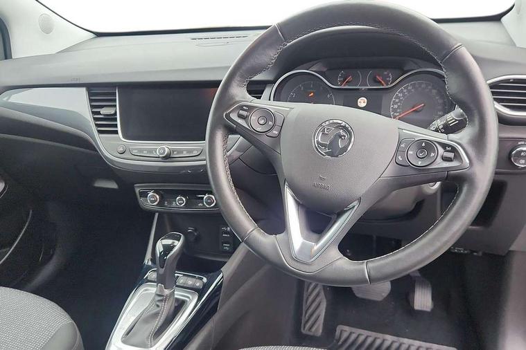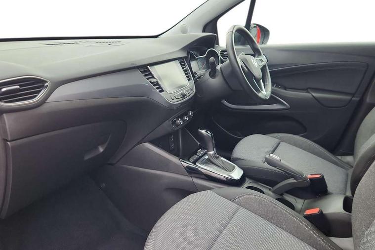 3.5" monochrome instrument colour display, Audible lights on warning, Bluetooth connectivity, Cruise control + speed limiter, Digital clock with automatic RDS time adjustment, Driver drowsiness alert system, E-call, Forward collision warning, Instrumentation - Speedometer, rev counter, low fuel gauge warning light + water temperature gauge warning light, shift up/down indicate light, Lane departure warning system, Multi function trip computer, Multimedia sat nav pro with 8" colour touchscreen, AM/FM, Bluetooth streaming, Bluetooth mobile phone portal, apple CarPlay/Android Auto + 6 speakers, Outside temperature display with ice warning, Refridgerant low indicator, Service interval indicator, Speed sensitive power steering, Speed sign recognition, Vauxhall connect, Front wheel drive, 2 x USB connections, DAB Digital radio, Steering wheel mounted audio/phone/cruise controls, 2 speed wipers/wash wipe/intermittent wipe, Alloy effect front and rear skid plates, Automatic anti dazzle rear view mirror, Automatic headlamp levelling system, Automatic high beam control with cornering light, Automatic lighting control, Black door mirror housings, Black radiator grille with chrome bar, Black roof, Body colour door handles, Body colour front and rear bumpers, Chrome effect upper window moulding, Dark tinted rear side windows + tailgate window, Electrically adjustable and heated door mirrors, Front power windows with express up/down and anti-pinch function, Hazard warning lights, Headlamps for left side traffic, Heated rear window, Integrated tailgate spoiler, Intermittent rear wash/wipe, LED daytime running lights, LED front fog lights, LED Headlights, LED side repeat indicators, LED tail lights, Rain sensitive windscreen wipers, Rear fog lights, Rear power windows with express up/down and anti-pinch function, Rear side wing doors, Rear wing door, Reversing light, Side window demist vents, Solar heat absorbing windscreen and windows, Third brake light, Welcome lighting, Windscreen demist vents, 12v power outlet - front, 2 way adjustable front passenger seat, 2 way front passive headrests, 3 rear seats, 3 spoke flat bottomed leather covered steering wheel with bezel decoration, 4 way electrically adjustable lumbar support for drivers seat, 60/40 split folding rear seat backrest, Adjustable rear seat backrest, Air recirculation facility, Ambient lighting, Anti submarining ramps in front seats, Cabin particulate filter - removes dust, airborne particles and pollen, Centre console, Driver and front passenger illuminated vanity mirrors with flip up covers, Driver's seat armrest, Drivers ergonomic active seat with 8 way manual adjustable driver seat , height, reach and backrest, Dual zone electronic climate control, Fade up/fade down on interior lighting, Four adjustable facia vents, Front door pockets with bottle holders, Front map reading lights, Fully carpeted luggage area, Glovebox with lid, Height adjustable front/rear head restraints, Illuminated load area, Interior courtesy light operated by all doors, Isofix system on outer rear seats, Jet black premium leather side bolsters, Luggage compartment cover, Multi-speed fan with Illuminated control, Open storage compartment in centre console, Passenger assist handles, Reach + rake adjustable steering column, Rear centre headrest, Rear door pockets with bottle holders, Rear floor ventilation ducts, Rear reading lights, Satin chrome effect bezel on steering wheel, Seat cushion extension, Single front passenger seat, Sparkle cloth/vinyl upholstery, Storage pockets on front seat backs, Two drinks holders in centre console, Rear view camera plus pack - Crossland, Winter pack - Crossland, 3x3 point rear seatbelts, 6 airbags - Driver and co-driver front, front side, head curtain roof airbags, front and rear row coverage airbags, ABS, Automatic emergency braking with pedestrian detection, Child locks on rear doors, CSC - Cornering stability control, Deactivate switch for side impact airbags, Deformation zones front and rear, Dual seatbelt pretensioners on front seats, EBD - Electronic brakeforce distribution, Energy absorbing steering column, Engine drag torque control, ESP + traction control, Front and rear seatbelt unfastened audible warning and warning light, Front side impact airbag, Hill start assist, Hydraulic Brake Assist (HBA), Hydraulic brake boost, Inertia reel lap and diagonal seatbelts for all seats, Passenger airbag deactivate switch, Pedestrian detection, Rear seat belt pretensioners, Reinforced passenger safety cell, Seatbelt load limiter, Side impact protection beams, Smart seatbelt reminder for front and rear seats, Tyre pressure monitoring system, 2 remote folding keys, Electronically protected audio equipment, Engine immobiliser, Locking wheel nuts, Remote central deadlocking, Remote control central locking activation switch on driver door, Remote control central locking operates on doors, tailgate and fuel filler flap, Remote security alarm system, Visible vehicle identification number, Black facia with silver trim insert, Black trim inserts on front doors, Cluster black with chrome rings, 17" five twin spoke diamond bi colour alloy wheels,