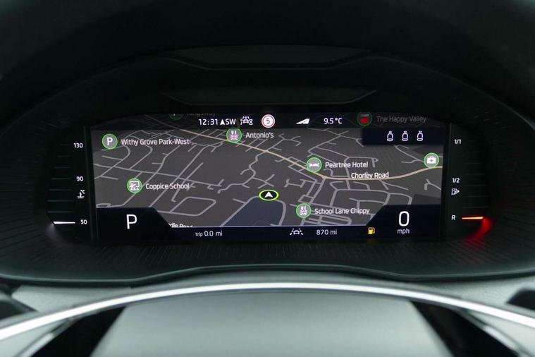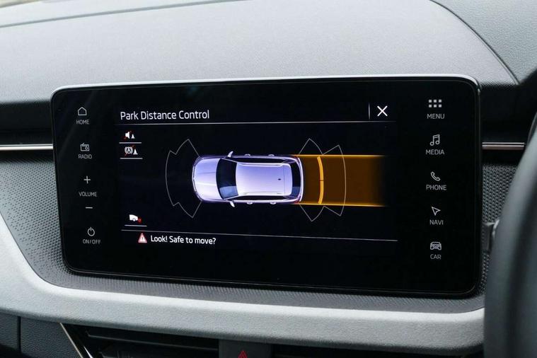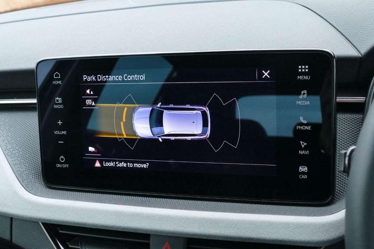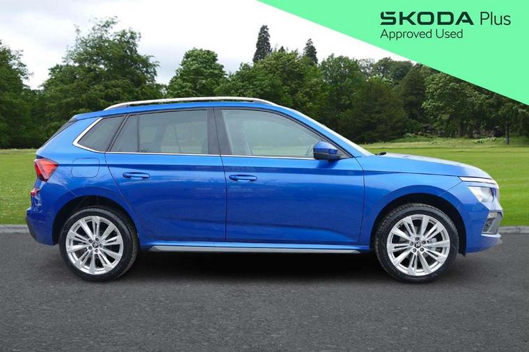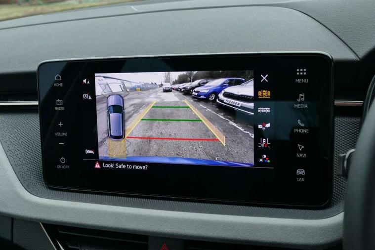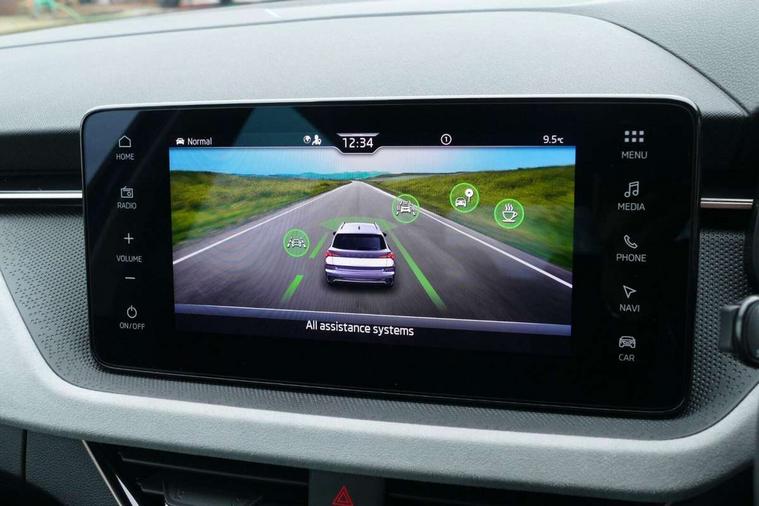 Advanced driver attention and drowsiness monitor, Bluetooth system, E-call, Front assist system, PAS, Rear parking sensors, Rear view camera, Service indicator, Speed limiter, Traffic sign recognition, Virtual cockpit with 10.25" display, Voice control system, Wireless smartlink, 4 USB C ports, 8 Speakers, 9.2" Skoda navigation display, DAB Digital radio, Auto dimming rear view mirror, Automatic headlight control with coming home and leaving home feature, Body colour bumpers, Body colour door mirrors and handles, Chrome grille surround, Chrome roof rails with chrome window surround, Front and rear electric windows, Heated rear window, LED daytime running lights, LED high beam, LED low beam, LED third brake light, Light sensors, Privacy glass, Rear side wing doors, Rear wiper, Ticket holder inside windscreen, 12V socket in luggage compartment, 3 seat bench in 2nd row, Accent black door inserts, Ambient lighting in white/red, Cargo elements, Chrome inner door handles, Copper hotstamping, Driver and passenger sun visors with vanity mirror, Dual zone climate control, Front and rear roof lights, Front centre armrest, Front head restraints, Glove compartment with illumination, Height adjustable driver seat, Height adjustable front passenger seat, Ice scraper, Inner circulation control with pollen filter, ISOFIX on front passenger seat, Isofix preparation for back seats, Leather gearknob and handbrake lever, Lodge cloth upholstery, Manual lumbar support for front seats, Net package and top tether hooks in boot space, Net under rear shelf, Overhead glasses storage compartment, Pocket on the back of both front seats include mobile phone pockets, Rake/reach adjustable steering wheel, Reading lights, Rear centre armrests, Single front passenger seat, Suedia grey decor inserts, Textile floor mats, Third rear headrest, Top tether for front passenger seat, Umbrella in driver's door, Convenience pack - Kamiq, 3x3 point rear seatbelts, Airbags - driver and front passenger, Disc brakes, ESP, Extended and predictive pedestrian/cyclist protection, Front passenger airbag deactivation switch, Front side airbags with curtain airbags, Hill hold control, Manual leather parking brake, Manual rear child locks, One tone horn, Seatbelt reminder for driver an co-driver, Traction control, Tyre pressure monitor, Anti-theft alarm system with interior monitoring, backup horn, towing protection and remote central locking with SAFE system, Anti-theft wheel bolts, Electronic engine immobilizer,