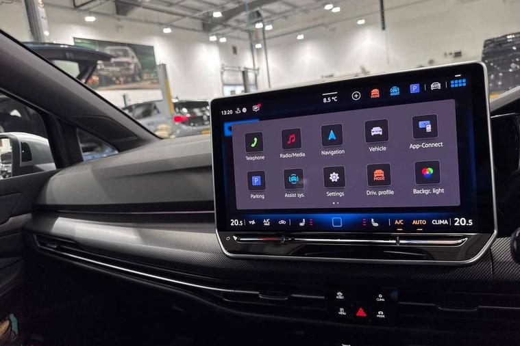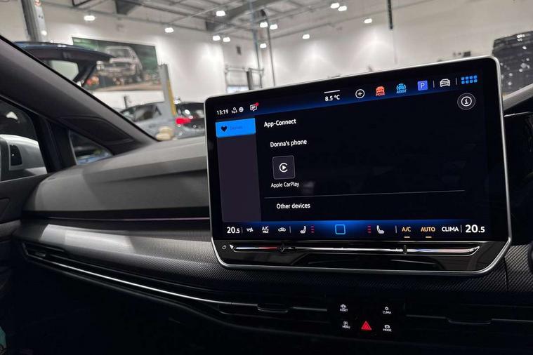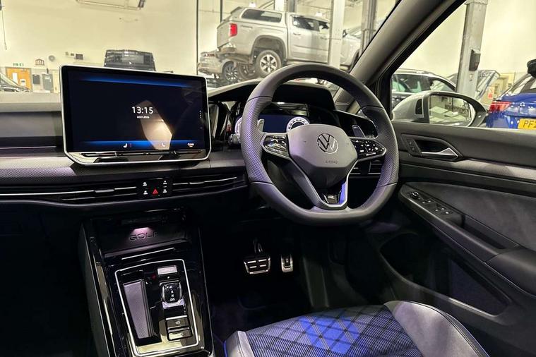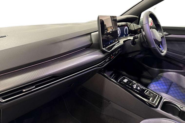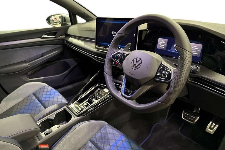 Activated carbon canister, Adaptive cruise control (ACC), Advanced driver attention and drowsiness monitor, Dynamic road sign display, E-Sim card for online connectivity, eCall emergency call system, Multi-color Digital cockpit pro, selection of different info profile possible, Multifunction front facing camera for distance control, Navigation system, Oncoming vehicle braking when turning including swerve support, Side assist blind spot lane change system, rear traffic alert and exit warning system, Speed limiter, Speedo, rev counter, electronic odometer, trip, service interval display, exterior temperature and fuel gauge, Traffic jam assist, Voice enhancer and voice control, Warning signal and warning light for front and rear seatbelts not fastened, We connect plus preparation, We connect preparation, Wireless app connect, All wheel drive - 4Motion, Petrol Particulate Filter, Start-stop system with battery regeneration (recuperation - energy recovery during braking), XDS electronic differential lock for improved traction and handling, 2 USB C ports in front, 2 USB charging sockets on the centre console in the rear charging capacity upto 45W, Digital radio reception (DAB), Diversity antenna for FM reception, Gaming platform via car app, Infotainment system with 12.9" display, Mobile phone interface with inductive charging feature, 3rd brake light, Auto dimming rear view mirror, Automatic headlamp activation with Coming home and Leaving home feature, Body colour door handles, Exterior mirror housings in matte chrome, Exterior mirrors convex on the left and aspherical on the right, Front and rear electric windows, Front fog lamps and cornering light, Heat insulating windshield made of laminated glass, Illuminated lighting animation with wake up/goodbye scenario, LED matrix headlights with ambient light V2, advanced high beam, dynamic range contol with cornering, LED rear lamp with indicator, poor weather, LED separate daytime running light, Light assist with High beam control, R name plate, Rain sensor, Rear fog light on one side and reversing lights on both sides, Rear side wing doors, Rear tinted glass 65% light absorbing from B pillar backwards, Rear windscreen washer and wiper with interval delay, Remote electrically foldable door mirrors, puddle lights and reverse activated passenger's door mirror, Welcome light with surround lighting, 12V socket in front centre console, 12V socket in luggage compartment, 3 rear head restraints, 3 seat bench in 2nd row, 30 colour ambient lighting, illuminated center console storage compartment in front, Air care climatronic 3 Zone automatic climate control with rear air conditioning control panel, Aluminium gearshift handle, Brushed stainless steel pedals, Chrome plated radiator grille inserts, air vent surrounds and light switch surrounds, Entry lights, Front + rear black carpet mats, Front centre armrest, Integrated front head restraints, ISOFIX anchors for child seats on outer rear bench seats and on front passanger seat compatible for i-Size, Luggage compartment lighting, Rear cupholder and loadthough, Single front passenger seat, Soul black instrument panel, Soul black roof lining, Split folding backrest with centre armrest and unsplit rear seat bench, Sun visors with illuminated vanity mirrors, Driver assistance pack - Golf Estate/Hatchback Auto, R styling pack - Golf, Technology park and comfort pro package - Golf Hatchback, 3 point height adj front seatbelts + pretensioners, 3 rear three point seatbelts, ABS, Autonomous emergency braking front assist with pedestrian and cyclist monitoring, Child locks on rear doors, Driver and front passenger airbag with front passenger airbag deactivation, Electronic parking brake with auto hold, ESC (Electronic Stability Control), Extended pedestrian protection measures, Front blue brake callipers with R logo, Hill start assist, Rear disc brakes, Two tone horn, Tyre pressure loss indicator, Volkswagen roadside assistance, Anti theft wheel bolts, Preparation for alcohol interlock, Sporty vehicle dynamics, Tool kit for tyre mobility set, Tyre mobility kit Includes 12V compressor and tyre sealant,