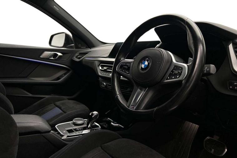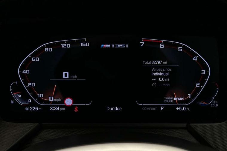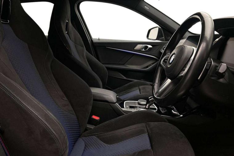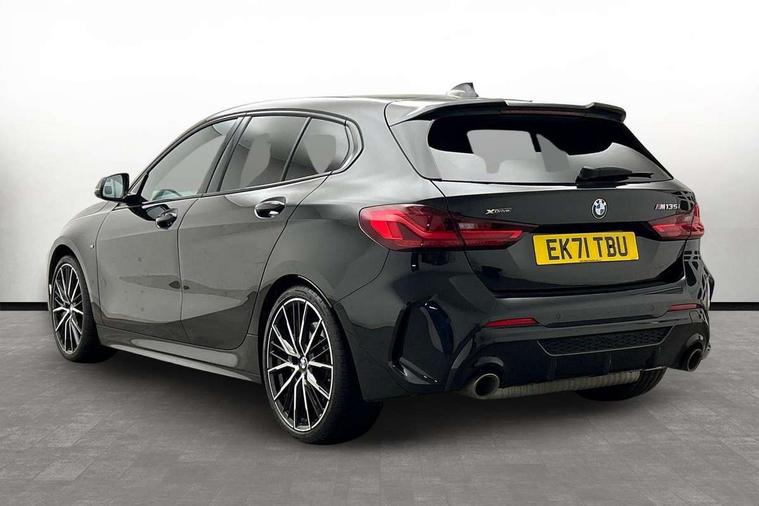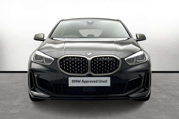Active guard plus, Attentiveness assist, Bluetooth / WiFi interface for wireless connection of mobile terminal devices and audio streaming, BMW ConnectedDrive online services, BMW Teleservices, Check Control warning system for monitoring of lights and door/luggage compartment open warning, Cruise control with brake assist, Eco pro mode, Electric power steering, Electro hydraulically controlled multi-plate clutch transfers drive to rear axle and with power take-off device located on the front differential., Energy efficient operating strategy, Front axle single joint with specific axle kinematics to minimise drive influences on steering + provide increased rigidity agile driving behaviour, Gearshift time display in manual mode, Integrated owners handbook, Lane departure warning system, M Sports steering with M135i xDrive specific settings, Oil sensor for level and grade, On board computer, Optimum shift indicator, Personal Profile, Pull away assistant, Rigidly mounted rear subframe - Multi link construction with separate spring / damper configuration and excellent driving characteristics, Speed limit Info including no-overtaking indicator, Speed limiter, Sporty fast gear shifting in sport mode, Aluminium lightweight construction, Anti roll bar front and rear, Balancer shaft, Double VANOS, Drive Performance Control, Eight speed sport automatic transmission with gearshift paddle switches, Electronic differential lock, Electronic selector lever, Engine cover with M performance designation, High precision injection, Larger fuel tank capacity (50 litres), Launch control, M135i specific heavily de-throttled engine intake air guide, M135i specific high-performance cooling package, M135i specific larger turbocharger with integrated divert-air valve, Petrol Particulate Filter, Twin tube gas filled shock absorbers with degressive characteristic curve, VALVETRONIC engine management, Variable, stepless and infinitely adjustable distribution of drive torque between the front and rear axles, xDrive intelligent all wheel drive with M135i specific reinforced components, DAB Digital radio, Auto dimming rear view mirror, Automatic headlight beam throw control, Automatic windscreen wipers and automatic headlight, Body colour door handles, Body colour roof trims, Cerium grey exterior mirror caps, Direction indicator side lights in exterior mirrors, Exhaust tailpipe, Cerium Grey with bevelled finish - twin, round 100mm, left and right split, Fading support, Folding side mirrors with auto dimming/folding wing mirrors with auto dimming, Follow me home headlights, Front and rear bumper system with replaceable deformation elements, Front and rear electric windows with open and close fingertip control, anti trap facility and comfort closing, Front door sill finishers with M135i designation, Green tinted heat protection glazing, Heated, electrically adjustable exterior mirror aspheric on driver side, convex on passenger side, High gloss shadowline window frame, Recess cover mirror frames and B/C pillar embelisher trim, High level third brake light, Integrated front windscreen with washer jets, Kidney grille frame in Cerium Grey with Mesh design, LED daytime running lights, LED eyebrow turn indicators, LED front fog lights, Lightweight engineering, M logo designation side in cerium grey, M Performance exhaust system with valve control and minimised exhaust back pressure, M Performance specific setup, M Sport spoiler, Matt black air guide grilles, Matt black wheel arch trim, Model designation on electric bootlid includes xDrive designation for M135i xDrive, Nearside reverse light in rear light cluster, Preparation for high beam assistant, Rear fog lights, Rear side wing doors, Rear window wiper, Reinforced crank drive, new pistons and adapted con rods, Shark fin antenna, Trailer stabilisation logic, Visible VIN plate, Welcome lighting, 12V power socket in front centre console with blanking plug, 3 rear seat head restraints, 3 seat bench in 2nd row, 3 spoke sports leather steering wheel with black leather and stitching, pearl chrome decorative finish, specific M Badge, Ambient interior lighting, Anthracite headlining, Child seat ISOFIX attachment for two outer rear seats and front passenger seat with anchorage points, Conditioned based service, Driver and front passenger seat heating, Floor mats in anthracite velour with contrasting colour seam to match contrast stitching on instrument panel, Folding rear clothes hook, Four grab handles integrated in roof lining, Front and rear door pockets with bottle holders, Front and rear side armrest integrated into door trim, Front armrest, Front integrated head restraints, Front M sports seats, Glove compartment, Luggage compartment for bag hooks on left and right, foldable luggage compartment liner and two lashing eyelets, Manual adjust steering wheel, Multi-function controls for steering wheel, Single front passenger seat, Storage compartment in centre console, Sun visors with vanity mirrors and insert tab, Two front centre console cupholders, Two zone automatic air conditioning, Additional interior lighting pack - 1 Series M135i, Additional storage compartment pack with code 493 -1 series, BMW live cockpit professional pack- 1 Series, Connected pack professional - 1 Series, Interior lights pack - 1 Series, M Sport exterior styling aerodynamics pack - 1 Series 135i, 2 tone horn, 3 point seatbelts on all seats, front pyrotechnic belt tensioners, stopper and belt force limiters, rear coded belt buckles, Airbags - Front driver/passenger, front and rear curtain head protection, front side, manual deactivation of front passenger airbag, Anti lock braking system (ABS) with brake assist, BMW emergency call, Brake drying, Braking readiness, Child proof locking system in rear door, City braking function, Comfort modes, Cornering brake control, Crash sensor activating central locking release, hazard warning lights, fuel cut off, interior lighting + activation of safety battery terminal