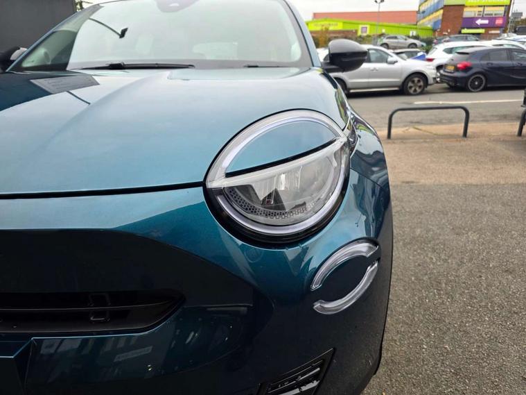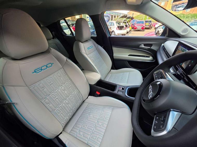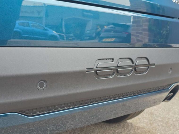 360 degree parking sensors with 180 degree rear view camera, 7" TFT digital cluster, Autonomous driving level 2: Adaptive cruise control with stop & go and lane centering, Blind spot detection, Bluetooth connectivity, BSRF connectivity box, Connected services, Drowsy driver detection, Emergency E-call assist, Engine emission level default, GSR II step 1, Hands free power liftgate, Intelligent speed assist, Lane keeping assistant (LKA), Odometer, Power assist steering, Rain and dusk sensors, Semi-automatic parking with Visiopark 1 system, Traffic sign recognition, Wireless apple car play/android Auto, Wireless charging pad for smartphones, Without drive mode selector, L2-AGM 12V battery, 1st Row USB type-A and USB type-C, 2nd Row USB type-C, 6 speaker audio system, Radio, Uconnect infotainment 10.25" touchscreen with integrated navigation system and DAB, All power windows express Up/Down, Auto dimming frameless rear view mirror, Automatic headlights, Automatic high/low beam, Body coloured door handles, Chrome day light openings, Chromed exhaust tip, Electric adjustable/heated/folding door mirrors, Exterior chrome accents, Front and rear Chromed 600 logo, Gloss black finish B pillar, Gloss black shark fin antenna, Glossy black door mirrors, Heated windscreen wiper blade area, LED 3rd brake light, LED daytime running lights, LED Fog lamps with cornering function, LED front signature lighting, LED front turn indicators and position lights, LED rear lights, LED rear signature lighting, LED reflector headlamps, Matt black side skirts with 600 chromed logo, Privacy glass, Puddle lights, Rear bumper embossed 600 logo, Rear roof spoiler, Rear side wing doors, Rear wiper, 2 Spoke synthetic leather steering wheel with audio control, 3 rear headrests, 3 seat bench in 2nd row, 6 way manually adjustable front passenger seat, 6 way power adjustable driver seat with lumbar support and massage function, Adjustable trunk floor, Automatic climate control, Auxilliary 12V power socket, Cargo flex fit, Chrome interior door handles, Dark metachrome dashboard ring, English handbook, Front centre armrest, Front headrests, Front passenger grab handle, Front seatback pockets, Heated front seats, ISOFIX attachment on front passenger and rear passenger seats, Matt Ivory painted dashboard fascia, Metachrome central compartment bezel, Monogram Synthetic leather upholstery, Paddle shifts, Partial body cover for shipment, Predisposal for accessory upgrade to default tunnel pad cover (dedicated prnd bezel), Rear seat 40/60 split, Single front passenger seat, Smart 15L storage central tunnel with La prima tunnel pad cover, Sunvisor label ciao Fiat, Sunvisors with vanity mirrors, Velour floor mats, 3x3 point rear seatbelts, 6 airbags, ABS, Autonomous Emergency Brake (AEB) & Vulnerable Road User (VRU) Protection, Child locks on rear doors, Electronic parking brake with auto hold, ESC (Electronic Stability Control), Front passenger airbag deactivation, Seatbelt reminder and pretensioners for all seats, Anti-theft volumetric alarm, Anti-theft wheel bolts, Passive entry and keyless go, 18" Diamond cut alloy wheels, Fix and go puncture repair kit,