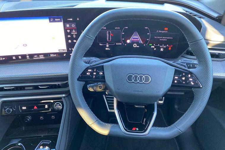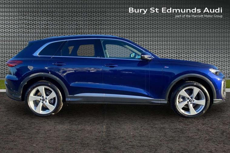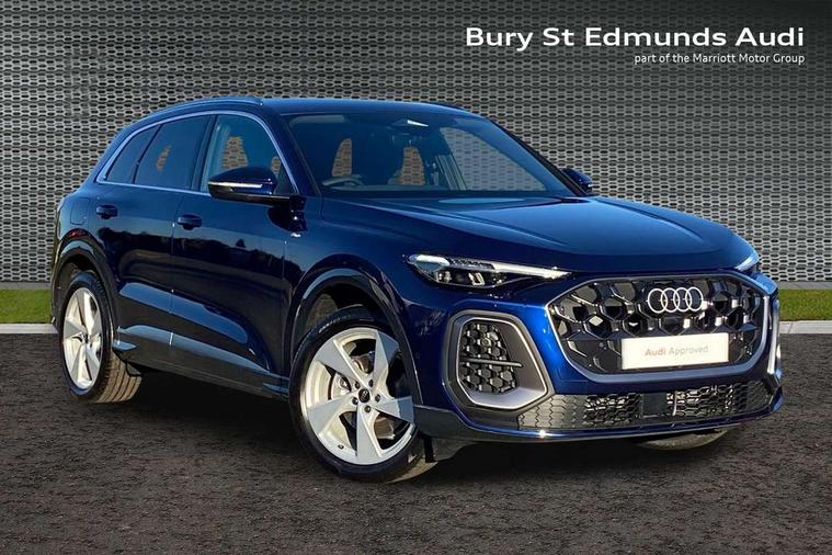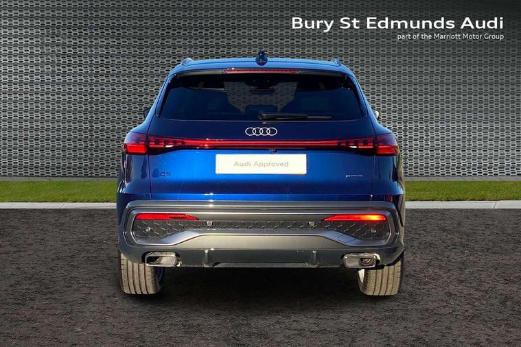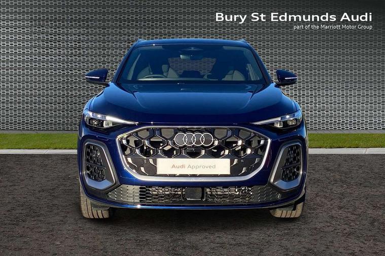 Adaptive cruise control, Advanced driver attention alert, Audi application store, Audi connect emergency call and service, Audi drive select, Audi smartphone interface, Audi virtual cockpit plus with 11.9" OLED colour display, Camera based traffic sign recognition, Fatigue monitor, Front cross traffic intersection assist, Lane departure warning system, MMI navigation plus with high resolution 14.5" OLED touchscreen colour display, Park assist plus, Parking system plus with 360 display, PAS, Reversing camera, Swerve assist and turn assist, Traffic sign based speed limiter, 2 USB-C ports in both the front and rear, Audi sound system impressive sound with 10 loudspeakers including centre speaker and subwoofer, 6-channel amplifier with a total output of 180 watts, DAB Digital radio, Smartphone compartment with wireless charging, Aluminium roof rails, Auto dimming rear view mirror, Body coloured door mirrors, Coming/leaving home lighting function, Electrically adjustable heated and folding + automatically dimming exterior mirrors, Front and rear electric windows, Front door sill trims with aluminium inlays, illuminated with 'S' logo, Headlight cleaning system, Heated rear window, High beam assist, High gloss window surrounds, Inlay and front air inlets in matt anthracite chrome, LED headlights plus incl. digital DRL, dynamic coming and leaving home function with turning/all weather/motorway/manouevring and intersection lights, LED rear lights pro incl. dynamic rear indicators and illuminated light strip with animated coming and leaving home function, Logo projection light in exterior mirrors, Privacy glass, Projection light for rear window, Radiator grille in phantom black, Rear and side windows with heat insulating glass, Rear honeycombe grille in matt black with inlay in matt anthracite chrome, Rear side wing doors, Rear wash/wipe, Red S line rhombus badging on rear, S line bumpers in contrasting Volcano grey metallic paint finish, Towbar preparation, Windscreen with acoustic glazing, 3 rear head restraints, 3 seat bench in 2nd row, 3 spoke leather steering wheel with multi-function buttons with touch control, flattened on top and bottom, with S badging and contrast stitching, 40:20:40 split folding rear seat bench with centre armrest and cup holders, Comfort centre armrest, Deluxe 3 zone electronic climate control, Front and rear floor mats, Front seats with manual adjustment for position and 4-way electric lumbar support, Front sport seats with integrated head reastrains, Headlining in black cloth, Heated front seats, i-Size child seat mounting on the front passenger side and i-Size and top tether on the outer rear seats, Interior trim in aluminium look, Luggage compartment lid, electrically opening and closing, Manual steering column adjustment, Single front passenger seat, Softwrap in leatherette, Stainless steel pedals and footrest, Steering wheel grips in perforated leather and shift paddles, Ambient lighting package plus - Q5, Storage and luggage compartment pack - Q5, ABS, Acoustic vehicle alerting system, Driver and front passenger airbag with passenger airbag deactivation, Electric child safety locks, First aid kit with warning triangle and high visibility vests, Front emergency brake assist, Front side airbags with head airbag system and front interaction airbag, Hill hold assist, Rear seat occupant reminder, Tyre pressure loss indicator, Anti theft alarm, Anti-theft wheel bolts, Remote control key with SAFELOCK and keyless go, Accent surfaces and control buttons in gloss black, Anthracite matt brushed aluminium inlays with linear embossing, Black dashboard with contrast stitching, Upper and lower interior elements in artificial leather, Tyre repair kit,