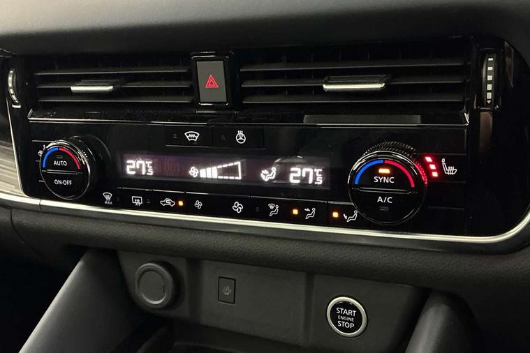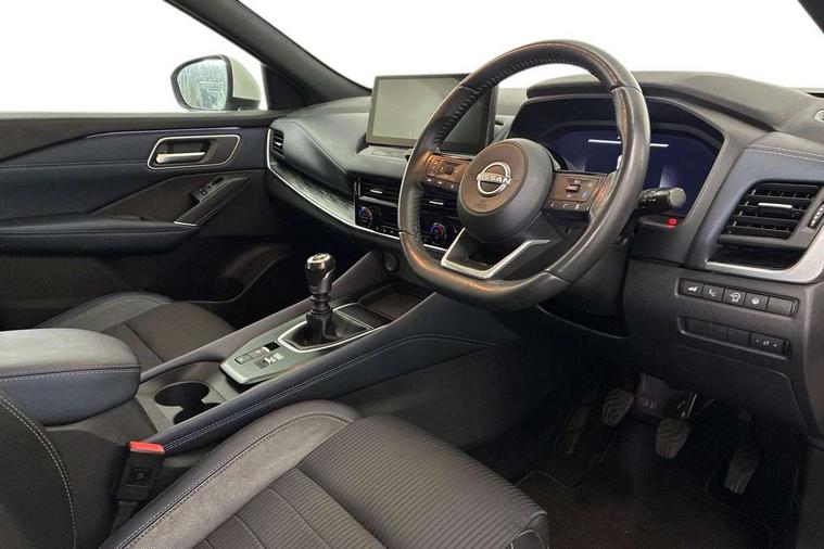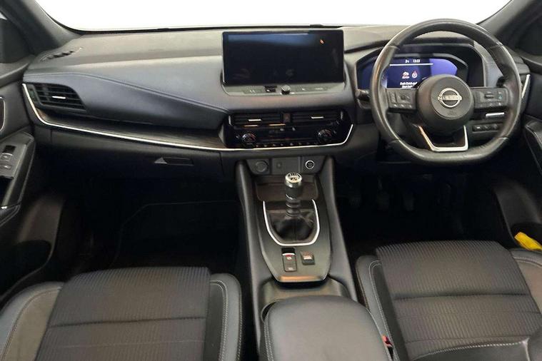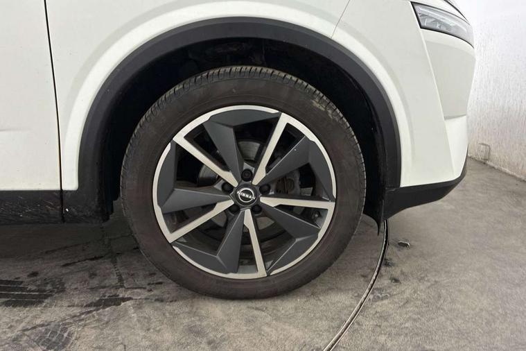 Advanced windscreen head up display, Android auto/Apple CarPlay (Wired), Blind spot warning, Drive assist, Drive modes (sport, normal, eco), Electric speed sensitive power steering, Emergency and breakdown call, Front and rear parking sensors, Full Digital 12.3" TFT Digital Combimeter, Google maps services - search, weather, 3D maps and Google street view, Hands free power tailgate, Idle stop/start system, Intelligent around view monitor, Intelligent Cruise control (ICC), Intelligent driver alert system, Intelligent forward collision warning, Intelligent lane intervention, Lane departure prevention, Lane departure warning system, Lane keep assist, Moving object detection, Nissan connect 12.3 inch touchscreen infotainment system, Nissan connect navigation, Push button starter, Rear cross traffic alert, Rear view camera, Remote control services - door locks, lights, horn and car locator, Telematics - notifications and connectivity services, TomTom live traffic services, Traffic sign recognition with legal speed adjustment, Trip computer, Virtual personal assistant and firmware over the air capability, Wireless apple carplay, Wireless charging pad, 6 speakers, AM/FM audio system with DAB, Bluetooth audio streaming, Front USB connections (Type-A and Type-C), Rear USB charging only ports (Type-A and Type-C), 3rd brake light, Auto dimming rear view mirror, Auto rear wiper when reversing, Automatic hazard signal with emergency stop signal, Body colour mirror caps, Body coloured door handles, Bodyside mouldings, Chrome side window finisher, Door handle with button, Electric auto folding door mirrors, Electrically adjustable and heated door mirrors with LED turn indicator, Follow me home headlights, Front and rear LED turning signals, Headlights auto levelling system, Intelligent auto headlights, LED daytime running lights, LED headlights with adaptive driving beam, LED rear lights, One touch front and rear electric windows with remote opening and closing, Partially body coloured bumpers, Privacy glass, Rear bumper with graphite insert, Rear reversing light (bulb lighting), Rear roof spoiler, Rear side wing doors, Rear styling plate, Shark fin antenna, Splash free rain sensing wipers, Super UV and infrared cut glass, Thermaclear heated windscreen, Three blink turn signal, 12v power socket in dashboard and luggage, 2x Rear coat hooks, 3 bench rear seats in 2nd row, 3 rear headrests, 4 folding assist grip, 6 Luggage hooks - 4 on floor, 2 on side, 60/40 split folding rear seat bench, Ambient lighting around centre console, Ambient lighting in front doors, Centre console storage tray, Chrome interior door handles, Cloth/syntech leather monoform upholstery, Dark black/blueish PVC wrapping, Dark headlining, Driver and front passenger sunvisors with illuminated vanity mirrors, Driver seat back pocket, Dual zone automatic climate control with pollen filter, Electrically adjustable driver seat, Electrically adjustable lumbar support for driver, Front and rear door storage, Front centre console and armrest, Front cupholders x 2, Front door with bottle holders, Glovebox with light, Hard trunk cover, Heated front seats, Heated steering wheel, Height adjustable driver's seat, Height adjustable front headrests, Height adjustable passenger seat, Leather shift knob, Leather steering wheel, Luggage board system, Luggage space lighting, Manual lumbar support on passenger seat, Manually adjustable passenger (slide recline + lifter), Multifunction steering wheel, Passenger seat back pocket, Rear armrest with 2 cupholders, Rear door bottle holders, Single front passenger seat, Soft PVC kneepad, Steering wheel switches, Tilt/telescopic adjustable steering wheel, Two rear isofix child seat anchorage points with top tether, Welcome light and doors with console tray ambient lighting, Glass roof pack with roof rails - Qashqai, 3x3 point rear seatbelt pretensioners + load limiters, ABS with EBD and brake assist, Active brake limited slip, Auto hold function, Child locks on rear doors, Curtain and front side, far side airbags, Driver and passenger airbags, Driver, passenger and 2nd row rear seat belt reminder, Electronic parking brake, Front seatbelt pretensioners + load limiters, Height adjustable front seatbelts, Hill start assist, Intelligent blind spot intervention, Intelligent front emergency braking with pedestrian, cyclist recognition and junction assist, Intelligent rear automatic braking, Tyre pressure monitoring system, Vehicle dynamic control, Capless fuel filler, Engine immobiliser, Intelligent Key, Remote central door locking with deadlocking, Thatcham Cat.1 alarm, Interior instrumental panel C finisher, 19" Alloy wheels, Tyre puncture repair kit,