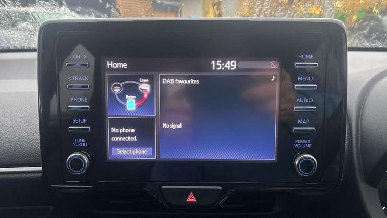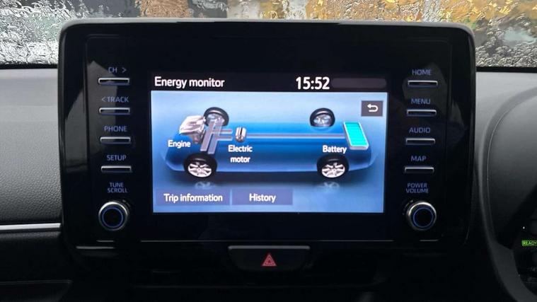 4.2" coloured TFT multi information display with analogue speedometer, Adaptive cruise control, Adjustable speed limit with speed warning, Bluetooth connectivity, E-call, Electric power steering, Hybrid energy display, Multi information display switches on steering wheel, Reversing camera, Smartphone integration with Apple CarPlay and Android auto, Tailgate, Voice recognition, Vehicle Stability Control (VSC), 4 speakers, 7" Multimedia display touch screen, Toyota Touch 2 with DAB, USB connection, Acoustic windscreen glass, Auto windscreen wipers, Automatic headlights, Body coloured door mirrors, Bulb indicators, Chequered front grille, Daytime running lights, Electric adjustable heated door mirrors, Follow me home headlights, Front auto power windows with anti jam protection, Halogen projector headlights, LED High mounted stop lamp, Manual headlight levelling, Rain sensor, Rear side wing doors, Rear spoiler, Rear wiper, Shark fin antenna, Turning signal integrated indicators in door mirrors, Variable front intermittent wipers, 3 adjustable rear headrests, 3 seat bench in 2nd row, 3 spoke leather steering wheel, 60/40 split folding rear seat, Active headrests, Adjustable boot height, Auto air conditioning, Coat hooks in rear grab handles, Cup holders (2 front & door), Data Communication Module (DCM) connected services, Fabric upholstery, Front armrest, Glovebox, Grey roof lining, Height adjustable driver's seat, Isofix seat fixing, Leather gearshift, Pollen filter, Shopping bag hooks, Single front passenger seat, Tilt/telescopic steering column, 3 point seatbelts on all rear seats, ABS+EBD+Brake assist, Electronic parking brake, Emergency brake light system (EBS), Front passenger airbag on/off switch, Front seatbelt reminder, Hill start assist control (HAC), Rear child proof door locks, Rear seat belt reminder, Supplemental Restraint System (SRS) 8 airbags: Driver & passenger's airbags, dual side curtain airbags, side impact airbags, front centre airbag, Toyota Safety Sense 2, Precollison + Night time Pedestrian & Cyclist Detection, Lane Trace Assist, Auto High Beam, Intelligent ACC & Road Sign Assist, Tyre pressure warning system, 2x Master key, Alarm/immobiliser, Remote powered central double locking doors, Soft touch instrument panel, Space saver spare wheel,