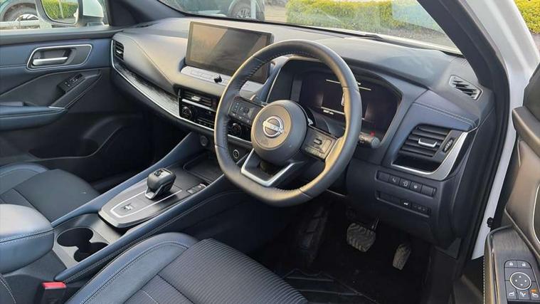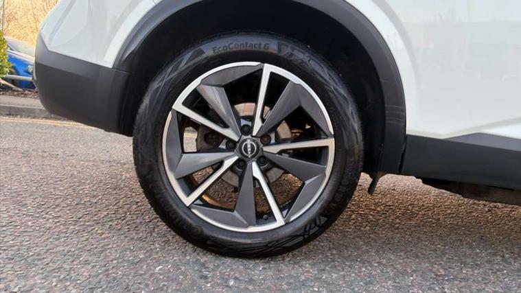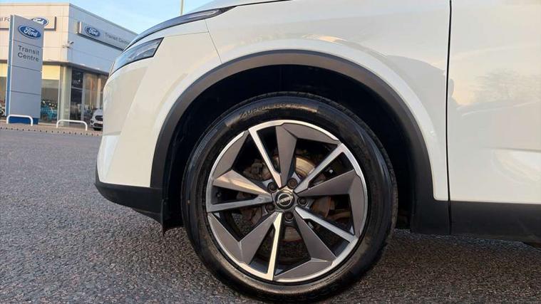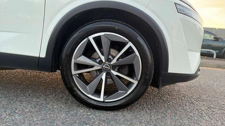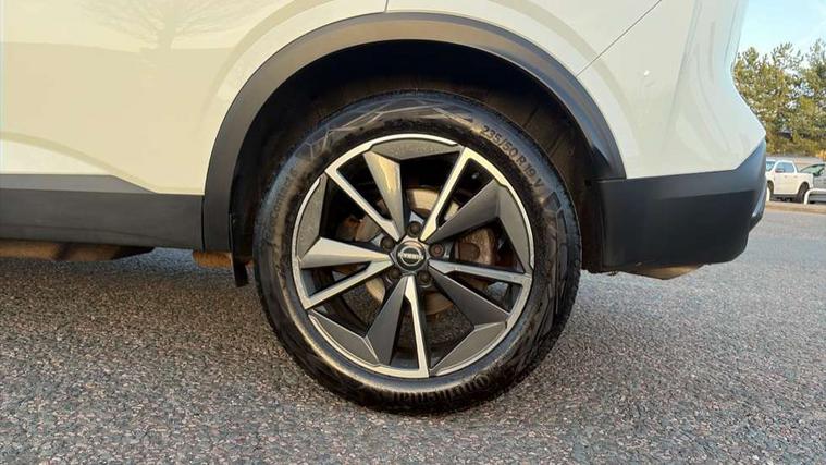 Advanced windscreen head up display, Android auto/Apple CarPlay (Wired), Blind spot warning, Drive modes (sport, normal, eco), Electric speed sensitive power steering, Emergency and breakdown call, Front and rear parking sensors, Full Digital 12.3" TFT Digital Combimeter, Google maps services - search, weather, 3D maps and Google street view, Hands free power tailgate, Idle stop/start system, Intelligent around view monitor, Intelligent Cruise control (ICC), Intelligent driver alert system, Intelligent forward collision warning, Intelligent lane intervention, Lane departure prevention, Lane departure warning system, Lane keep assist, Moving object detection, Nissan connect 12.3 inch touchscreen infotainment system, Nissan connect navigation, ProPilot, Push button starter, Rear cross traffic alert, Rear view camera, Remote control services - door locks, lights, horn and car locator, Telematics - notifications and connectivity services, TomTom live traffic services, Traffic jam pilot, Traffic sign recognition with legal speed adjustment, Trip computer, Virtual personal assistant and firmware over the air capability, Wireless apple carplay, Wireless charging pad, 6 speakers, AM/FM audio system with DAB, Bluetooth audio streaming, Front USB connections (Type-A and Type-C), Rear USB charging only ports (Type-A and Type-C), Auto dimming rear view mirror, Auto rear wiper when reversing, Automatic hazard signal with emergency stop signal, Body colour mirror caps, Body coloured door handles, Bodyside mouldings, Chrome side window finisher, Door handle with button, Electric auto folding door mirrors, Electrically adjustable and heated door mirrors with LED turn indicator, Follow me home headlights, Front and rear LED turning signals, Headlights auto levelling system, Intelligent auto headlights, LED daytime running lights, LED headlights with adaptive driving beam, LED rear lights, One touch front and rear electric windows with remote opening and closing, Partially body coloured bumpers, Privacy glass, Rear bumper with graphite insert, Rear reversing light (bulb lighting), Rear roof spoiler, Rear side wing doors, Rear styling plate, Shark fin antenna, Splash free rain sensing wipers, Super UV and infrared cut glass, Thermaclear heated windscreen, Three blink turn signal, 12v power socket in dashboard and luggage, 2x Rear coat hooks, 3 bench rear seats in 2nd row, 3 rear headrests, 4 folding assist grip, 6 Luggage hooks - 4 on floor, 2 on side, 60/40 split folding rear seat bench, Ambient lighting around centre console, Ambient lighting in front doors, Centre console storage tray, Chrome interior door handles, Cloth/syntech leather monoform upholstery, Dark black/blueish PVC wrapping, Dark headlining, Driver and front passenger sunvisors with illuminated vanity mirrors, Driver seat back pocket, Dual zone automatic climate control with pollen filter, Electrically adjustable driver seat, Electrically adjustable lumbar support for driver, Front and rear door storage, Front centre console and armrest, Front cupholders x 2, Front door with bottle holders, Glovebox with light, Hard trunk cover, Heated front seats, Heated steering wheel, Height adjustable driver's seat, Height adjustable front headrests, Height adjustable passenger seat, Leather steering wheel, Luggage board system, Luggage space lighting, Manual lumbar support on passenger seat, Manually adjustable passenger (slide recline + lifter), Multifunction steering wheel, Passenger seat back pocket, Rear armrest with 2 cupholders, Rear door bottle holders, Single front passenger seat, Soft PVC kneepad, Steering wheel gearshift paddles, Steering wheel switches, Tilt/telescopic adjustable steering wheel, Two rear isofix child seat anchorage points with top tether, Welcome light and doors with console tray ambient lighting, Glass roof pack with roof rails - Qashqai, 3x3 point rear seatbelt pretensioners + load limiters, ABS with EBD and brake assist, Active brake limited slip, Auto hold function, Child locks on rear doors, Curtain and front side, far side airbags, Driver and passenger airbags, Driver, passenger and 2nd row rear seat belt reminder, Electronic parking brake, Front seatbelt pretensioners + load limiters, Height adjustable front seatbelts, Hill start assist, Intelligent blind spot intervention, Intelligent front emergency braking with pedestrian, cyclist recognition and junction assist, Intelligent rear automatic braking, Tyre pressure monitoring system, Vehicle dynamic control, Capless fuel filler, Engine immobiliser, Intelligent Key, Remote central door locking with deadlocking, Thatcham Cat.1 alarm, Interior instrumental panel C finisher, 19" Alloy wheels, Tyre puncture repair kit,