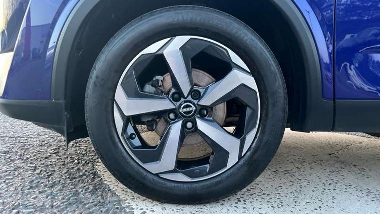 Android auto/Apple CarPlay (Wired), Blind spot warning, Drive modes (sport, normal, eco), Electric speed sensitive power steering, Emergency and breakdown call, Front and rear parking sensors, Full Digital 12.3" TFT Digital Combimeter, Google maps services - search, weather, 3D maps and Google street view, Idle stop/start system, Intelligent around view monitor, Intelligent Cruise control (ICC), Intelligent driver alert system, Intelligent forward collision warning, Intelligent lane intervention, Lane departure prevention, Lane departure warning system, Maximum speed limiter, Moving object detection, Nissan connect 12.3 inch touchscreen infotainment system, Nissan connect navigation, Push button starter, Rear cross traffic alert, Rear view camera, Remote control services - door locks, lights, horn and car locator, Telematics - notifications and connectivity services, TomTom live traffic services, Traffic sign recognition with legal speed adjustment, Trip computer, Virtual personal assistant and firmware over the air capability, Wireless apple carplay, 6 speakers, AM/FM audio system with DAB, Bluetooth audio streaming, Front USB connections (Type-A and Type-C), Rear USB charging only ports (Type-A and Type-C), Auto dimming rear view mirror, Auto rear wiper when reversing, Automatic hazard signal with emergency stop signal, Body colour mirror caps, Body coloured door handles, Bodyside mouldings, Chrome side window finisher, Door handle with button, Electric auto folding door mirrors, Electrically adjustable and heated door mirrors with LED turn indicator, Follow me home headlights, High beam assist, Intelligent auto headlights, LED daytime running lights, LED Headlights, LED rear lights, One touch front and rear electric windows with remote opening and closing, Partially body coloured bumpers, Privacy glass, Rear bumper with graphite insert, Rear reversing light (bulb lighting), Rear roof spoiler, Rear side wing doors, Rear styling plate, Shark fin antenna, Splash free rain sensing wipers, Super UV and infrared cut glass, Three blink turn signal, 12v power socket in dashboard and luggage, 2x Rear coat hooks, 3 bench rear seats in 2nd row, 3 rear headrests, 4 folding assist grip, 6 Luggage hooks - 4 on floor, 2 on side, 6-way manually adjustable driver's seat, 60/40 split folding rear seat bench, Ambient lighting around centre console, Centre console storage tray, Chrome interior door handles, Cloth monoform upholstery, Driver and front passenger sunvisors with illuminated vanity mirrors, Driver seat back pocket, Dual zone automatic climate control with pollen filter, Electrically adjustable lumbar support for driver, Front and rear door storage, Front centre console and armrest, Front cupholders x 2, Front door with bottle holders, Glovebox with light, Hard trunk cover, Height adjustable driver's seat, Height adjustable front headrests, Height adjustable passenger seat, Leather shift knob, Leather steering wheel, Luggage board system, Luggage space lighting, Manually adjustable passenger (slide recline + lifter), Multifunction steering wheel, Passenger seat back pocket, Rear armrest with 2 cupholders, Rear door bottle holders, Single front passenger seat, Soft PVC kneepad, Steering wheel switches, Sunglasses holder, Tilt/telescopic adjustable steering wheel, Two rear isofix child seat anchorage points with top tether, Welcome light and console tray ambient lighting, 3x3 point rear seatbelt pretensioners + load limiters, ABS with EBD and brake assist, Active brake limited slip, Auto hold function, Child locks on rear doors, Curtain and front side, far side airbags, Driver and passenger airbags, Driver, passenger and 2nd row rear seat belt reminder, Electronic parking brake, Front seatbelt pretensioners + load limiters, Height adjustable front seatbelts, Hill start assist, Intelligent blind spot intervention, Intelligent front emergency braking with pedestrian, cyclist recognition and junction assist, Intelligent rear automatic braking, Tyre pressure monitoring system, Vehicle dynamic control, Capless fuel filler, Engine immobiliser, Intelligent Key, Remote central door locking with deadlocking, Thatcham Cat.1 alarm, Interior instrumental panel B finisher, 18" Diamond cut alloy wheels, Tyre puncture repair kit,