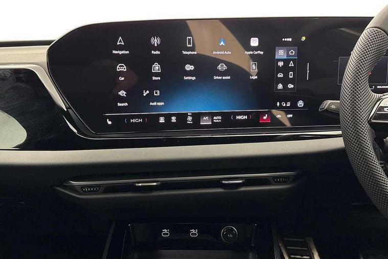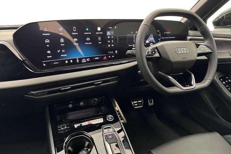 Adaptive cruise control, Advanced driver attention and fatigue montior, Audi application store, Audi assistant, Audi connect emergency call and service, Audi drive select, Audi smartphone interface, Audi virtual cockpit plus with 11.9" OLED colour display, Automatic start/stop system with coasting functionality, Camera based traffic sign recognition, Intersection assist, Lane departure warning, MMI navigation plus with high resolution 14.5" OLED touchscreen colour display, Park assist plus, Parking system plus with 360 display, Progressive steering with servotronic, Rear view camera, Swerve assist and turn assist, Traffic sign based speed limiter, Sports suspension lowered by 20mm, 2 USB-C ports in both the front and rear, Audi sound system impressive sound with 10 loudspeakers including centre speaker and subwoofer, 6-channel amplifier with a total output of 180 watts, DAB digital radio reception, Smartphone compartment with wireless charging, Aluminium roof rails, Aluminium window trims, Auto dimming rear view mirror, Body colour door mirrors, Door mirrors - electrically adjustable, heated, folding and auto dimming on both sides, Front and rear electric windows, Front door sill trims with aluminium inlays, illuminated with 'S' logo, High beam assist, LED headlights Plus incl. digital daytime running lights, turning light, all-weather light, motorway light, manouevring light and intersection light, LED rear lights pro incl. dynamic rear indicators and illuminated light strip with animated coming and leaving home function, LED third brake light, Privacy glass, Rear and side windows with heat insulating glass, Rear side wing doors, Rear wash/wipe, S Line badges on the front wings, S line bumpers, radiator grille and diffuser in phantom black and diffuser insert in matt anthracite, White rhombus logo projection light in exterior mirrors, Windscreen with acoustic glazing, 3 rear headrests, 3 seat rear bench, 3 spoke leather steering wheel with multi-function buttons with touch control, flattened on top and bottom, with S badging and contrast stitching, 3-zone automatic climate control, 40:20:40 split folding rear seat bench with centre armrest and cup holders, Comfort front centre armrest, Front and rear floor mats, Front seats with manual adjustment for position and 4-way electric lumbar support, Front sport seats with integrated headrest and S embossed logo, Headlining in black cloth, Heated front seats, i-Size child seat mounting on the front passenger side and outer rear seats, i-Size and top tether on the outer rear seats, Luggage compartment lid, electrically opening and closing, Manual steering column height and depth adjustment, Single front passenger seat, Stainless steel pedals and footrest, Steering wheel grips in perforated leather and shift paddles, Ambient lighting package plus - A5, 3x3 point rear seat belts, Driver airbag, Electric child safety locks, First aid kit with warning triangle and vests, Front emergency brake assist, Front passenger airbag, Front passenger airbag deactivation, Front side airbags with head airbag system and front interaction airbag, Hill hold assist, Seat belt monitoring with rear seat occupant reminder, Tyre pressure loss indicator, Anti theft alarm, Anti-theft wheel bolts, Keyless Go, Accent surfaces and control buttons in gloss black, Black dashboard with contrast stitching, Inlays in matt brushed aluminium with linear embossing, anthracite, Softwrap in leatherette with contrast stitching, Upper and lower interior elements in leatherette, Tyre repair kit,