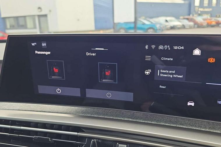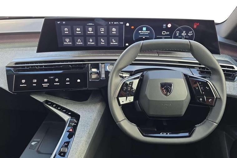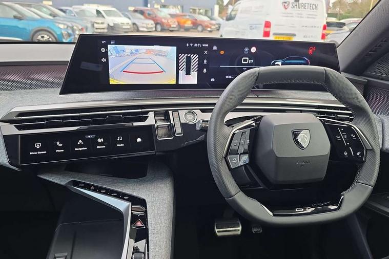 Adaptive cruise control with Stop and Go, Bluetooth with two microphones (Connect up to 2 phones), Drive modes select (Eco, normal and sport) with configurable ambient lighting, Driver foot rest, Driver profile selection, E-call, Exterior temperature indicator with ice warning, Front parking sensor, Front passenger seat detection, Hands free Smart Electric Tailgate (foot operated), Lane keep assist, Manual gear changes via steering mounted paddles, Multi function trip computer, Natural voice recognition, PEUGEOT i-Cockpit - 21" HD panoramic curved display incorporating instrument panel and touchscreen with 3colour themes, PEUGEOT i-connect advanced HD fully customisable touch screen, Navigation with Tom Tom Live updates and over the air map updates, PEUGEOT SOS and assistance, Rear parking sensor, Speed limit and traffic sign recognition and recommendation, Wireless mirror screen with apple carplay and android auto, Wireless smartphone charger with status light and ambient lighting, Dynamic stability control (DSC) and Anti slip regulation (ASR), 1x USB-C socket for data/charging at front, 2x USB-C sockets for charging at rear, 6 speakers, AM/FM bi-tuner, DAB Radio (Digital Audio Broadcasting), Peugeot customisable virtual iToggles, 5008 model designation badges front and rear in basalt grey, Automatic hazard light activation upon heavy brake application, Automatic headlamp activation, Automatic windscreen wiper activation with interval wiping intensity control, Black diamond roof and floating effect rear spoiler finished in nera black metallic, Body coloured exterior door handles, Dark tinted privacy glass for rear door, Tailgate and Quarter windows, Door mirrors - Welcome lighting and integrated LED indicators, Electric adjustable/heated/folding door mirrors, Electrochrome rear view mirror, Flat blade wipers with magic wash integrated nozzles, Front and rear electric windows with one touch, Front grille with body coloured accents, Full LED 3D glass blades design Peugeot signature claw effect rear lights, Gloss black connecting strip between rear lights, Gloss black finish B pillar, Gloss black roof rails, Grained black lower door claddings and wheel arches, Hybrid rear badging in basalt grey, LED exterior lighting, LED third brake light, Lower front and rear bumper trims in meteor grey, Orbital gloss black door mirrors, Peugeot 3-claw signature front and rear daytime running lights, PEUGEOT shield on front wings, Pixel LED Technology headlights with adaptive high beam assist, Rain sensor, Rear side wing doors, Rear wiper, Tailgate with heated rear window, 12V socket in front and boot, 2 cupholders in front centre console with closed storage, 2 seat bench in 3rd row, 2nd Row Manual Window Blinds, 3 seat bench in 2nd row, 4 Grab handles retractable and damped, 4 tie down luggage rings, 40/20/40 folding 2nd row seat backrest with 60/40 base with easy access to 3rd row seat, 50/50 folding 3rd row seat backrest with fixed base, Additional rear blower, Arch design central console with concealed storage, Cabin high efficiency filter, Central armrest with two cupholders and smartphone holder in 2nd row, Central front armrest with ventilated storage compartment and LED lighting, Chrome finish interior door handles, Compact heated multifunction steering wheel with full grain leather Iced Clay stitching, gloss black and satin chrome detailing and GT badge, Driver pedals with aluminium finish, Driver's manual adjustable lumbar support, e-Toggle compact gear selector, Electric power steering with reach and rake adjustable steering column, Glasses storage box, roof mounted, LED boot light, LED footwell lights, LED front and rear roof lighting, LED Glovebox light, LED illuminated driver and passenger concealed sunvisor mirrors, Luggage cover, Luxury front and rear carpet mats with Iced Clay stitching, Mistral black pillars and headlining, Quick launch cabin heating/cooling function, Rear air vents, Roll up awning fitted to tailgate, Roof lining - Meteor grey, Seatbelt unfastened on the move audible and visual alert for front and rear seats, Single front passenger seat, Stainless steel PEUGEOT door sill trims, Tri zone climate control, Two bag hooks, Under floor storage in boot, 2x Isofix child seat fitting on 2nd row outer seats with zipped cover, 2x3 point rear seatbelts for row 3, 2x3 point seatbelts for row 2 outer rear seats + Centre seat in row 2 with 3 point seatbelt, ABS (Anti-lock Braking System) with (EBD) Electronic Brakeforce Distribution, Adaptive front passenger airbags with airbag deactivation function, Advanced Emergency Braking System with radar (AEBS3) providing night detection of pedestrians and cyclists, Child locking functionality on rear doors, Driver airbag, Electric parking brake, Emergency Brake Assist (EBA), Front and rear curtain airbags, Front and row 2 side airbags, Front optimised safety headrests and 3 x rear retractable headrests with height adjustable, Front/rear disc brakes, Hill start assist, Post collision safety brake, Seatbelts - Front and 2nd row outer seats with pyrotechnic pretensioners and force limiters, Tyre under inflation monitoring and detection (Indirect), 2x Keys (Lock, Unlock, Boot release function with concealed key), Acoustic vehicle alert system (AVAS), Automatic door locking when moving off, Deadlocking system, Electronic code immobiliser, Exterior passenger door lock, Locking wheel nuts, Peugeot Open and Go (keyless entry and push button start), Thatcham category 1 Perimetric and volumetric alarm with anti-lift detection, Aluminium printed dashboard and front door panel Alcove decor, Textile decor for dashboard, door panels and centre console arch, 19" BREDA diamond cut alloy wheels with star center cap in orbital black,