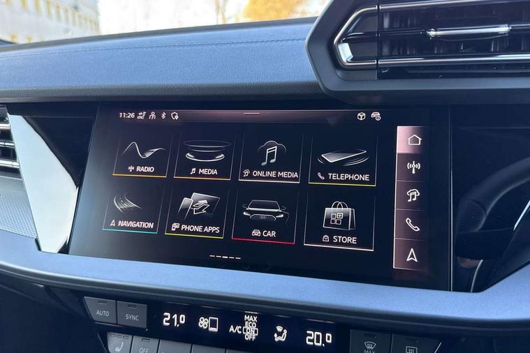 Adjustable speed limiter, Audi drive select, Audi smartphone interface with app store includes wireless Apple carplay, Android auto and Amazon alexa integration, Audi virtual cockpit plus - 12.3" full HD resolution dynamic digital instrument cluster, Automatic start/stop system with recuperation, Bluetooth interface, Camera based traffic sign recognition, Collision avoidance assistant, Cruise control, Distraction and Fatigue warning, e-Call (emergency call), Electromechanical power speed sensitive steering, Emergency assist, Lane departure warning system, MMI Navigation Plus with high resolution 10.1" colour touch screen display, Park Assist with parking system Plus, Service indicator, Trip computer, Voice control system with natural language interaction, 3 pin 10 amp domestic charging cable, CCS socket for DC charging, Charging cable for public charging, mode 3 (type 2), 32 A, Compact charging system, Industrial connector CEE 32 A, 230 V, length 1.6 m, Standard suspension, Type 2 socket for AC charging, Audi Phonebox light with wireless charging, Audi sound system - 10 loudspeakers including centre loudspeaker and subwoofer, DAB Digital radio, USB ports with charging function in the rear, Acoustic glass windscreen, All weather light, Aluminium window trim, Auto dimming frameless rear view mirror, Automatic dynamic range control, Body colour exterior mirrors, Chrome exhaust tailpipes, Dipped beam, main beam, position light and turning light, Electrically adjustable/heated/folding/auto dimming door mirrors with integrated LED indications + kerb view function for passenger side, Exterior model badging, Front and rear side air inlets in grained matt black with dark liquid chrome frame, Front electric windows, Front radiator grill in high gloss dark chrome, Heat insulating glass windscreen, Illuminated door sills with aluminium inserts at the front with S logo, Intersection light, LED 3rd brake light, LED brake lights, LED daytime running x3, LED headlights with LED rear lights and dynamic rear indicators, LED rear number plate lights, LED reverse light, LED tail lights, Light and rain sensors, Manoeuvring light, Motorway light, Privacy glass - dark tinted rear window, rear door and side windows, Rear diffuser and grill in grained matt black with inlay in dark liquid chrome, Rear electric windows, Rear side wing doors, Rear wiper, S line bumpers, S roof spoiler, Side S line emblems on front wings, Side sill trim in dark liquid chrome, Static cornering light, 12V socket and storage compartment in front centre console, 3 seat bench in 2nd row, 3 spoke flat bottomed leather multifunction sport steering wheel with gear shift paddles, 3-zone deluxe automatic air conditioning, 4 way electrically adjustable lumbar support for driver and front passenger, 40/20/40 split folding rear seat bench, Black cloth headlining, Black front and rear floor mats, Convenience auxiliary air conditioning, Front and rear centre armrest in artificial leather with contrasting stitching on armrests and instrument panel, Front and rear headrests, Heated front seats, Height and reach adjustable steering wheel, Manual boot compartment lid, Manually adjustable front seats, Rear centre armrest with cupholder, S badging on the steering wheel, Seat side bolsters, Single front passenger seat, Stainless steel pedals and front footrest in black, Twin leather upholstery with front sports seats S embossed logo, Aluminium interior elements pack - A3, Multi-coloured LED interior lighting package with Multi-coloured contour lighting of instrument panel - A3, 3x3 point rear seat belts, Acoustic vehicle alerting system, Driver and front passenger airbag with passenger airbag deactivation, Electronic Stabilisation Control (ESC) including ABS, ASR and EDL, First aid kit with warning triangle and 2 safety vests, Front side airbags with head airbags and interaction airbag, Hill hold assist, Pre-sense front with pedestrian and cyclist detection, Seatbelt monitoring, Tyre pressure loss indicator, Anti theft alarm, Anti-theft wheel bolts, Electronically operated child locks, Immobiliser, Remote central locking with safelock, Black dashboard, Inlay in dark aluminium spectrum, Tyre repair kit,