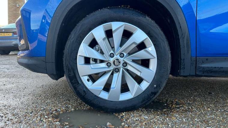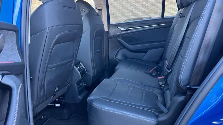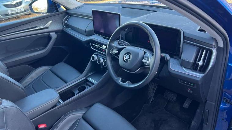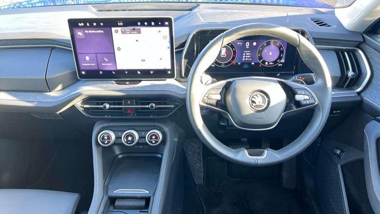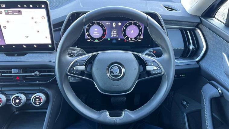 13" satellite navigation touchscreen display, Blind spot detection with door exit warning, Bluetooth system, ChatGPT functionality, Drive mode selector, Driver alert with fatigue sensor, Driver drowsiness alert system, Dry display cleaner, e call+, Front cross traffic assist, Lane assist, PAS, Rear traffic assist, Tailgate unlocking from outside, Traffic sign recognition, USB C Port x 2 in front centre console, Virtual Cockpit - 10.25" digital display, Voice control system, Wireless charging for two smartphones (15W) with cooling function, Wireless SmartLink for Apple CarPlay and Android Auto, Stop/start function, 2x USB-C in the rear, DAB Digital radio, Aero front windscreen wipers with intermittent function, Auto dimming rear view mirror, AWL (all weather lighting) and all weather light with cornering function, Black wheel arch surrounds, Body colour bumpers, Body colour door mirrors and handles, Cornering light and poor weather light, Electric folding /adjustable/separted heated/folding door mirrors, auto dimming with boarding sports and memory function, Electric front and rear windows, Exterior black decorative trims, Heat insulating glass in windshield, Heated rear window, Ice scraper in fuel tank cap, Invisible tailpipe, LED daytime running lights, LED third brake light in rear spoiler, Light assistant with automatic headlight control and coming home feature, Logo projection in door mirrors, Privacy glass, Rear side wing doors, Rear spoiler, Rear window wiper, Red decorative strip between rear LED lights, Safety reflectors on front and rear doors, Unique dark chrome design logo on alloy wheels, Window control switches with black trim, Windscreen wipers with rain sensor, Without engine designation, 1.5l bottle holder points in all door, 12V socket in boot, 1x centre rear reading light, 2 seat bench in 3rd row, 3 configurable smart dials with 32mm coloured display, 3 seat bench in 2nd row, 4 foldable roof handles with rear coat hooks, Ambient interior lighting - Dashboard, front-door stowage compartments, front and rear door panels and footwell lighting, Automatic gear selector on steering wheel, Chrome interior door handles, Driver/front passenger reading lights, Fabric headlining, Fixed bench 40:60:40 split folding backrests, Front and rear floor mats, Front centre armrest with jumbo box storage compartment, cup holder and 12V socket, Front courtesy lights, Height adjustable front headrests, Isofix child seat fittings in outer middle row rear seats and front passenger with top tether, Manually adjustable steering column, Pollen filter, Rear centre armrest with cupholders, Rear seat boot backrest release, Retractable luggage compartment cover, Single front passenger seat, Skoda lettering on steering wheel, Sliding trunk cover, Small Bags on the inner sides of the front backrests, Storage pocket including mobile phone pockets on the backs of the front seats, Sunvisors with illuminated vanity mirrors, Three rear height adjustable headrests, Ticket holder on A Pillar, Tri zone climate control, Umbrella in door panel x1 made from sustainable materials, Upper and lower glovebox with card holder and coin compartment, USB C port by rear view mirror for charging only (15W), Exterior styling pack - Kodiaq, Auto door release and activation of warning lights in the event of an accident, Driver and front passenger airbag with knee airbag and front passenger airbag deactivation, Electric child locks, Electronic parking brake, ESC (incl. ABS+EMD+MSR+ASR+EDL+HBA+DSR+RBS+ESBS+MCB+TSA+XDS), Front assist with braking reaction to vehicles, pedestrians and cyclists, Front disc brakes, Fuel cut off safety device, Height adjustable front 3 point seatbelts + pretensioners, Hill hold control, Junction assist with automatic emergency braking, Rear disc brakes, Safety vest holder in door, Seat belt reminder for all seats, Three point rear seat belts, Two tone horn, Tyre pressure monitor, Anti-theft wheel bolts, Immobiliser, Remote central locking with 2 keys, Breakdown kit,