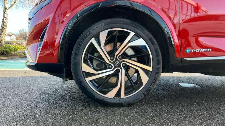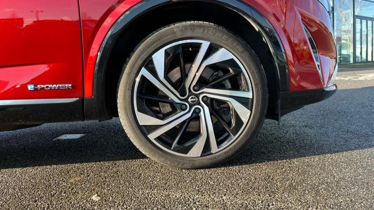 2 front USB-C ports, 2 rear USB-C ports, 360 degree Intelligent around view monitor with moving object detection, Advanced windscreen head up display, Blind spot intervention, Blind spot warning, Drive assist custom mode, Drive modes (sport, normal, eco), Driver drowsiness and attention warning, e-Pedal step, Electric speed sensitive power steering, Emergency and breakdown call, Emergency lane keep assist, Emergency Stop Signal (ESS), Engine start/stop button, EV mode switch, Event data recorder, Front and rear parking sensors, Full Digital 12.3" TFT Digital Combimeter, Google virtual personal assistance, Hands free power tailgate, Idle stop/start system, In-car WIFI hotspot, Intelligent Cruise control (ICC), Intelligent forward collision warning, Intelligent speed assist, Lane departure warning system, Nissan connect 12.3 inch touchscreen infotainment system, Nissan connect navigation with google maps, Nissan connect services 2.0 (Google Automotive System), Outside temperature sensor, Rear cross traffic alert, Reversing detection, Traffic jam pilot, Wireless Apple CarPlay/Android Auto, Wireless charging pad, Limited slip differential, Multi link suspension, 10 Bose speakers - 2 tweeters, 6 high and medium frequency door speakers and 2 in subwoofer, AM/FM audio system with DAB, Bluetooth audio streaming, Bose acoustimass bass box, Auto dimming frameless rear view mirror, Auto rear wiper when reversing, Body colour mirror caps, Body coloured bumpers, Body coloured door handles, Bodyside mouldings, Chrome side window finisher, e-POWER badging, Electric auto folding door mirrors, Electrically adjustable and heated door mirrors with LED turn indicator, Follow me home headlights, Glossy black bumper inserts and fenders, High beam assist, Intelligent auto headlights, LED 3rd brake light, LED daytime running lights, LED headlights with adaptive driving beam, LED rear lights, LED sequential turn lights, One touch front and rear electric windows with remote opening and closing, One touch passenger window, Rear privacy glass, Rear roof spoiler, Rear side wing doors, Rear styling plate, Reverse tilting door mirrors, Shark fin antenna, Silver roof rails, Splash free rain sensing wipers, Super RED rear LED lights, Super UV and infrared cut glass, Thermaclear heated windscreen, 3 bench rear seats in 2nd row, 3 rear headrests, 60/40 split folding rear seat bench, Chrome interior door handles, Dark headlining, Driver seat back pocket, Dual zone automatic climate control with pollen filter, e-POWER shifter, Fixed Glass roof with electric sunshade, Front door with bottle holders, Heated front seats, Heated steering wheel, Height adjustable front headrests, Luggage board system, Luggage space lighting, Multifunction steering wheel, Passenger seat back pocket, Quilted premium leather upholstery, Rear door bottle holders, RGB ambient light (Full area coverage), Single front passenger seat, Smooth leather steering wheel, Tilt/telescopic adjustable steering wheel, Two rear isofix child seat anchorage points with top tether, 3x3 point rear seatbelt pretensioners + load limiters, Autonomous emergency braking, Child locks on rear doors, Curtain and front side, far side airbags, Driver and passenger airbags, Driver, passenger and 2nd row rear seat belt reminder, Electric handbrake with auto hold function, Front seatbelt pretensioners + load limiters, Height adjustable front seatbelts, Hill start assist, intelligent front emergency braking, Rear automatic braking, Tyre pressure monitoring system, Vehicle dynamic control, Engine immobiliser, Intelligent key with walk away lock and approach unlock functions, Remote central door locking with deadlocking, Thatcham alarm, 20" Diamond cut alloy wheels, Tyre puncture repair kit,