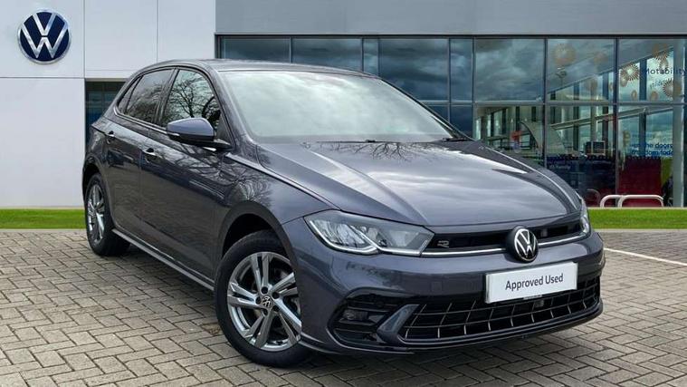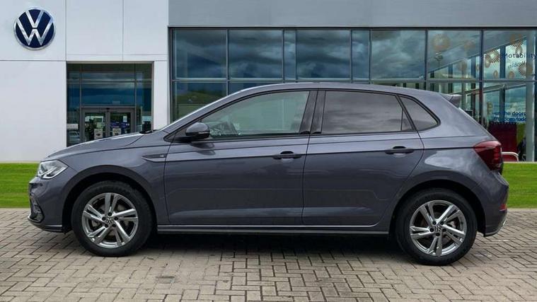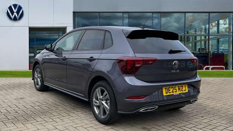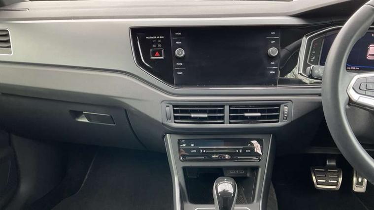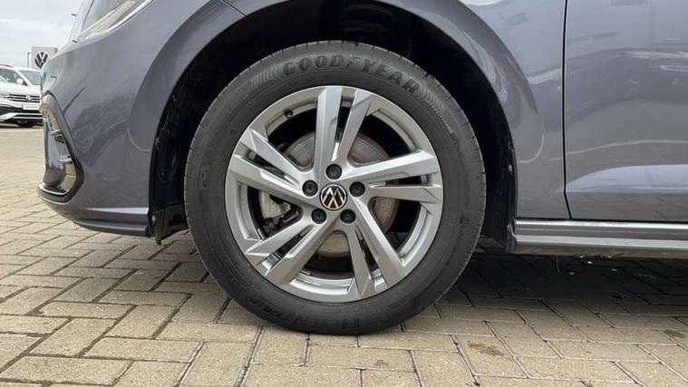 Adaptive cruise control with follow-to-stop and speed limiter, Advanced driver attention and drowsiness monitor, Bluetooth mobile phone interface, Digital Cockpit Pro with 10.25" Display, Dynamic road sign display, Emergency call service, Multifunction camera, Power assisted speed sensitive steering, Preparation for We connect and We connect plus, Speedo and rev counter, electronic odometer, trip, service interval display and fuel gauge, Standard rear axle, Travel Assist - Lane keeping system and traffic jam assist, Travel assist including emergency assist, Trip computer, Warning signal and warning light for front and rear seatbelts not fastened, Washer fluid level indicator, Wireless app connect, Front wheel drive, Rear shock absorpion, Start-stop system with battery regeneration (recuperation - energy recovery during braking), DAB Digital radio, Diversity antenna for FM reception, Front and rear 6 speakers, Body colour bumpers, Body colour door handles, Electric front windows, Front scuff plates with R-Line logo, Heat insulating glass windscreen, Power folding adjustable/heated exterior mirrors and front passenger exterior mirror lowering function, Rear electric windows, Rear fog light, Rear side wing doors, Rear windscreen washer and wiper with interval delay, Third brake light, 12V power socket in centre console, 2 USB-C ports in the front, 2 USB-C charging sockets on the center console in the rear, 3 rear head restraints, 60/40 split folding rear seat and rear seat bench not split, Air care climatronic air conditoning system with active combination filter and 2-zone temperature control, Black roof lining, Carpet mats, front and rear, Chrome plated radiator grille inserts, air vent surrounds and light switch surrounds, Door and side trim panel, Driver and front passenger seat height adjustment, Driver/passenger sunvisors with illuminated vanity mirrors, Front centre armrest, Front footwell illumination, Front seat backrest storage pockets, Front sports comfort seats, Handbrake lever handle in leather, Headliner in recycled material, Isofix child seat preparation easy-fit (for two outer rear seats, and front passenger seat) compatible with I-size, Karoso artvelours cloth upholstery, Leather trimmed gear knob, LED interior light with switch off delay and dimmer, 2 reading lights front and rear, Luggage compartment cover, Luggage compartment floor, Luggage compartment lighting, Lumbar adjustment for front seats, Single front passenger seat, Stainless steel pedals, Standard pedal cluster, Three spoke leather wrapped multifunction steering wheel with shifting paddles, Light and sight pack - Polo R-Line/Black Edition, 3 point height adj front seatbelts + pretensioners, 3x3 point rear seatbelts, ABS, Driver and front passenger airbag with front passenger airbag deactivation, Drivers and front passengers safety optimised head restraints, ESC (Electronic stability control) + EDL (Electronic Differntial lock) and ASR (Traction control), Extended and predictive pedestrian/ cyclist protection, Front curtain and side airbags with center airbag, Front/rear disc brakes, Hill hold control, Manual child lock in rear doors, Single tone horn, Tyre pressure loss indicator, Alarm with interior protection, Anti-theft alarm system with interior monitoring, backup horn, and towing protection, Anti-theft wheel bolts, Electronic engine immobiliser, Chrome applications on rotary light, mirror adjustment, window regulator switches, outlet with frame in black, Dark grey anodised matt decorative inserts in dash and front door panels, 16" Coventry alloy wheels, Low rolling resistance tyres,