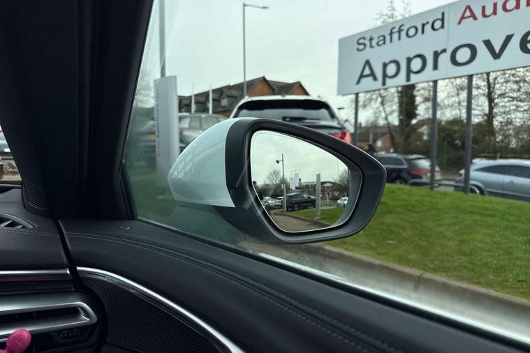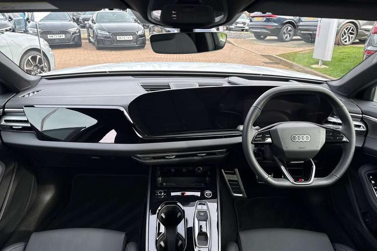 Adaptive cruise control, Advanced driver attention and fatigue montior, Audi application store, Audi assistant, Audi connect emergency call and service, Audi drive select, Audi smartphone interface, Audi virtual cockpit plus with 11.9" OLED colour display, Automatic start/stop system with coasting functionality, Camera based traffic sign recognition, Intersection assist, Lane departure warning, MMI navigation plus with high resolution 14.5" OLED touchscreen colour display, Park assist plus, Parking system plus with 360 display, Progressive steering with servotronic, Rear view camera, Swerve assist and turn assist, Traffic sign based speed limiter, Sports suspension lowered by 20mm, 2 USB-C ports in both the front and rear, Audi sound system impressive sound with 10 loudspeakers including centre speaker and subwoofer, 6-channel amplifier with a total output of 180 watts, DAB digital radio reception, Smartphone compartment with wireless charging, Aluminium window trims, Auto dimming rear view mirror, Body colour door mirrors, Door mirrors - electrically adjustable, heated, folding and auto dimming on both sides, Front and rear electric windows, Front door sill trims with aluminium inlays, illuminated with 'S' logo, High beam assist, LED headlights Plus incl. digital daytime running lights, turning light, all-weather light, motorway light, manouevring light and intersection light, LED rear lights pro incl. dynamic rear indicators and illuminated light strip with animated coming and leaving home function, LED third brake light, Privacy glass, Rear and side windows with heat insulating glass, Rear boot, Rear side wing doors, S Line badges on the front wings, S line bumpers, radiator grille and diffuser in phantom black and diffuser insert in matt anthracite, White rhombus logo projection light in exterior mirrors, Windscreen with acoustic glazing, 3 rear headrests, 3 seat rear bench, 3 spoke leather steering wheel with multi-function buttons with touch control, flattened on top and bottom, with S badging and contrast stitching, 3-zone automatic climate control, 40:20:40 split folding rear seat bench with centre armrest and cup holders, Comfort front centre armrest, Front and rear floor mats, Front seats with manual adjustment for position and 4-way electric lumbar support, Front sport seats with integrated headrest and S embossed logo, Headlining in black cloth, Heated front seats, i-Size child seat mounting on the front passenger side and outer rear seats, i-Size and top tether on the outer rear seats, Luggage compartment lid, electrically opening and closing, Manual steering column height and depth adjustment, Single front passenger seat, Stainless steel pedals and footrest, Steering wheel grips in perforated leather and shift paddles, Ambient lighting package plus - A5, 3x3 point rear seat belts, Driver airbag, Electric child safety locks, First aid kit with warning triangle and vests, Front emergency brake assist, Front passenger airbag, Front passenger airbag deactivation, Front side airbags with head airbag system and front interaction airbag, Hill hold assist, Seat belt monitoring with rear seat occupant reminder, Tyre pressure loss indicator, Anti theft alarm, Anti-theft wheel bolts, Keyless Go, Accent surfaces and control buttons in gloss black, Black dashboard with contrast stitching, Inlays in matt brushed aluminium with linear embossing, anthracite, Softwrap in leatherette with contrast stitching, Upper and lower interior elements in leatherette, Tyre repair kit,