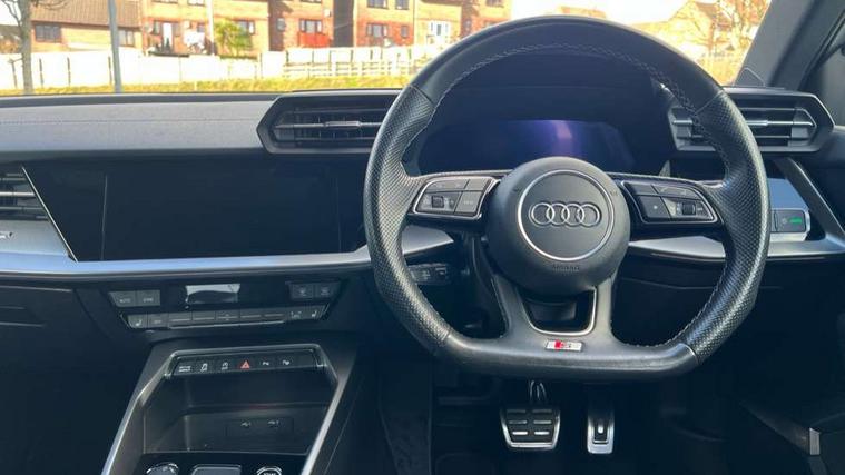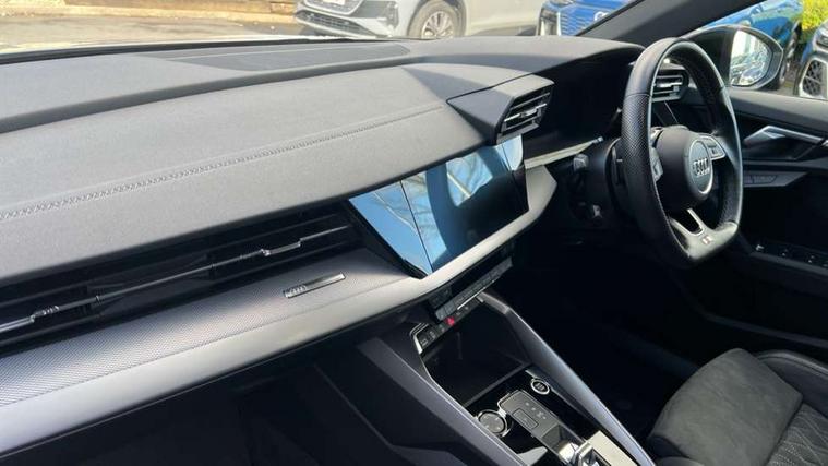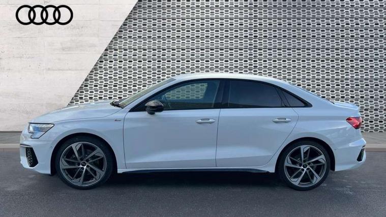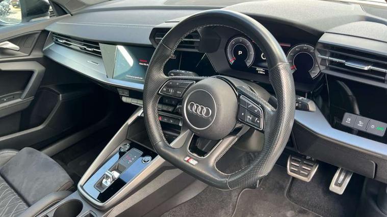 Audi connect emergency call and service, Audi drive select (Auto, Comfort, Dynamic, Efficiency and Individual), Audi smartphone interface, Audi virtual cockpit plus - 12.3" dynamic digital instrument cluster, Automatic start/stop system with recuperation, Bluetooth interface, Collision avoidance assistant, Electromechanical power speed sensitive steering, Lane departure warning system, MMI Navigation Plus with high resolution 10.1" colour touch screen display, Service indicator, Voice control system with natural language interaction, Diesel particulate filter, Sports suspension, 2x USB Type C ports (for charging and data transfer), 6 passive loudspeakers, CD player, DAB Digital radio, 3rd brake light, Acoustic glass windscreen, Audi matrix LED headlights, LED rear lights, dynamic front and rear indicators and headlight cleaning system, Auto dimming frameless rear view mirror, Electrically adj heated/folding + automatically dimming exterior mirrors with memory + automatic kerb side function for passenger side exterior mirror, Front electric windows, Illuminated door sills with aluminium inserts at the front with S logo, Integrated LED indicators in door mirrors, LED daytime running lights, Light and rain sensors, Model and engine designation badges at rear, Privacy glass - dark tinted rear window, rear door and side windows, Rear boot, Rear electric windows, Rear side wing doors, S roof spoiler, 12V socket and storage compartment in front centre console, 3 seat bench in 2nd row, 4 way electrically adjustable lumbar support for driver and front passenger, 40/20/40 split folding rear seat bench with cupholder, Black cloth headlining, Dual zone electronic climate control, Electrically adjustable front seats with memory function for driver's side and exterior mirrors, Front and rear centre armrest in leather, Front and rear headrests, Front/rear floor mats, Heated front seats, Height and reach adjustable steering wheel, Illuminated vanity mirror, Interior lighting - glove compartment light and right hand side, Luggage compartment floor covering, Manual boot compartment lid, Single front passenger seat, Stainless steel pedals and front footrest in black, Aluminium interior elements pack - A3 Saloon, Black styling pack - A3/S3, Dinamica microfibre/mono.pur 550 artificial leather pack - A3 Saloon, Extended ambient lighting pack - A3/S3 Saloon, LED interior lighting pack - A3 Saloon, 3x3 point rear seat belts, Driver and front passenger airbag with passenger airbag deactivation, Electronic Stabilisation Control (ESC) including ABS, ASR and EDL, First aid kit with warning triangle and 2 safety vests, Front side airbags with head airbags and interaction airbag, Hill hold assist, Pre-sense front with pedestrian and cyclist detection, Seatbelt monitoring, Tyre pressure loss indicator, Anti theft alarm, Anti-theft wheel bolts, Electronically operated child locks, Immobiliser, Remote control central locking, Aluminium air vent surrounds, Aluminium trim elements, Dark spectrum aluminium inlays, accent surfaces in the dashboard and centre console in platinum grey silk effect paint finish, 19" 5 arm trapezoid design alloy wheels in matt grey with diamond cut finish,