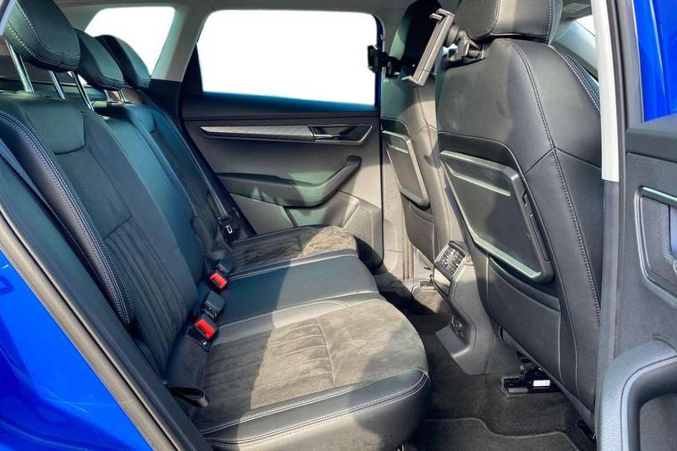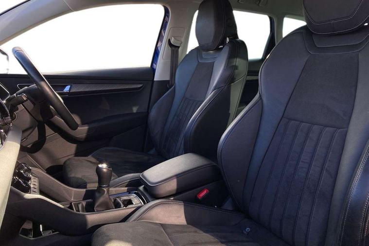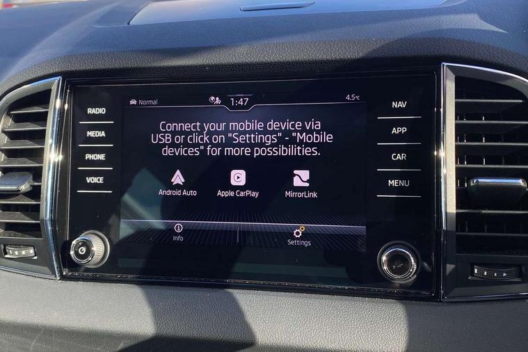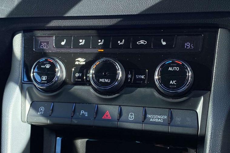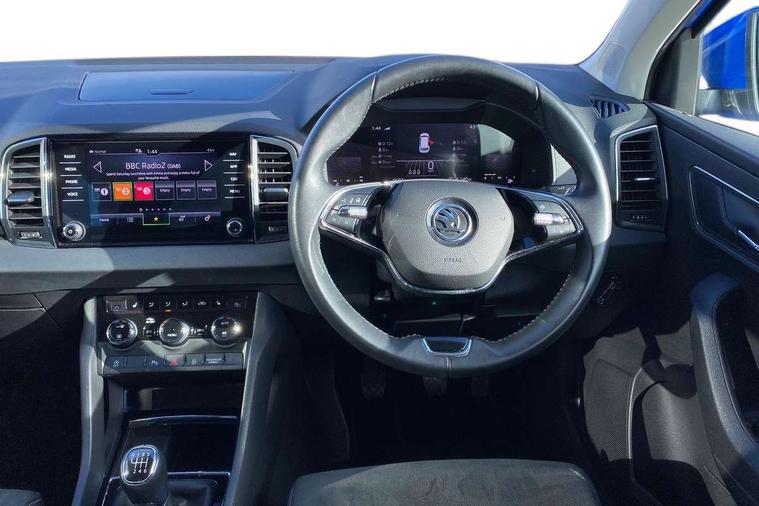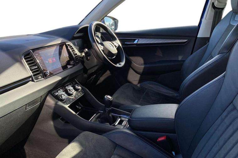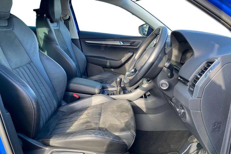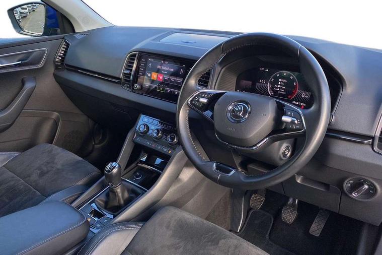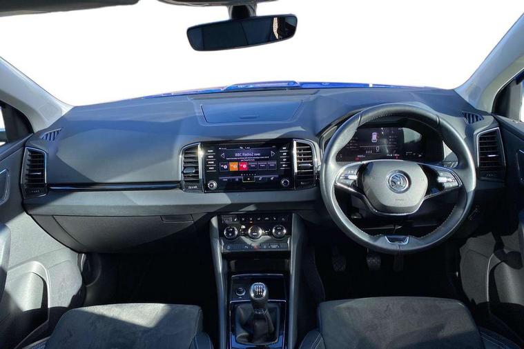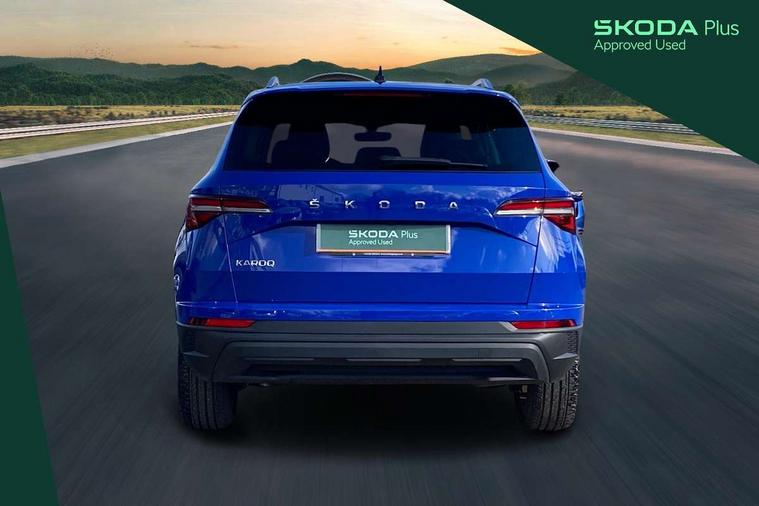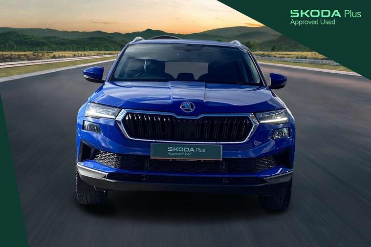 8" Digital display, Care connect, Driver fatigue sensor, Emergency services call system, Outside temperature gauge, Service interval indicator, SmartLink wireless for Apple and wired for Android, Start/stop system with regenerative braking, USB C Port x 2 in front centre console, 8 speakers, DAB radio with Bluetooth, USB connection, Acoustic glass, Aero front windscreen wipers with intermittent function, Auto dimming rear view mirror with light and rain sensors, Black electric window control buttons, Body colour door mirrors and handles, Dynamic headlight range control with cornering light function, Electric front and rear windows with child proof lock, Heated rear windscreen, LED daytime running lights, LED rear lights with high functionality welcome effect and dynamic indicators, Light assistant (coming/leaving home/tunnel light), Plastic scuff plates, Privacy glass, Rear side wing doors, Rear spoiler, Rear window wiper with washer system and intermittent control, Safety reflectors on front doors, Third brake light, 1.5 litre bottle holders in driver and front passenger door panels, 12V socket in boot, 12v socket in front centre armrest with storage compartment and rear air vents, 2 Folding hooks and nets in boot, 2 Spoke leather heated multifunction steering wheel, 2 x Tablet holder, 3 rear height adjustable headrests, 3 seat bench in 2nd row, 4 foldable roof handles with rear coat hooks, Black floor carpet, Chrome inner door handles, Decorative door sills with KAROQ badging, Double sided boot floor, Foldable hooks in the boot, Front head restraints, Height adjustable front three point seats belts with tensioners, Height/reach adjust steering wheel, Ice scraper, Illuminated glovebox, Illuminated luggage compartment, Isofix child seat preparation for front passenger seat, Isofix child seat preparation outer rear, Manual lumbar support for front seats, Pen holder, Pollen filter, Rear boot cover, Rear reading lights, Rubbish bin door, Safety vest holder, Single front passenger seat, Storage box in upper central dashboard closed, Sunvisors with illuminated vanity mirrors, Textile floor mats, Ticket holder, Tool kit, VarioFlex seats with standard rear seat release, Chrome roof rails + chrome pack - Karoq, Parking pack - Karoq, Automatic door unlocking in case of crash, Automatic fuel cut off in case of crash, Child locks on rear doors, Driver airbag, Electronic parking brake with auto hold function, Emergency rear braking signal, ESC including ABS, MSR, ASR, EDS, HBA, DSR, RBS, MKB and traction control, Front side airbags, Hill hold control, Knee airbags, Passenger airbag with switch-off function, Pedestrian monitor, Seatbelt reminder signalisation and pretensioner for all seats, Three point seatbelts rear, Two tone horn, Tyre pressure display, Tyre pressure monitor, Alarm with interior monitoring, back up horn and tilt sensor with safe function, Electronic engine immobiliser, Keyless entry and start/stop, Remote central locking with 2 remote folding keys, Chrome framed air vents, 18" Procyon silver alloy wheels with anthracite aero inserts, Anti-theft wheel bolts protection, Storage on wheel cover,