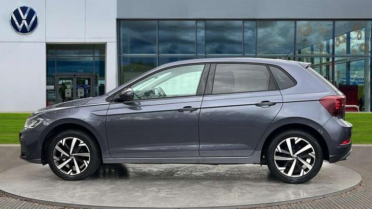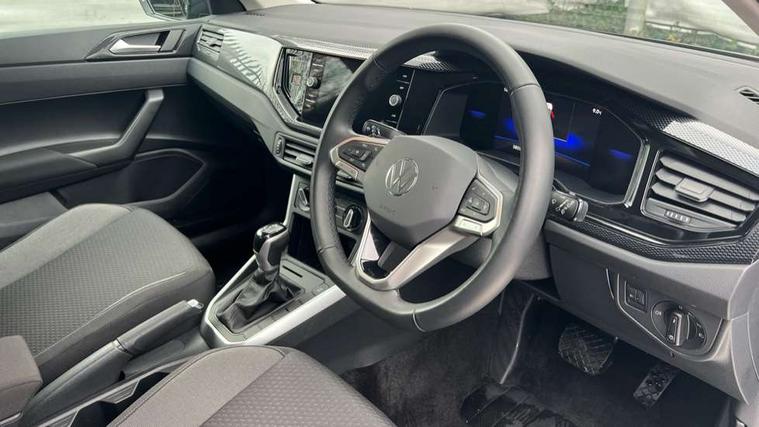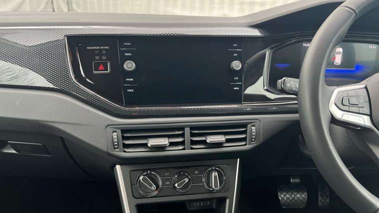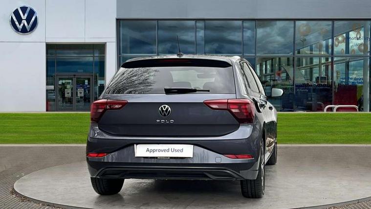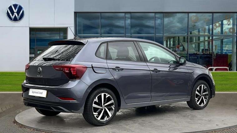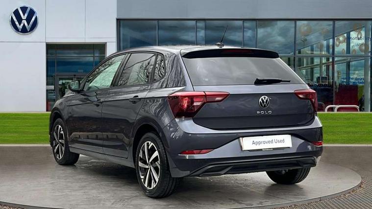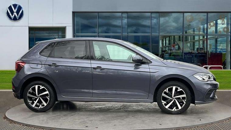Advanced driver attention and drowsiness monitor, Bluetooth mobile phone interface, Dynamic road sign display, Emergency call service, Mobile phone preparation with inductive charging function, Multifunction front facing camera for distance control, Power assisted speed sensitive steering, Predictive adaptive cruise control without follow-to-stop and speed limiter, Preparation for navigation system with media and internet package, Preparation for We connect and We connect plus, Rear view camera, Speedo and rev counter, electronic odometer, trip, service interval display and exterior temperature gauge, Standard rear axle, Travel Assist - Lane keeping system and traffic jam assist, Travel assist including emergency assist, Trip computer, Warning signal and warning light for front and rear seatbelts not fastened, Washer fluid level indicator, Wireless app connect, Front wheel drive, Rear shock absorpion, Start-stop system with battery regeneration (recuperation - energy recovery during braking), DAB Digital radio, Diversity antenna for FM reception, Automatic dimming interior rear view mirror, Automatic headlight control with LED separate daytime running lights with coming/leaving home function, Body colour bumpers with chrome inserts, Body colour door handles, Body colour door mirrors, Electric front windows, Engine badge deletion, Headlight range adjustment, Heat insulating and laminated safety glass windshield, LED Headlights, LED rear combination lamps, Power folding adjustable/heated exterior mirrors and front passenger exterior mirror lowering function, Rain sensor, Rear electric windows, Rear fog light, Rear side wing doors, Rear tinted glass from B-pillar backwards approx 65% tinted, Rear windscreen washer and wiper with interval delay, Third brake light, 12V power socket in centre console, 2 front and 2 rear reading lights with switch off delay and dimmer, 2 USB-C ports in the front, 2 USB-C charging sockets on the center console in the rear, 3 rear head restraints, 60/40 split folding rear seat and rear seat bench not split, Ceramique roof lining, Chrome plated radiator grille inserts, air vent surrounds and light switch surrounds, Door and side trim panel, Driver and front passenger seat height adjustment, Driver/passenger sunvisors with illuminated vanity mirrors, Front centre armrest, Front seat backrest storage pockets, Front standard seats, Handbrake lever handle in leather, Hartley/Thomas cloth upholstery, Headliner in recycled material, Isofix child seat preparation easy-fit (for two outer rear seats, and front passenger seat) compatible with I-size, Leather trimmed gear knob, Luggage compartment cover, Luggage compartment lighting, Removable luggage compartment floor, Single front passenger seat, Standard climatic zones, Standard pedal cluster, Three spoke leather wrapped multifunction steering wheel with shifting paddles, Light and vision pack - Polo, 3 point height adj front seatbelts + pretensioners, 3 point seat belt for centre rear seat, 3 point seatbelts, outer rear with ECE lable, ABS, Driver and front passenger airbag with front passenger airbag deactivation, Drivers and front passengers safety optimised head restraints, ESC (Electronic stability control) + EDL (Electronic Differntial lock) and ASR (Traction control), Extended and predictive pedestrian/ cyclist protection, Front assist with autonomous emergency braking (for Adaptive Cruise Control ACC up to 130 mph), Front curtain and side airbags with center airbag, Front disc brakes, Hill hold control, Manual child lock in rear doors, Rear drum brakes, Single tone horn, Tyre pressure loss indicator, Alarm with interior protection, Anti-theft alarm system with interior monitoring, backup horn, and towing protection, Anti-theft wheel bolts, Electronic engine immobiliser, Lava stone black gloss/matt decorative inserts in dash and front door panels, 16" Torsby alloy wheels, Low rolling resistance tyres,