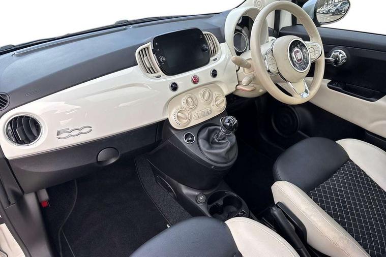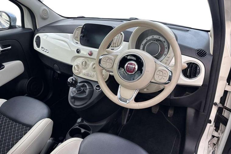 Apple car play/Android Auto, Cruise control, E-call, External temperature gauge, Power assist steering, Rear parking sensor, Speed limiter, Stop/start system, Trip computer, 4 speakers, 7" HD Touchscreen Radio, Bluetooth, USB and DAB, Rear speakers, 3rd brake light, Auto headlights, Body colour bumpers, Body coloured electrically adjustable door mirrors, Chrome plated exterior door handles, Dolcevita badge on fender, Dusk and rain sensors, Electric front windows, Fixed glass sunroof with sunblind, Front fog lights, Halogen headlamps, Heat insulated glass, Heated rear windows with wash wipe, LED daytime running lights, Rear side wing doors, Rear wiper, 1 passenger grab handle, 2 seat bench in second row, 50/50 split folding rear seats with height adjustable rear headrests, Air conditioning, Auxilliary 12V power socket, Chrome kit, Front headrests, Height adjustable drivers seat, Height adjustable steering wheel, Isofix child seat preparation, Single front passenger seat, Techno leather steering wheel with audio controls, 7 airbags - Driver, passenger, side, window and drivers knee airbags, ABS/EBD, ESC + ASR/MSR + HBA + Hill holder, Manual passenger airbag deactivation function, Traction control, Tyre pressure monitoring system, Automatic door locking, Immobiliser, Locking fuel filler cap, Remote central locking, 15" Alloy wheels,