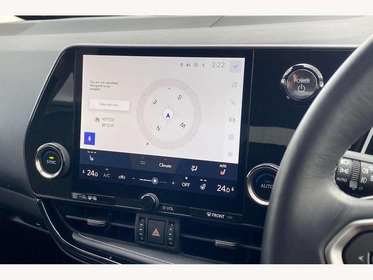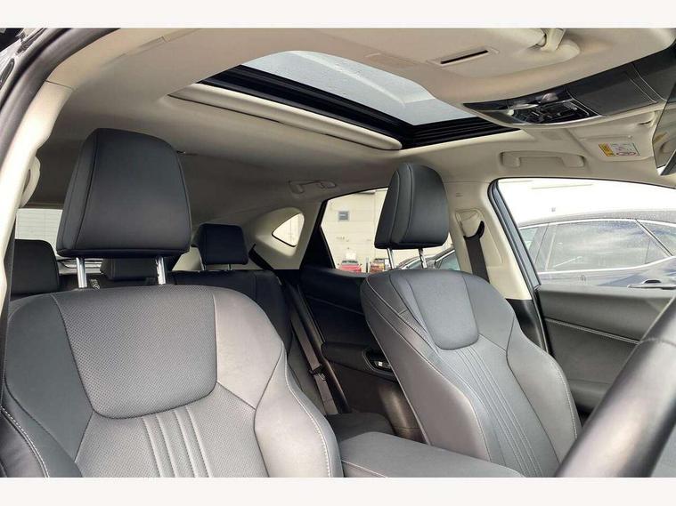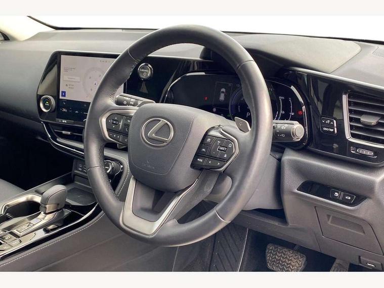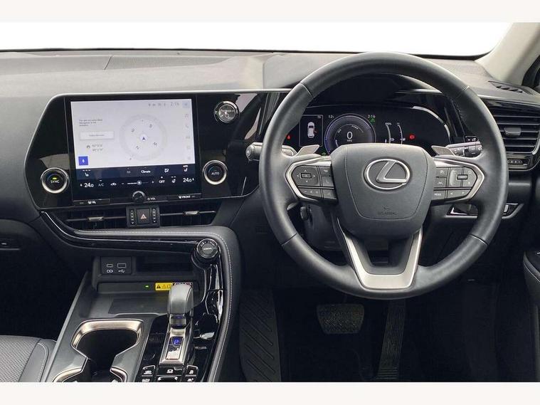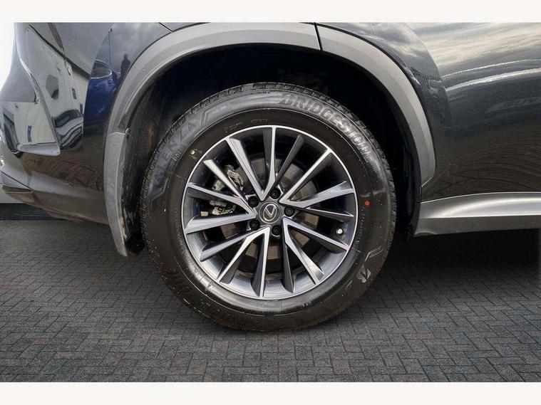 4 driving modes EV/Eco/Normal/Sport, 7" display in instrument binnacle, Blind spot monitoring with rear cross traffic alert, Bluetooth telephone connectivity, eCall emergency system, Electric speed sensitive power steering, Intelligent parking sensors - 4 front and 4 rear, Lane change flasher function, Lexus link connect - Cloud based navigation, cloud based voice assistant, always online and 9.8" VGA touchscreen, Push button starter, Reversing camera with back guidelines, Service interval indicator, Tailgate, Wireless Apple CarPlay and wired Android Auto, Wireless Smartphone charger, 6.6 kW onboard charger, All Wheel Drive (AWD), Hybrid automatic transmission, Vehicle Dynamics Integrated Management (VDIM), Vehicle Stability Control (VSC), 10 speakers, 4 USB ports - 2 front, one USB C, 2 rear USB C, DAB Digital radio, Auto dimming interior rear view mirror, Automatic headlights, Bi LED headlights, Double hidden exhaust pipes, Front and rear one touch power windows, with anti-jam protection, Heated, auto-folding, auto-dimming outside mirrors with reverse tilt function and turn indicators, Illuminated door handles with puddle light, LED brake lights and rear lights with emergency brake signal, LED cornering lights, LED daytime running lights, LED front fog lights, LED Indicators, Power back door with kick sensor, Privacy glass, rear doors and tailgate, Rain sensor windscreen wipers, Rear side wing doors, Rear wiper, Roof rails, 12V accessory port centre console and luggage compartment, 2 cupholders in front centre console, 2 way electrical lumbar adjustment for driver, 2 x fixed shopping bag hooks in boot, 2 x sun visors with vanity mirror and lamp, 3 seat bench in 2nd row, 4 x tie down hooks in the boot, 60/40 split folding rear seat, 8 way driver/passenger electrically adjustable front seats, Adjustable rear seat backrest, Card holder installed in driver and passengers sun visors, Centre armrest with storage box, Dual climate control air conditioning system, Front and rear head restraints, Front and rear textile carpet mats, Front passenger seat, Heated front seats, Heated steering wheel, Leather gear lever, LED interior illumination, Power adjustable leather steering wheel with paddle shifts, Premium Tahara leather upholstery, Rear centre armrest with 2 cupholders, Whiplash Injury Lessening (WIL) feature (active headrest) for seats, 2 x Isofix child rear seat restraints, 3 point ELR front seatbelts with pretensioners, 3x3 point rear seat belts, ABS, Adjustable seat belt anchor points, Driver and front passenger 2 stage airbag, Driver/front passenger side airbags, Drivers knee airbag, E-Latch with safe exit assist, EBD + Brake Assist, ECB (Electronically Controlled Brake System), Electronic parking brake, Front and rear curtain shield airbags, Front center airbag, Front passenger seat cushion airbag, Hill assist control, Lexus safety system - dynamic radar cruise control, pre collision system day and night, lane tracing assist, road sign, automatic high beam, OTA, Manual rear child locks, Passenger airbag cut-off device, Traction control, Tyre pressure warning, Anti-theft system with alarm, intrusion sensor, glass breakage sensor, tilt sensor and engine immobiliser, Locking wheel nuts, Smart keyless entry, Speed sensitive auto door locking, Two motion door lock with double lock, Ultra Wide Band (UWB) Anti-theft system, VIN Window etching, 3D prism black Inlay, Organic inlay, Tyre repair kit,
