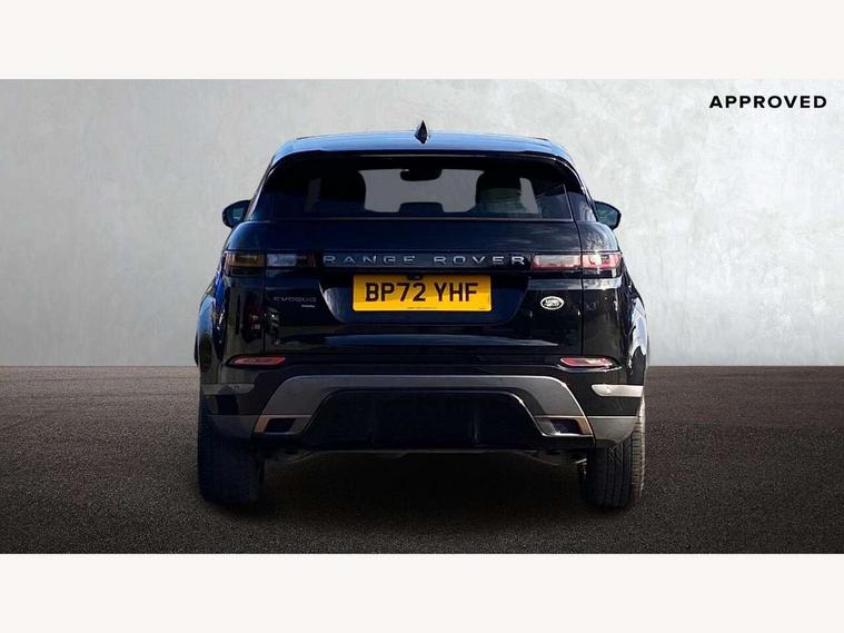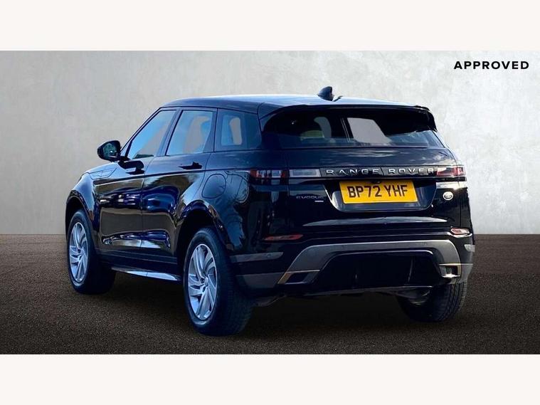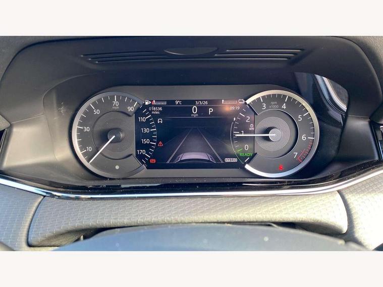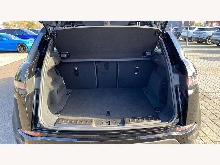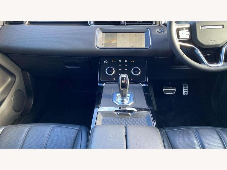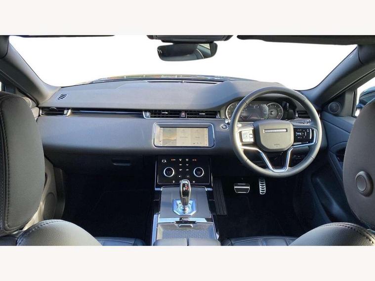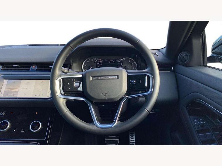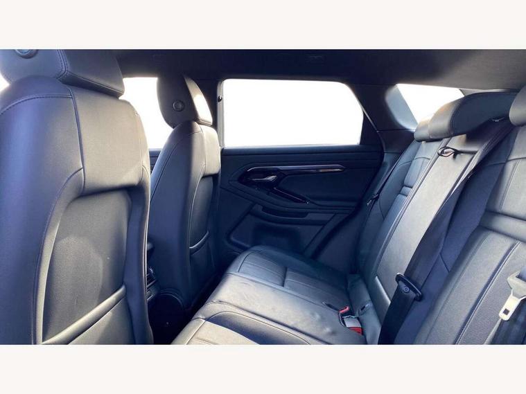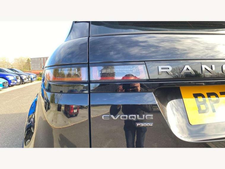 Adaptive cruise control, Android Auto, Apple car play, Bluetooth connectivity, Brake pad wear indicator warning light, Driver condition monitor, eCall emergency system, Electronic power assisted steering (EPAS), Front and rear parking aid, InControl remote, Land Rover InControl apps, Lane keep assist, Pivi pro connected includes upgraded infotainment, connected navigation pro, Nuance speech licence, Push button starter, Traffic sign recognition with adaptive speed limiter, Voice control system, 7 kW onboard charger, All terrain progress control, Electric rear axle drive, Home charging cable, Large fuel tank, Passive suspension, Public charging cable, Terrain Response 2 Auto, Digital Audio Broadcast radio-DAB, Steering wheel mounted controls, Auto headlights, Daytime running lights, Electric windows with one touch open/close and anti trap, Evoque and R-Dynamic badge, Flush deployable exterior door handles, Heated rear window with timer, Heated washer jets, Heated windscreen, P300e badge, Power fold, auto-dimming, heated door mirrors with approach lights and auto dimming driver side, Rain sensing windscreen wipers, Rear fog lights, Rear side wing doors, Rear wiper, Tailgate spoiler, Third brake light, 40:20:40 split folding rear seats with centre headrest and armrest, Ambient interior lighting, Bright metal pedals, Isofix system on outer rear seats, Overhead lighting console, Overhead stowage for sunglasses, Passive front head restraints, Rear air vents, Rear centre headrest, Rear head restraints, Satin chrome gearshift paddles, Single passenger seat, Sunvisors with illuminated vanity mirrors, Twin sliding front centre armrest, 3 rear 3 point seatbelts, Anti-lock braking system (ABS), Customer configurable autolock, DSC - Dynamic Stability Control, Electronic brake force distribution, Electronic parking brake, Electronic traction control, Emergency braking, Front and rear seatbelt reminder, Hill descent control, Hill launch assist, Low traction launch, Power operated child locks, Roll stability control, Six airbags - Driver and passenger airbags/driver knee airbag/front side airbag and curtain airbags, Torque vectoring brake, Tyre pressure monitoring system, Alarm, Immobiliser, Intrusion sensor, Locking wheel nuts,