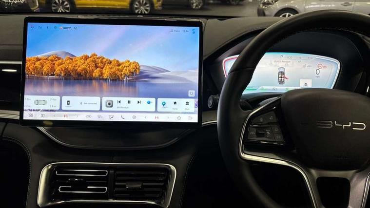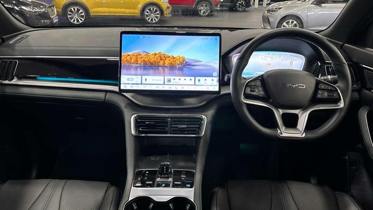 12.3" TFT full LCD instrument panel, 360 camera, Adaptive Cruise Control (ACC) and Intelligent Cruise Control (ICC), Automatic vehicle hold, Blind spot detection, BYD voice control assistant "Hi, BYD", Controller Deceleration Parking (CDP), Drive mode select (Eco, normal, sport, snow), e-Call (emergency call), Electric tailgate release, Emergency Lane Keeping Assist (ELKA), Forward collision warning, Front and rear parking sensors, Front cross traffic alert and front cross traffic brake, Head up Display, Indirect driver fatigue management, Intelligent Speed Limit Control (ISLC), Keyless system entry and start, Lane change assist, Lane Departure Assistant (LDA) and Lane Departure Warning (LDW), Lane departure prevention, PAS, Predictive collision warning, Rear collision warning, Rear cross traffic alert and rear cross traffic brake, Rollover Control System (RMI), Smartphone wireless charging, 2 x 15W, Traffic sign recognition (TSR), Vehicle-to-Load (V2L) function, 11kW on board charger, Mode 3 Type 2 charging cable (3 phase), V2L (Vehicle to load) power strip - Type F, 15.6" Electrically rotatable touchscreen, FM/DAB+ radio, Front USB ports, 1 x 18W Type C, 1 x 60W Type C, Infinity sound system with 10 speakers, Rear USB ports, 2 x 18W Type C, Aluminium roof rails, Auto dimming interior rear view mirror, Auto headlamps (on/off), Dynamic welcome lights, Electric folding and heated door mirrors, Emergency tow hook, Exterior mirror footlights, Follow me home headlights (The headlights turned on in advance and delayed off function), Front windscreen, UV protection, thermal insulation and sound proofing, High beam assist, LED 3rd brake light, LED daytime running lights, LED Headlights, LED taillights, One touch electric front/rear windows with pinch protection, Panoramic sunroof with anti-pinch sensor and electrically adjustable sunshade, Rain sensor windscreen wipers, Rear fog lights, Rear side wing doors, Rear window and rear windscreen with tinted glass, Rear wiper, 12V power outlet, 3 seat bench in 2nd row, 8 way electrically adjustable drivers seat, Adjustable rear headrests, Boot parcel shelf, Driver and passenger sunvisors with illuminated vanity mirrors, Driver seat memory function, Front centre armrest with 2 cupholders, Front LED reading lights, Front passenger seat with 4-way electric adjustment, Front seat footlights, Heat pump, Heated front seats, Heated steering wheel, Integrated headrest in front seats, ISOFIX and i-Size for front passenger and outer rear seats, LED front door lights, Nylon floor mats, PM2.5 air filter, PM2.5 air purification system, Rear air vents, Rear armrest with 2 cupholders, Rear side LED reading lights, Rhythm-reactive multi-colour ambient lighting, Single front passenger seat, Split folding rear seats - 40/60, Vegan leather multifunction steering wheel, Vegan leather upholstery, Ventilated front seats, 3x3 point rear seatbelts, ABS/EBD, Automatic emergency braking system, Brake override system (BOS), Child presence detection, Comfort stop, Door open warning, Driver airbag, Electric parking brake, Force limiting pre-tensioned front seat belts, Front centre airbag, Front passenger airbag, Front passenger airbag deactivation, Front side airbags, Hill descent control, Hill hold control, Hydraulic Brake Assist (HBA), Hydraulic brake boost, Mechanical child safety lock, Rear middle seat force limiting seat belt, Rear seat belt pretensioners, Reflective vest, Side curtain airbags, Traction control system (TCS), Tyre pressure monitoring system (TPMS), Vehicle Dynamics Control System (VDC), Warning triangle, 2 x Smart keys, Anti theft alarm system, Automatic door locking, 19" Bi-colour alloy wheels, Tyre nut covers remover, Tyre repair kit,