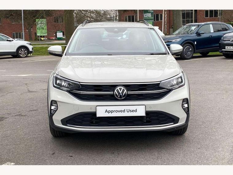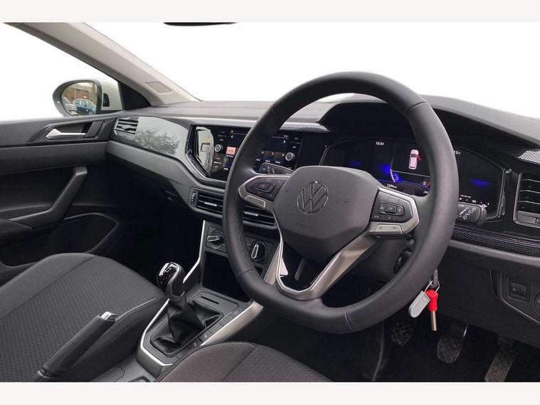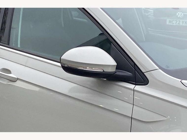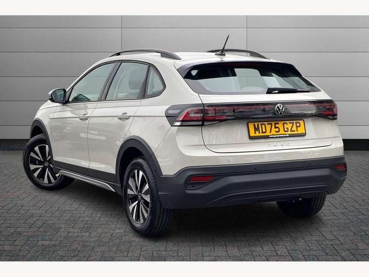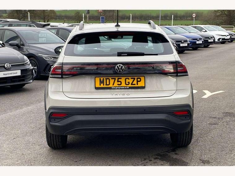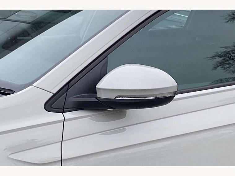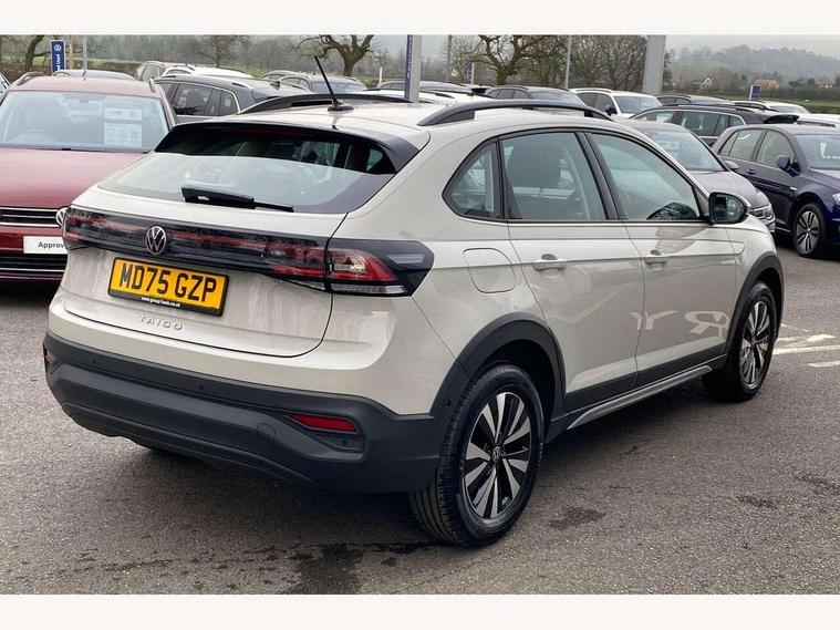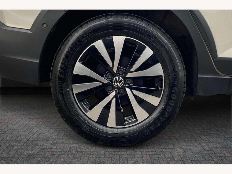 8" Digital cockpit basic display, Advanced driver attention and drowsiness monitor, Dynamic road sign display, e-Call (emergency call), Power Steering, Predictive adaptive cruise control, Travel assist including emergency assist, Washer fluid level indicator, Wireless Charging including Bluetooth, Start-stop system with battery regeneration (recuperation - energy recovery during braking), Digital radio reception (DAB+), WeConnect plus, Ambient lighting with logo projection, Aspherical driver's exterior mirror, Auto headlights, Body coloured bumpers, Body coloured exterior mirror housings and door handles, Electric windows, External USB type C socket and charging sockets, Heat insulating glass windscreen, LED rear combination lamp, LED third brake light, Left convex exterior mirror, Power folding adjustable/heated exterior mirrors and front passenger exterior mirror lowering function, Rear fog light on one side, reversing light on both sides, Rear side wing doors, Rear wash/wipe with intermittent wipe setting, 'Slash/ Austin' Cloth upholstery, 12V socket in centre console, 2 front reading lights, 3 rear head restraints, 3 seat bench in 2nd row, Black carpets, Child seat anchor for child seat system i-Size, 2x top tether and child seat anchor in front on front passenger side, Door and side trim panels in titan black, Driver and front passenger seat height adjustment, Front centre armrest, Handbrake lever handle in leather, Height and reach adjustable steering wheel, Leather trimmed gear knob, Leather wrapped multifunction steering wheel, Luggage compartment floor, Luggage compartment light, Lumbar support for driver's and front passengers seat, Seat covers in titanium black, Single front passenger seat, Split folding backrest with centre armrest and unsplit rear seat bench, Storage compartment under front seats, Sun visors with illuminated vanity mirrors, Chrome Package - Taigo, Drivers assistance pack - Taigo, Light and Sight pack including High beam assist - Taigo, 2 x 3-point seatbelts/outer rear seats with ECE label, 3-point seat belts in front with pretensioner and height adjustment, 3-point seatbelt for centre rear seat, Adaptive driver and front passenger airbags with passenger airbag deactivation function, Driver and front passenger airbags with front passenger airbag de-activation, front side and curtain airbags, Driver and front passenger safety-optimised head restraints, Electronic stability control, Extended and predictive pedestrian/ cyclist protection, Front and rear disc brakes, Front curtain and side airbags with center airbag, Hill start assist, Manual rear child locks, Single tone horn, Tyre pressure loss indicator, Anti-theft alarm system with interior monitoring, backup horn, and towing protection, Lava stone black gloss/matt decorative inserts in dash and front door panels, Low rolling resistance tyres,