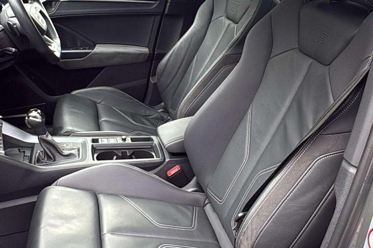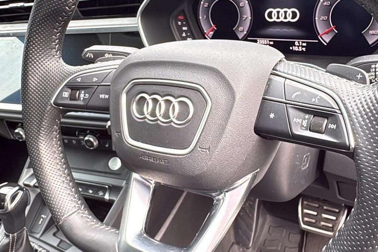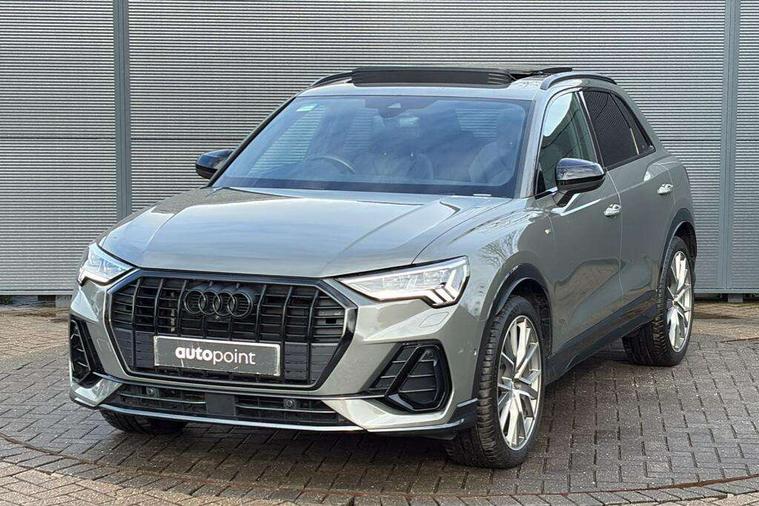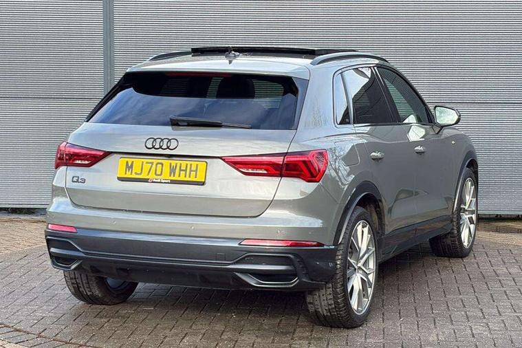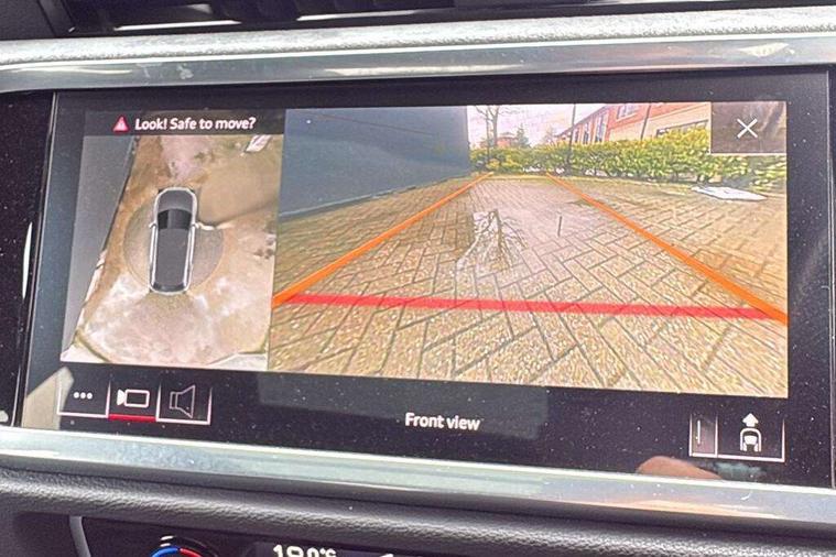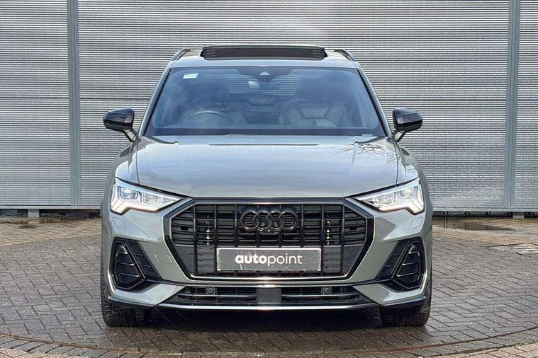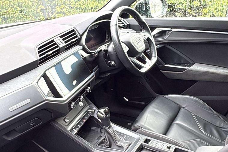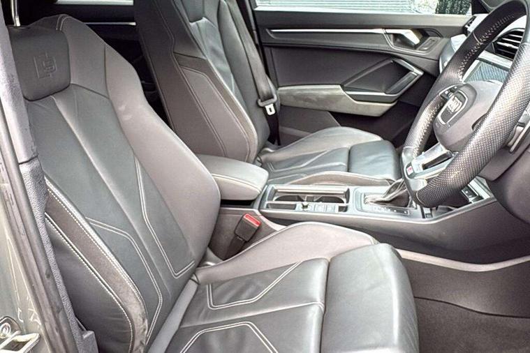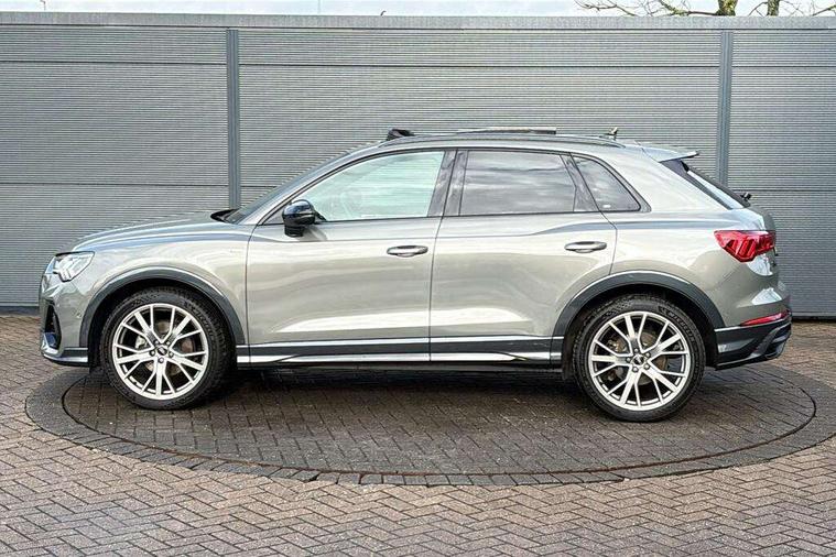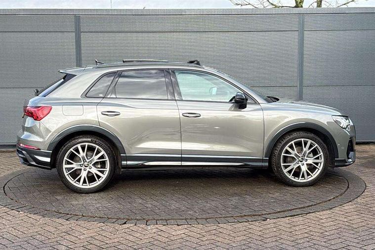360 degree parking camera, Audi connect safety and service (e-call), Audi drive select, Audi lane departure warning, Audi phone box with wireless charging, Audi side assist, Audi virtual cockpit plus, Bluetooth interface, Camera based traffic sign recognition, MMI Navigation Plus with high resolution 10.1 inch touchscreen colour display, Power operated tailgate, Progressive steering, Rear cross traffic alert, Service interval indicator, Smartphone interface includes wireless Apple carplay/Android Auto, Start stop system with recuperation, Voice control system with natural language interaction, 48V Mild hybrid technology, Adaptive suspension with damping control, 1 x USB type C and 1 USB type A charging points, Bang + Olufsen 3D sound system, DAB digital radio module, Acoustic windscreen, Audi Beam uses LEDs to project the Audi Sport logo, Auto dimming door mirrors, Auto dimming frameless rear view mirror, Black roof rails, Electrically folding, adjustable and heated door mirrors with integrated LED side indicators and kerb view function for passenger side, Front and rear electric windows, Front fog lights, Front spoiler blade in matt platinum grey, Headlight washers, High gloss black finish B and C pillars, Matrix LED headlights with LED rear lights and dynamic front and rear indicator, Panoramic opening glass sunroof, Privacy glass dark tinted rear and rear-side windows (from B-pillar backwards), Rain and light sensors, Rear diffuser strip in matt titanium black, S line bumpers in contrasting Manhattan grey, 12V socket in rear centre console, 3 spoke flat bottomed high multi-function leather sport steering wheel with gearshift paddles, 4 way electric lumbar support for driver and front passenger, 40:20:40 folding with manual adjustment for 60:40 forwards/backwards position and backrest angle, Adjustable rear seat bench/backrest with centre armrest and cupholder, Black cloth headlining, Dual zone electronic climate control, Electrically adjustable front seats, Front and rear black floor mats with contrast stitching in rock grey, Front and rear headrests, Front and rear roof module including reading lights, Front centre armrest, Glove compartment lighting, Heated front seats, Height and reach adjustable steering wheel, Illuminated door sill trims with S logo, ISOFIX child seat mounting for front passenger with airbag deactivation and outer rear seat including top tether attachment point for outer rear seats, Luggage compartment light, Perforated leather gearknob, Stainless steel luggage compartment sill finisher, Stainless steel pedals, Black styling pack - Q3, Driver Assistance Pack - Q3, Multi coloured extended ambient interior lighting pack - Q3, Non smoking pack - Q3, 3x3 point rear seatbelts, 6 airbags - Driver, front passenger, curtain and side windows, Audi pre-sense front with pedestrain and cyclist recognition, Electrically operated child locks on rear doors, Electromechanical parking brake, Electronic stabilisation control including ABS, ASR and EDL, Hill descent control, Hill hold assist, Pre sense basic, Seatbelt monitoring, Tyre pressure warning, Warning triangle and first aid kit, Advanced key, Anti theft alarm, Anti theft wheel bolts, Remote central locking, Detail dashboard around MMI touch colour display in glass look, black with surround in aluminium look, Leatherette door armrest, Tool kit, Tyre repair kit,