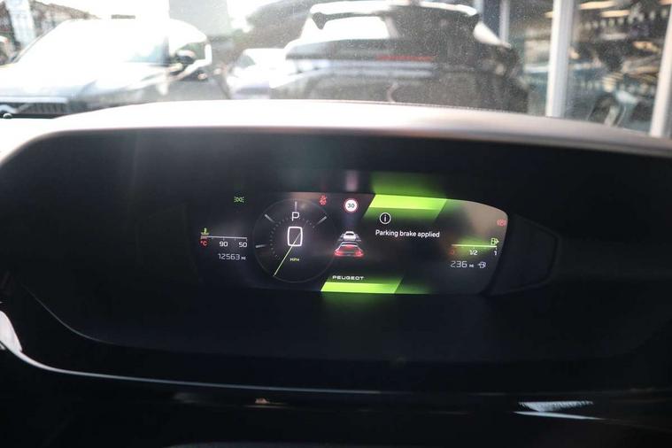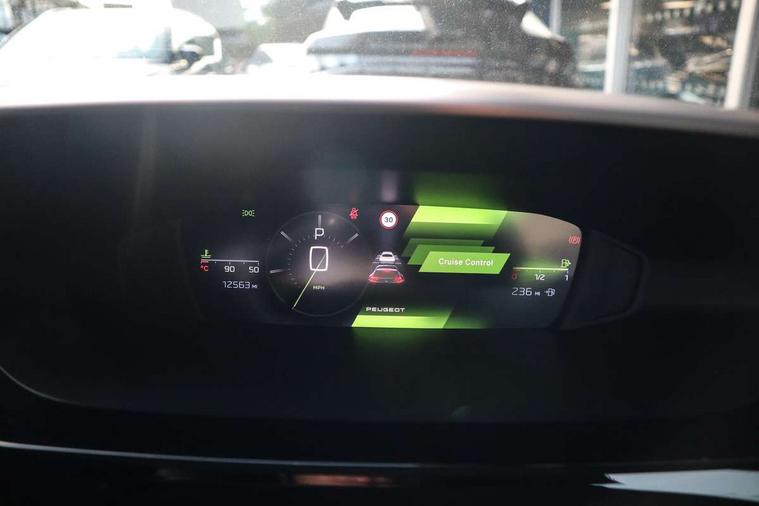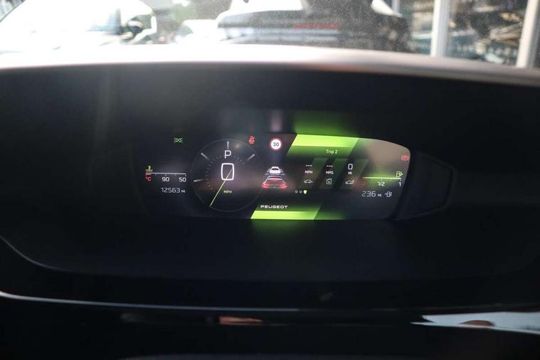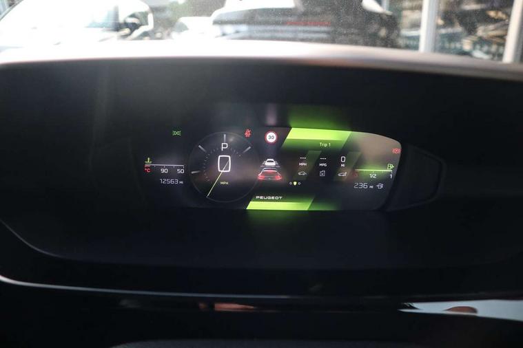 Bluetooth telephone facility, Compact automatic gearbox impulse selector, Driver attention warning, Driver's profile setting, Emergency call service, Extended traffic sign recognition, Exterior temperature indicator with ice warning, Front and rear parking sensors, Intelligent speed adaptation, Lane keep assist, Multi driving mode selector - Eco / Normal / Sport mode selector, Multi function trip computer, PEUGEOT i-Cockpit with 10.0" high definition (HD) capacitive touchscreen, PEUGEOT i-Cockpit with compact steering wheel, PEUGEOT i-Connect Advanced - Over the air updates, PEUGEOT SOS and assistance, Push button start, Speed limit recognition and recommendation, Wifi and voice recognition, Wireless apple car play/android Auto, 2x USB sockets in front, 2x USB sockets in rear, DAB Digital radio, PEUGEOT i-Cockpit with PEUGEOT configurable i-Toggles, 3rd brake light, 408 Model designation badges on front and rear, Acoustic laminated front windows, Acoustic tinted windscreen, Automatic hazard light activation upon heavy brake application, Body colour door handles, Body colour rear spoiler, Dark tinted rear side and tailgate windows, Electric, heated, and power folding door mirrors, Electrochrome rear view mirror, Front and rear electric windows with one touch/anti pinch, Front grille with vertical body colour stamping, Full LED matrix headlights with automatic adjustment, Gloss black finish B pillar, Gloss black rear cluster connecting strip, High beam assist, LED rear number plate lights, LED side indicator lights integrated into door mirrors, Lower body and wheel arch "SUV style" protection, Nera black door mirrors, PEUGEOT shield on front doors, PEUGEOT signature LED front daytime running lights incorporating indicators, Rear bumper grained black, Rear full LED 3D Peugeot new claw effect lights with sequential welcome sequence upon unlocking the vehicle, Rear Hybrid badging, Rear reversing lights, Rear side wing doors, Roof mounted 'fin' style antenna, Smart electric tailgate, Tailgate with heated rear windscreen and wiper blade, 1/3 2/3 'Magic Flat' folding rear seats with controls located in the boot, 2x 12V sockets, 3 seat bench in 2nd row, 4 Grab handles retractable and damped, 8 Colour personalisable ambient lighting, Aluminium door sills and boot sill, Aluminium pedals and footrest, Arch design central console with storage, Central front armrest with storage compartment, Dual Zone automatic air conditioning with AQS 3, Dynamic front seats, Electric power steering with reach and rake adjustable steering column, Front central console with two cup holders, Gloss black waistbelt (window weather strips), Glovebox with LED lighting, Heated steering wheel, High air vent system, Luggage cover, Luxury carpet mats with adamite green stitching, Multifunction full grain leather steering wheel with admite green stitching & GT badging, Piano keys toggle switches to access main functions, Roof lining - Mistral black, Seatbelt unfastened on the move audible and visual alert for front and rear seats, Single front passenger seat, Ski hatch with central rear armrest with cup holder, Steering wheel mounted gearshift paddles, Sunvisor with concealable vanity mirrors with LED lighting, Driver Sport Pack - 408, Visibility pack - 408, 2x Isofix child seat fitting on outer rear seats, 3x3 point rear seat belts, ABS + EBD + EBA, Active safety brake with night function/cyclists/pedestrians, Adaptive driver and front passenger airbags with passenger airbag deactivation function, Advanced emergency braking system (Video - AEB) includes Radar, Automatic post collision braking, Child locks on rear doors, Driver/front passenger side airbags, Electronic parking brake, ESP, Front and outer rear seatbelts with pyrotechnic pretensioners, Front and rear curtain airbags, Front and rear disc brakes, Front optimised safety headrests and rear retractable headrests (x3), height adjustable, Front three point retractable seatbelts with force limiters, Hill start assist, Tyre under inflation monitoring and indirect detection with visual indicator and warning sound, 2x keys, Acoustic vehicle alert system (AVAS), Anti-theft wheel bolts, Automatic door locking when moving off, Deadlocking system, Electronic code immobiliser, Locking wheel nuts, Peugeot open and go system includes keyless entry with proximity locking and unlocking, Thatcham cat. 1 alarm with anti lift sensor, 19" Graphite diamond cut alloy wheels in Onyx black gloss, Alloy wheel 'star' centre cap,