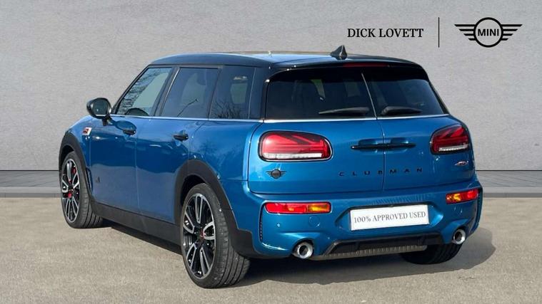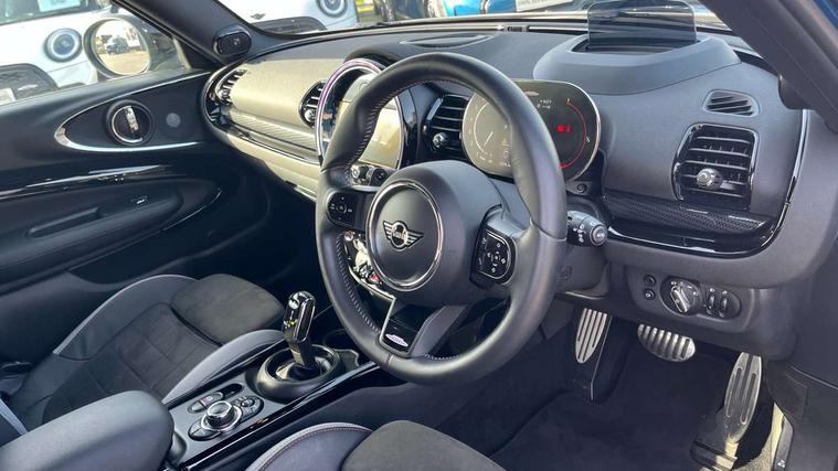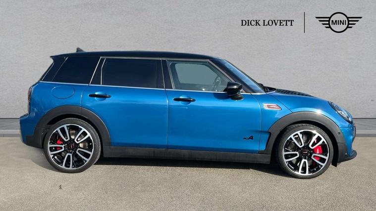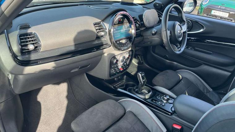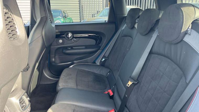 Active Guard incl speed limiting and lane departure functions with auto steering, and front collision warning with brake intervention, Automatic start/stop function with brake energy recuperation, Car sharing preparation, Compatible mobile phone bluetooth with audio streaming, Electro-mechanical speed dependant steering assistance, Instrument cluster, Mini E-call, MINI TeleServices, On board computer, 8 Speed steptronic sport transmission including electronic gear shifter and steering wheel paddles, All Wheel Drive (AWD), Double Vanos system, Fully variable valve control, High precision injection, Performance Control, FM tuner and DAB digital radio, Bonnet scoop, Chrome fuel filler cap, Dynamic brake lights, Electric windows, Heated rear window, Heated windscreen washer jets, John Cooper Works - aerodynamic kit (front and rear apron, spoiler), front and rear sport bumpers and part-painted side sills with door sill finishers, John Cooper Works entry sills, John Cooper Works rear spoiler, LED rear light with union jack design, Metal door sill strips with Cooper S imprint, Model logo on rear doors, Piano black exterior, Radiator grille piano black border with honeycomb structure in matt black with John Cooper Works logo above an individual grille struct in chilli red, Rain sensor with auto headlights, Rear fog lights, Rear side wing doors, Rear window wiper, Rear wing door, Side scuttle with MINI John Cooper Works logo in high gloss black with red border, Split rear doors, Sun/heat protection glass, Third brake light, Twin exhaust tailpipe, Variable front intermittent wipers, White indicator lenses, 12V Accessory socket in centre console, 3 seat bench in 2nd row, 360L luggage compartment capacity, 4 lashing eyes in luggage compartment, 60/40 split folding rear seat, Anthracite headlining with grab handles and clothes hooks, Chrome interior highlights, Cupholders, English handbook, Floor mats, Glove compartment, Height and length steering column adjustment, Interior lighting with 12 basic colours selectable via toggle switch in roof, Isofix rear child seat preparation, John Cooper Works leather gearshift lever and handbrake gaiter, John Cooper Works sports seat with integrated headrest, adjustable thigh support and John Cooper Works logo, LED reading lights, vanity mirror lights, front foot well light and spotlight on front seats, Multifunction steering wheel, Nappa leather steering wheel with JCW badge, Paddle shifts, Rubberised stainless steel pedals, Single front passenger seat, Storage compartments in doors, Sunvisors with vanity mirrors, Toolkit, Comfort plus pack with Park assist - Mini Clubman, Excitement pack - Clubman, Extended interior lighting pack - Mini Clubman, Navigation pack - Clubman, 17" front sport brake with 4 piston fixed calliper, 2 tone horn, 3 point seatbelts on all seats, 6 Airbags - front, side, head and seat belt tensioners, Anti-lock braking system (ABS), Child locks on rear doors, DSC - Dynamic Stability Control, Electronic handbrake, Front and rear disc brakes, Red brake callipers with John Cooper Works logo, Torsen mechanical limited slip differential, Tyre pressure monitoring system, Alarm system with tilt sensor, monitoring doors, bonnet interior and tailgate, Auto drive away locking, Comfort access system, Deadlocking function, Electronic vehicle immobiliser, Locking wheel bolts, Remote central locking, Start/stop toggle with keyless go,