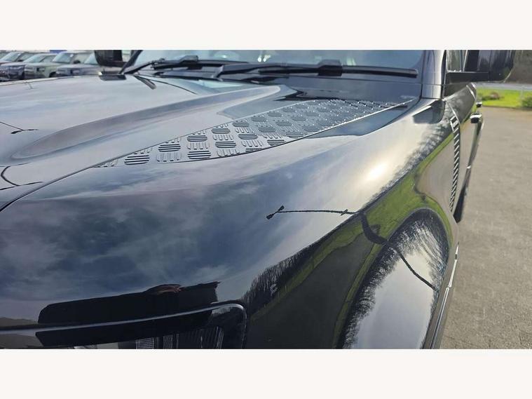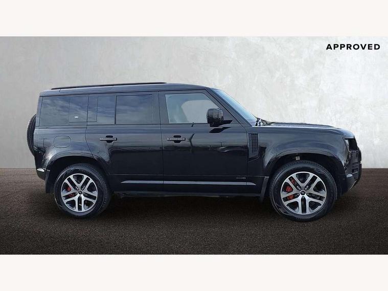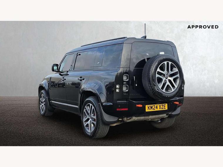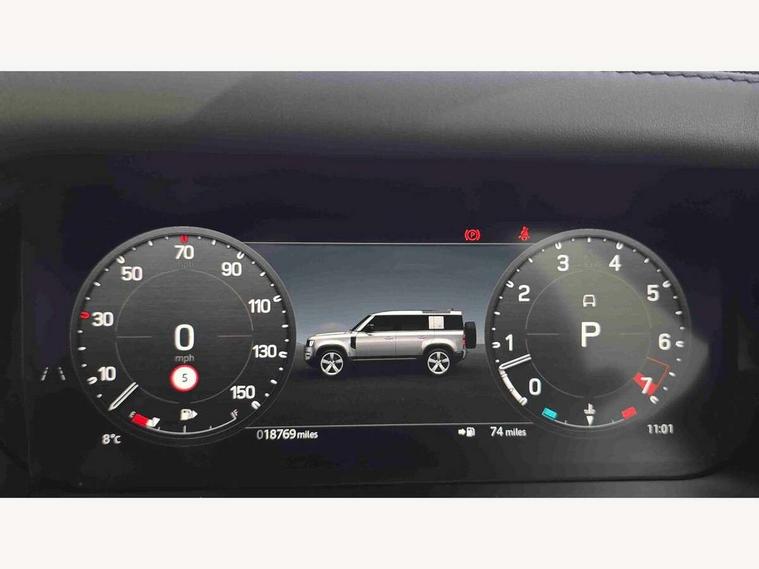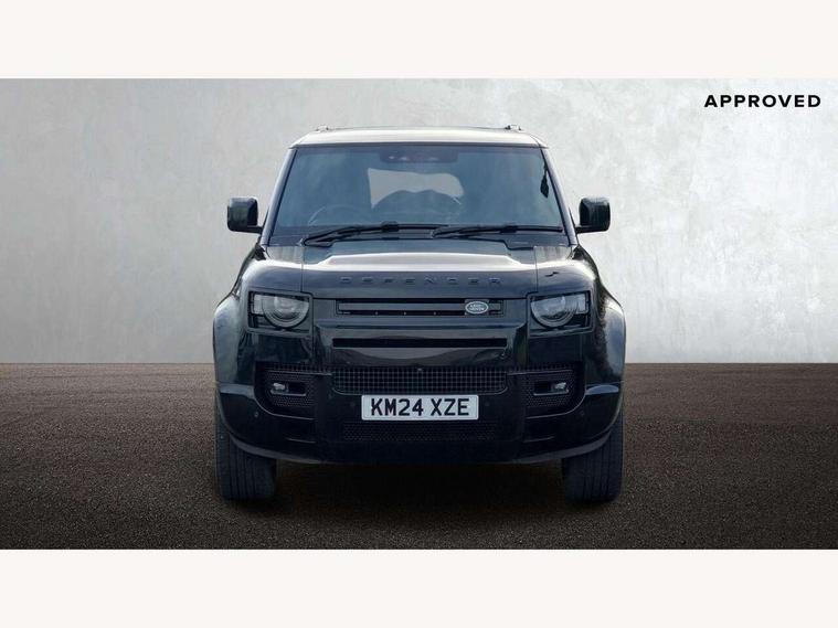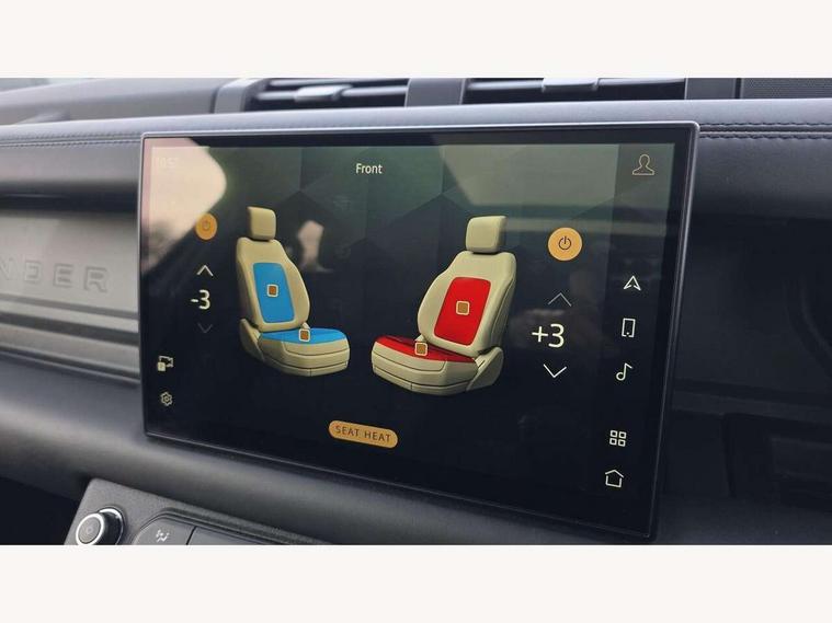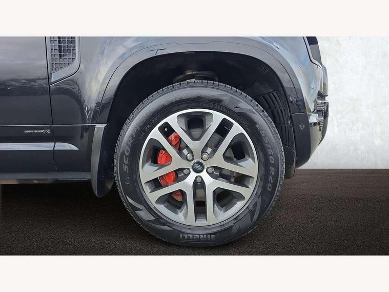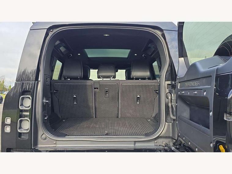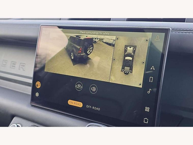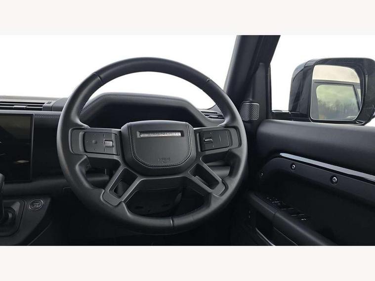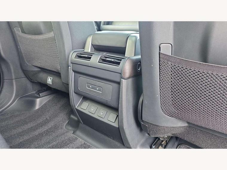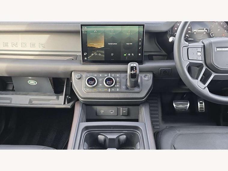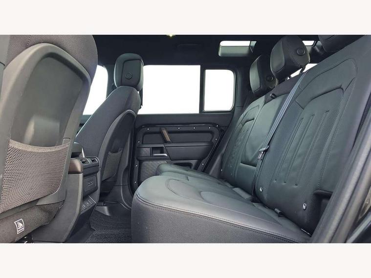 11.4" touchscreen, 360 degree parking aid, 3D Surround Camera with 360 View, 180 Rear View, Front Traffic Detection, Forward Vehicle Guidance, Tow Hitch Assist and clear sight Ground View, Adaptive cruise control, Android Auto, Apple CarPlay, Assisted tailgate with soft close, Blind spot assist, Bluetooth system, Brake pad wear indicator, Clear exit monitor, Connected navigation pro, Driver condition monitor, Electric power assisted steering (EPAS), Head up Display, Interactive driver display, Lane keep assist, Push button start, Rear collision monitor, Rear traffic monitor, Traffic sign recognition with adaptive speed limiter, Trip computer, Wade Sensing, 8 speed automatic transmission, Adaptive dynamics, All terrain progress control, All wheel drive system, Configurable Terrain Response, Electronic active differential with brake torque vectoring, Electronic air suspension, Terrain Response 2, Twin speed transfer box, DAB Radio (Digital Audio Broadcasting), Pivi pro connected, Automatic headlight levelling, Automatic headlights, Centre high mounted stop light, ClearSight interior rear view mirror, Darkened LED tail lights, Electric heated/power fold door mirrors with approach lights and auto dimming driver side, Electric windows with one touch open/close and anti-trap, Follow me home lighting, Front fog lights, Heated rear window with timer, Heated windscreen, Illuminated metal treadplates with brand name script, Matrix LED headlights with signature DRL, Privacy glass, Puddle lights, Rain sensing windscreen wipers, Rear fog lights, Rear side wing doors, Rear wiper, Side hinged tailgate, Trailer stability assist, X badge, 12V power socket in loadspace, 14 way heated and cooled electric adjustable memory front seats with 4 way manual headrests, 3 seat bench in 2nd row, 40:20:40 folding, heated rear seats with centre armrest, Alpine lights, Bright metal pedals, Configurable cabin lighting, Domestic plug socket, Durable rubber cabin flooring, Durable rubber loadspace flooring, Electric reach + rake adjustable steering column, Extended leather upgrade, Footwell lights, Front passenger isofix child seat attachment, Heated steering wheel, Loadspace cover, Loadspace Hook, Multifunction steering wheel, Overhead stowage for sunglasses, Premium cabin lighting, Rear headrests, Rear ISOFIX, Rear reading lights, Single front passenger seat, Standard seat configuration, Storage glovebox, Sunvisors with illuminated vanity mirrors, Online pack with data plan - Defender, 5 x 3 point seatbelts, ABS, Brake hold function, Cornering brake control (CBC), Cross car beam in dark grey powder coat brushed finish, Customer configurable autolock, DSC - Dynamic Stability Control, EBD - Electronic brakeforce distribution, Electric parking brake (EPB), Emergency brake assist, Emergency braking, ESP + traction control, Front airbags with passenger seat occupant detector, HDC - Hill descent control, Hill launch assist, Low traction launch, Power operated child locks, Remote for (e-Call, Optimised assistance call, InControl app, Climate, beep and flash and door), RSC - Roll stability control, Seat belt reminder, TPMS (Tyre pressure monitoring system), Alarm, Immobiliser, Intrusion sensor, Keyless entry, Locking wheel nuts,
