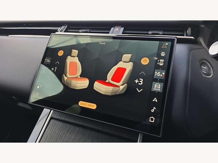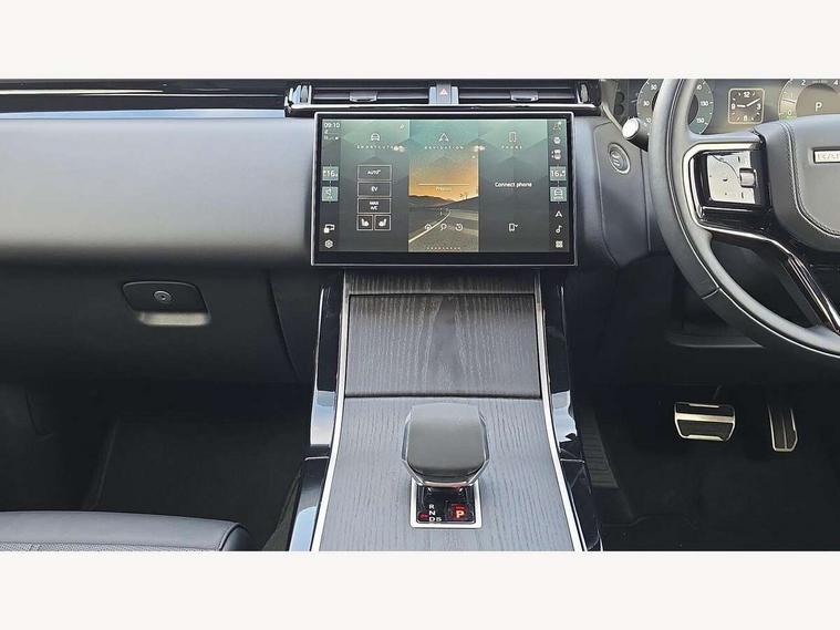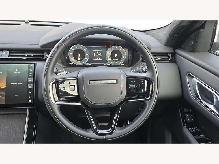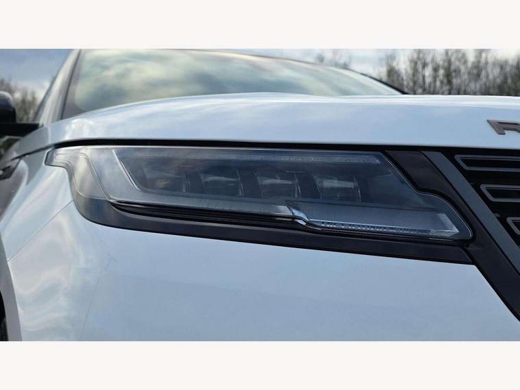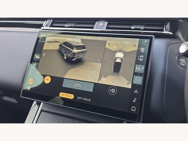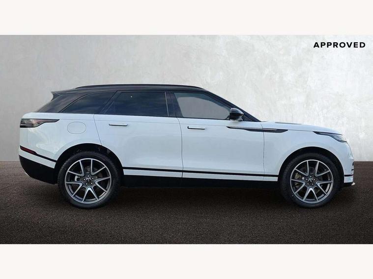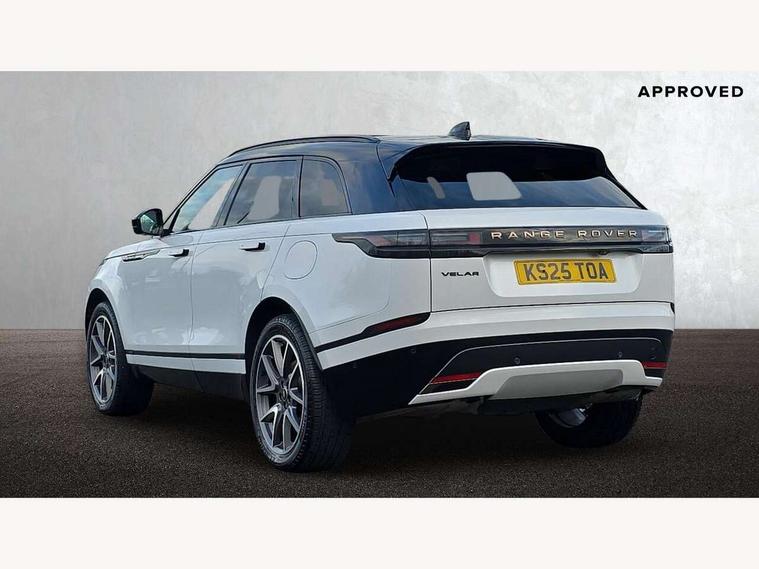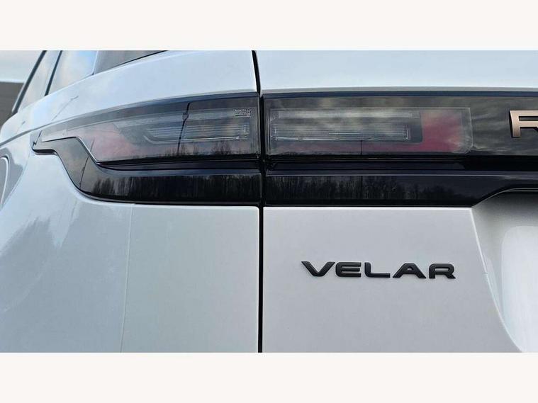 3D surround camera includes forward traffic detection and vehicle guidance, Adaptive cruise control with steering assist, Android Auto, Apple CarPlay, Blind spot assist, Bluetooth connectivity, Brake pad wear indicator warning light, Driver condition monitor, eCall emergency call system, Front and rear parking aid, InControl remote, Land Rover InControl apps, Lane keep assist, Pivi pro with connected navigation, Rear collision monitor, Rear traffic monitor, Service indicator, Speed proportional electronic power assisted steering (EPAS), Traffic sign recognition with adaptive speed limiter, Trip computer, Voice control system, Wade Sensing, Wireless device charging, 7kw on board charger, 8 speed automatic transmission, AC/DC charging, Adaptive dynamics, All terrain progress control, Coil suspension system, Home charging cable, Open differential with torque vectoring by braking, Public charging cable, Single speed transfer box, Terrain Response 2 with dynamic program, DAB radio, Steering wheel mounted controls, 3rd brake light, Acoustic laminated windscreen, Auto dimming interior rear view mirror, Autobiography badge, Automatic headlamp levelling, Automatic headlights, Body coloured bumpers, Boot protection plate, Contrast bonnet in burnished copper & rear lettering, Electric windows with one touch open/close and anti trap, Flush deployable exterior door handles, Follow me home headlights, Heated rear window with timer, Heated washer jets, Heated windscreen, Metal load space scuff plates, Pixel LED headlights with signature DRL, Power fold, auto-dimming, heated door mirrors with memory and approach lights, Rain sensor windscreen wipers, Rear animated directional indicators, Rear fog lights, Rear side wing doors, Rear wash/wipe, Tailgate/boot lid spoiler, Trailer stability assist, Velar badge, 3 seat bench in 2nd row, Ambient lighting, Bright metal pedals, Carpet mats, Driver/passenger sunvisors with illuminated vanity mirrors, Ebony suedecloth headlining, Electrically adjustable steering column, Full extended leather upgrade, Heated steering wheel, Isofix system on outer rear seats, Loadspace cover, Overhead lighting console, Overhead stowage for sunglasses, Passive front headrests, Rear air vents, Rear centre headrest, Single front passenger seat, Twin front cupholders, Twin sliding front centre armrest, Online pack with data plan - Velar, Power socket pack 2 - Velar, 380mm front brakes and 325mm rear brakes, 3x3 point rear seatbelts, Anti-lock braking system (ABS), Cornering brake control, Curtain airbags, Customer configurable autolock, Door side intrusion beams, Driver airbag, DSC - Dynamic Stability Control, Electronic brake force distribution, Electronic parking brake, Electronic traction control, Emergency braking, Front and rear seatbelt reminder, Hill descent control, Hill launch assist, Low traction launch, Passenger airbag, Power operated child locks, Rear airbags, Roll stability control, Side airbags, Tyre pressure monitoring system (TPMS), Global lock and unlock switch on driver door, Immobiliser, Intrusion sensor, Keyless entry, Lock only switch on front passenger door, Locking wheel nuts, Perimetric alarm, Remote central locking, All season tyres,