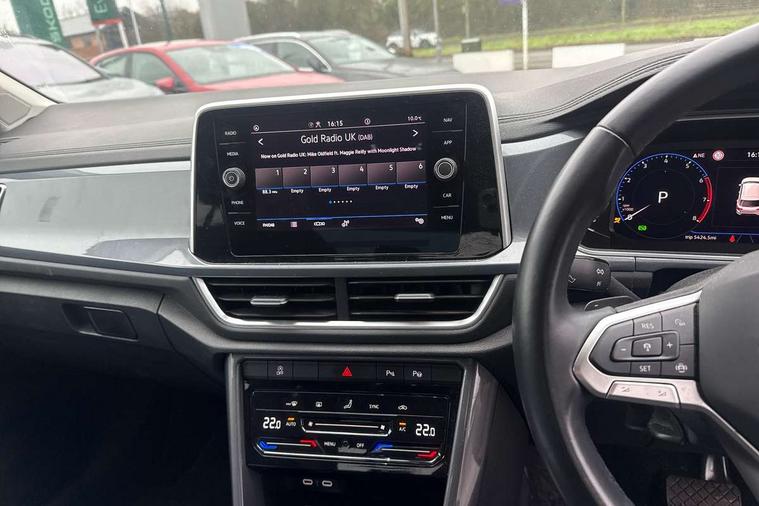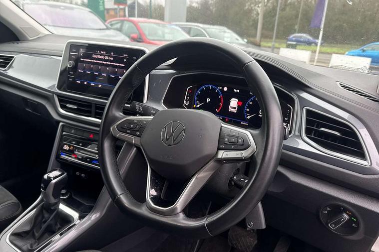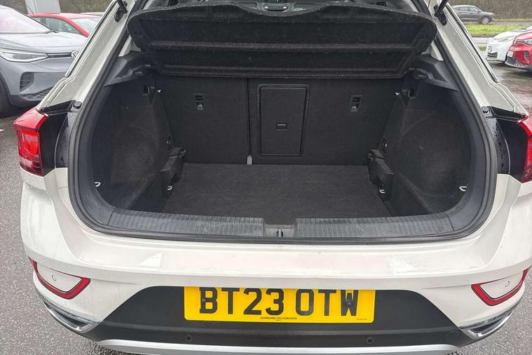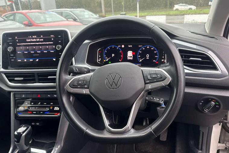 10.25" Digital cockpit pro, Bluetooth mobile phone interface, Driver alert system with fatigue detection, Driver tips and journey analysis, Emergency call service, Lane keeping system Lane Assist, Modified key software - reduce switch off time for key status change to Long no motion, Online services, Park assist including front and rear parking sensors, Service interval indicator, Tailgate/trunk lid release from outside, Think blue trainer driver tips and journey analysis, Warning sound and light for front seatbelts unfastened, Wireless app connect, Battery regeneration during braking, Start/stop function with battery regeneration, Diversity antenna for FM reception, Front and rear 6 speakers, Music playback - MP3, WMA and AAC files, Premium USB cable in choice of either Apple or Android smartphone compatibility, SD card slot, Simultaneous pairing of 2 compatible mobile devices, Title and cover art display, We Connect and We Connect Plus functionality, 3rd brake light, Auto dimming interior rear view mirror, Automatic hazard lights activation under emergency braking, Automatic headlight control with LED separate daytime running lights with coming/leaving home function, Body colour sports bumpers with silver metallic underbody fascia, Dynamic headlight range control with self adjusting whilst driving, Extended roof spoiler, Exterior mirrors aspherical on driver side, convex on front passenger side, External USB type C socket and charging sockets, Front windscreen wiper with intermittent wipe and 4 position delay, Heated rear window, LED Plus headlamps, LED rear combination lamps, LED rear number plate lights, LED tail lamp rear comination lamps, Light mode for poor weather, rain, fog or snow, Power windows with comfort operation and circuit breaker, Rain sensor, Rear exhaust tailpipe, Rear fog light on one side and reversing lights on both sides, Rear side wing doors, Rear wash/wipe with intermittent wipe setting, Remote electrically foldable door mirrors, puddle lights and reverse activated passenger's door mirror, 12V power socket in centre console, 3 rear head restraints, 3 seat bench in 2nd row, 4 load lashing points in luggage compartment, Air care climatronic air conditoning system with active combination filter and 2-zone temperature control, Chrome plated radiator grille inserts, air vent surrounds and light switch surrounds, Door and side trim panel with leatherette insert, Drawer under drivers seat, Front + rear carpet mats, Front centre armrest, Front comfort sports seats, Front cupholders x 2, Front footwell illumination, Instrument lighting, white adjustable panel illumination, Interior ambient lighting and surround lighting, Interior light delay, Isofix child seat preparation, Leather gearshift handle, LED interior light with switch off delay/dimmer and 2 front/rear LED reading lights, Load-through provision with cup holder when folded down ('Unsplit rear seat bench, split folding backrest, with centre armrest), Luggage compartment lighting, Non-folding front passenger seat backrest, Single front passenger seat, Storage compartment in left and right luggage area, Storage compartment in rear doors, Storage compartments in driver and front passenger doors, Sunvisors with illuminated vanity mirrors, Variable boot floor, height adjustable and removable, Driver assistance pack without proactive passenger protection - T-Roc, 3 point height adj front seatbelts + pretensioners, 3 point seatbelts in outer rear with ECE label, ABS, Child locks on rear doors, Driver and front passenger airbag with front passenger airbag deactivation, Driver and front passenger safety-optimised head restraints, Drivers seatbelt reminder, Electronic parking brake, Electronic Stability Control (ESC) inc EDL (Electronic Differential Lock) and ASR (Traction Control), Front and rear passengers curtain airbag system including front side airbags, Front assist with city emergency braking and pedestrian monitoring, Front seat side impact airbags, Predictive pedestrian protection, Rear disc brakes, Single tone horn, Tyre pressure loss indicator, Volkswagen roadside assistance, Alarm with interior protection, Anti-theft alarm system with interior monitoring, backup horn, and towing protection, Remote central locking with SAFELOCK, radio remote control with 2 remote control folding keys, Trims for alloy wheels,