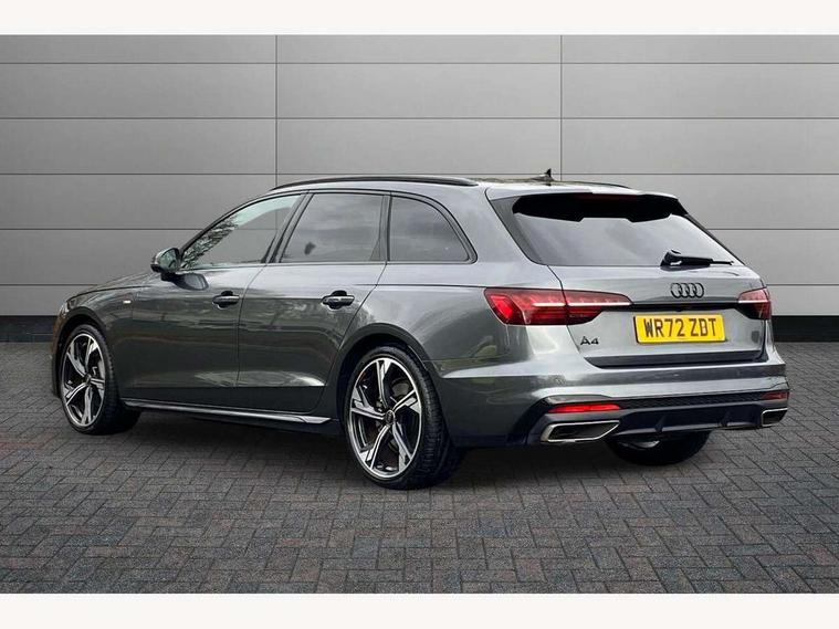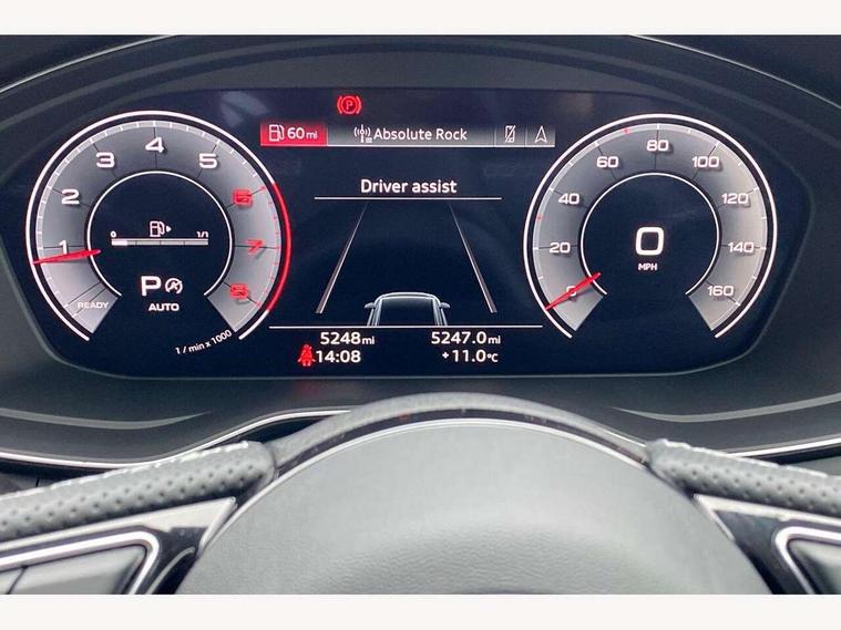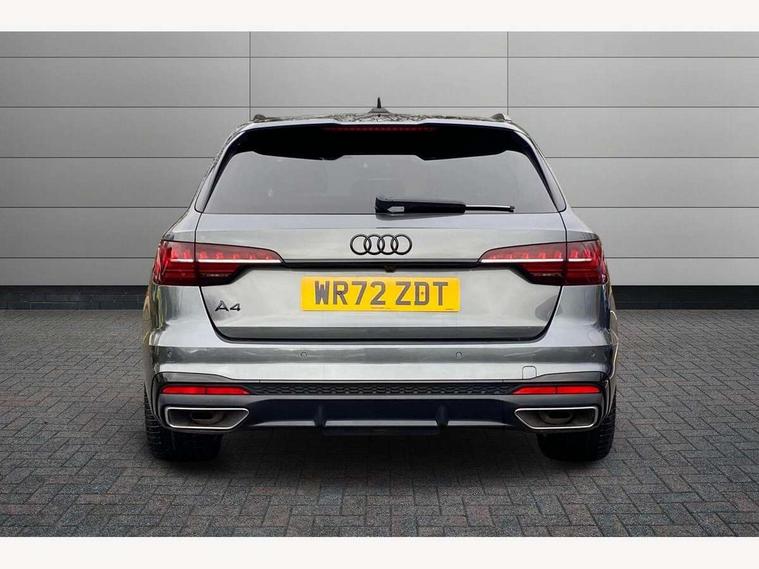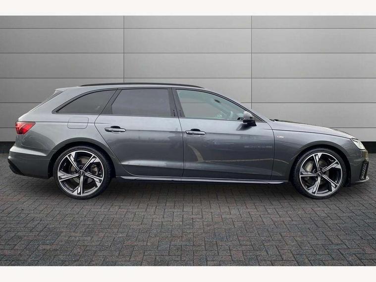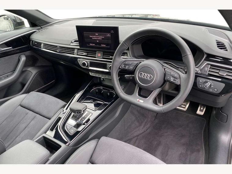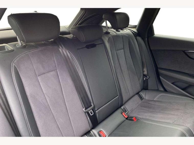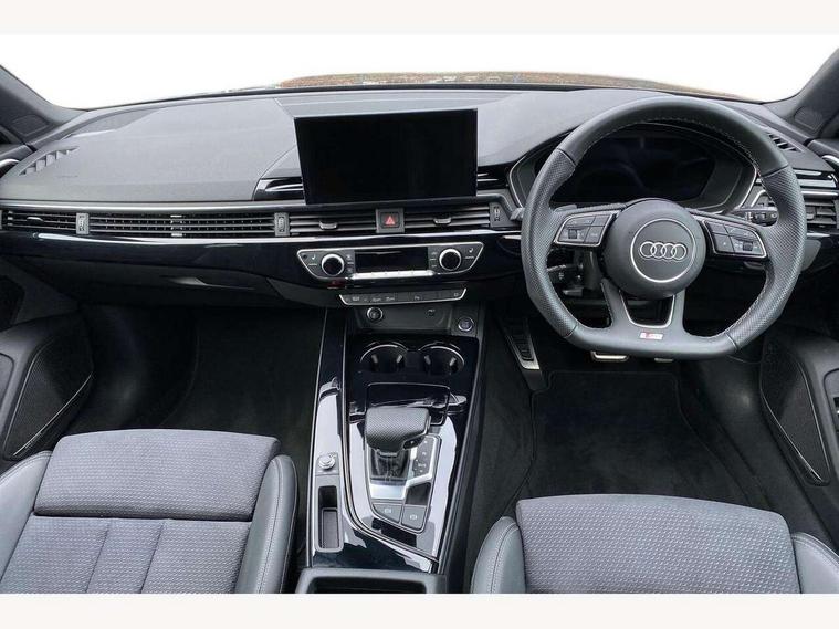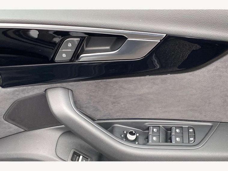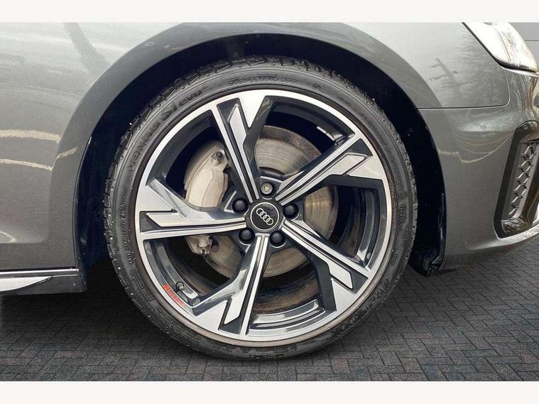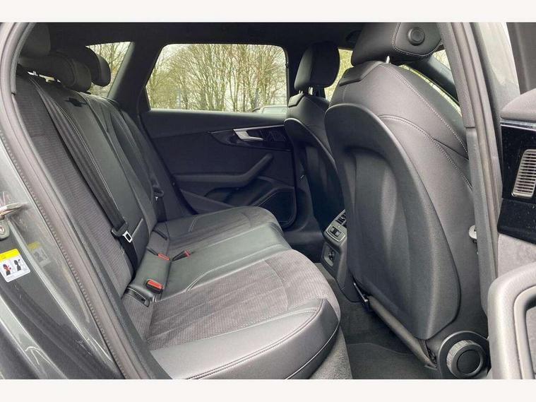 Audi connect safety and service (e-call), Audi connect with Amazon Alexa Integration, Audi drive select, Audi smartphone interface, Audi virtual cockpit, Automatic start-stop system with coasting functionality and efficiency programme, Bluetooth interface, Electromechanical power steering, Email, calendar and text messages displayed via MMI, MMI Navigation plus with MMI touch includes 10.1" high resolution colour MMI display, 3D map, Power operated tailgate, Voice control system, 54 litre fuel tank, Sports suspension lowered by 23mm, 2 USB charging ports, 8 passive loudspeakers, DAB digital radio reception, Audi beam uses LEDs to project the audi logo onto the ground as you exit your A4, Auto dimming rear view mirror, Black Audi rings and black badging (model name in black badging, no engine badging), Body colour door handles, Body colour front spoiler lip, Body colour side sill trim, Electrically folding auto dimming/adjustable/heated door mirrors with LED side indicators and kerb view function for passenger side, Exhaust tailpipes in high gloss black, Front and rear bumpers with side skirts, Grained matt black side air inlets with matt aluminium silver inlay, High beam assistant, High gloss black B pillar trims and triangular rear door trim, LED headlights with LED rear lights + dynamic rear indicators + headlight adjustment and high beam, turning light + LED daytime running lights, LED third brake light, Privacy glass, Rain and light sensors, Rear diffuser in matt titanium black with trim strip in matt aluminium silver, Rear side wing doors, Rear wiper, RS4 rear spoiler in body colour, S Line badges on the front wings, S Line roof edge spoiler, Variable intermittent front wash/wipe, Windscreen with acoustic glazing, 4 way electric lumbar support for driver and front passenger, 40/20/40 split folding 3 rear seat bench in 3 parts with rear centre armrest, Black cloth headlining, Black perforated leather gearknob, Contrast stitching on seats, steering wheel and gear lever gaiter, Deluxe 3 zone electronic climate control, Door sill trims with aluminium inlay, Electric load area cover, Front and rear head restraints, Front centre armrest, Heated front seats, Illuminated door sill trims with S logo, ISOFIX child seat mounting and top tether, Manual seat adjustment, Single front passenger seat, Stainless steel pedals and foot rest, Black styling pack - A4 Avant, LED Interior light pack - A4/S4, 3 rear seatbelts, 6 airbags - Driver, front passenger, curtain and side windows, Electronic Stabilisation Control (ESC) including ABS, ASR and EDL, Hill hold assist, Multi collision brake assist, Pop-up bonnet for pedestrian protection, Pre sense city, Rear door child safety locks, Seatbelt monitoring, Warning triangle and first aid kit, Anti theft alarm, Anti theft wheel bolts, Central locking, Keyless Go, Piano black finish inlay, 19" 5 arm flag design Audi sport diamond cut alloy wheels in gloss anthracite black, Tool kit, Tyre repair kit,