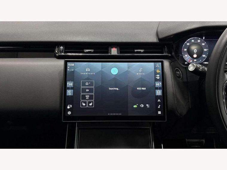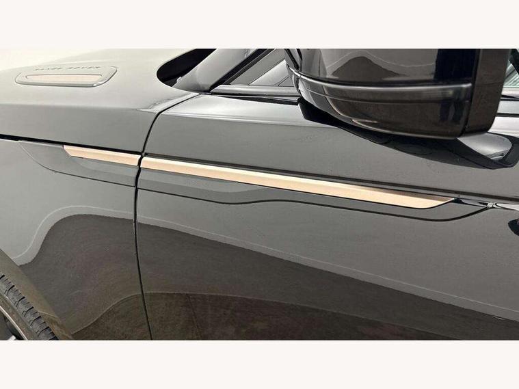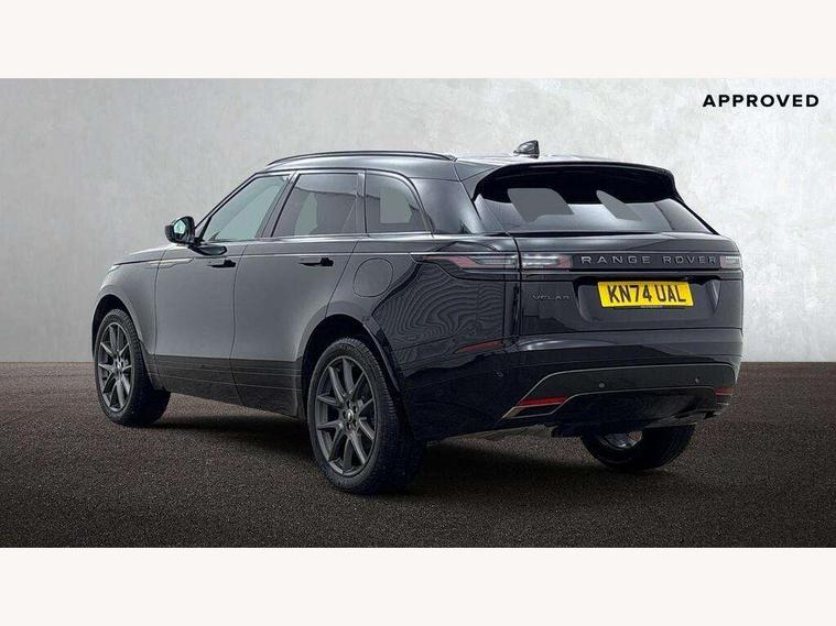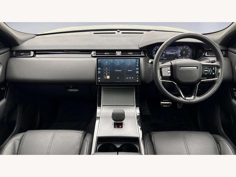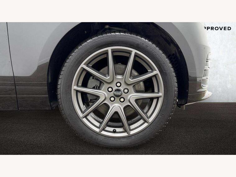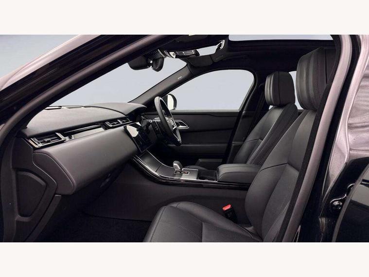 Adaptive cruise control with steering assist, Android Auto, Apple CarPlay, Blind spot assist, Bluetooth connectivity, Brake pad wear indicator warning light, Driver condition monitor, eCall emergency call system, Front and rear parking aid, InControl remote, Land Rover InControl apps, Lane keep assist, Pivi pro with connected navigation, Rear collision monitor, Rear traffic monitor, Service indicator, Speed proportional electronic power assisted steering (EPAS), Traffic sign recognition with adaptive speed limiter, Trip computer, Voice control system, Wireless device charging, 7kw on board charger, 8 speed automatic transmission, AC/DC charging, Adaptive dynamics, All terrain progress control, Coil suspension system, Home charging cable, Open differential with torque vectoring by braking, Public charging cable, Single speed transfer box, DAB radio, Steering wheel mounted controls, 3rd brake light, Acoustic laminated windscreen, Auto dimming interior rear view mirror, Automatic headlamp levelling, Automatic headlights, Body coloured bumpers, Boot protection plate, Electric windows with one touch open/close and anti trap, Flush deployable exterior door handles, Follow me home headlights, Heated rear window with timer, Heated washer jets, Heated windscreen, Metal front tread plates, Metal load space scuff plates, Pixel LED headlights with signature DRL, Power fold, auto-dimming, heated door mirrors with memory and approach lights, Rain sensor windscreen wipers, Rear animated directional indicators, Rear fog lights, Rear side wing doors, Rear wash/wipe, Tailgate/boot lid spoiler, Trailer stability assist, Velar badge, 3 seat bench in 2nd row, Ambient lighting, Bright metal pedals, Carpet mats, Driver/passenger sunvisors with illuminated vanity mirrors, Ebony morzine headlining, Electrically adjustable steering column, Extended leather upgrade, Heated steering wheel, Isofix system on outer rear seats, Loadspace cover, Overhead lighting console, Overhead stowage for sunglasses, Passive front headrests, Rear air vents, Rear centre headrest, Single front passenger seat, Twin front cupholders, Twin sliding front centre armrest, Online pack with data plan - Velar, Power socket pack 2 - Velar, 380mm front brakes and 325mm rear brakes, 3x3 point rear seatbelts, Anti-lock braking system (ABS), Cornering brake control, Curtain airbags, Customer configurable autolock, Door side intrusion beams, Driver airbag, DSC - Dynamic Stability Control, Electronic brake force distribution, Electronic parking brake, Electronic traction control, Emergency braking, Front and rear seatbelt reminder, Hill descent control, Hill launch assist, Low traction launch, Passenger airbag, Power operated child locks, Rear airbags, Roll stability control, Side airbags, Tyre pressure monitoring system (TPMS), Unpainted brake calipers, Global lock and unlock switch on driver door, Immobiliser, Intrusion sensor, Keyless entry, Lock only switch on front passenger door, Locking wheel nuts, Perimetric alarm, Remote central locking, All season tyres,