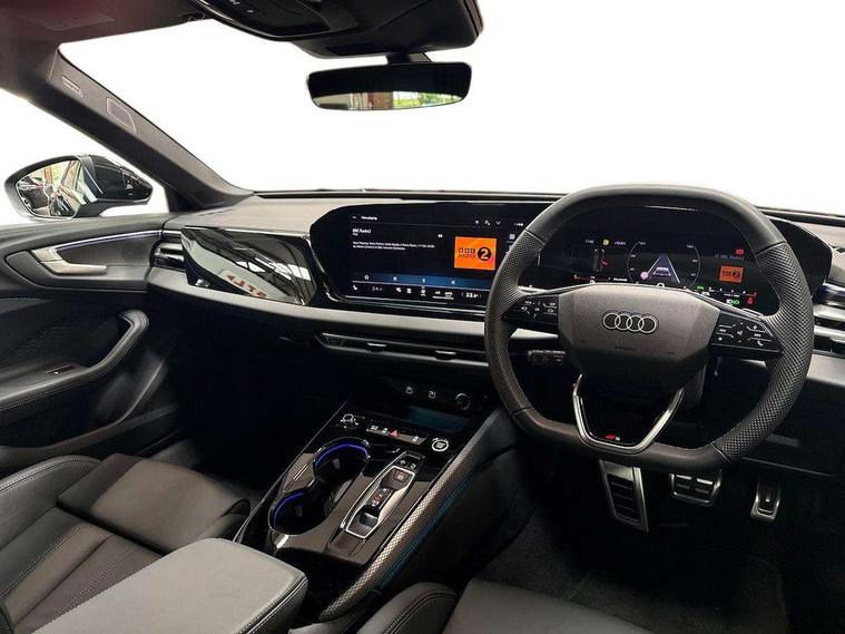 Adaptive cruise control, Advanced driver attention and fatigue montior, Audi application store, Audi assistant, Audi connect emergency call and service, Audi drive select, Audi virtual cockpit plus with 11.9" OLED colour display, Automatic start/stop system with coasting functionality, Camera based traffic sign recognition, Intersection assist, Lane departure warning, MMI navigation plus with high resolution 14.5" OLED touchscreen colour display, Park assist plus, Parking system plus with 360 display, Progressive steering with servotronic, Rear view camera, Smartphone interface, Swerve assist and turn assist, Traffic sign based speed limiter, Sports suspension lowered by 20mm, 2 USB-C ports in both the front and rear, Audi sound system impressive sound with 8 loudspeakers including centre speaker and subwoofer, 6-channel amplifier with a total output of 180 watts, DAB digital radio reception, Smartphone compartment with wireless charging, Aluminium roof rails, Aluminium window trims, Auto dimming rear view mirror, Body colour door mirrors, Door mirrors - electrically adjustable, heated, folding and auto dimming on both sides, Front and rear electric windows, Front door sill trims with aluminium inlays, illuminated with 'S' logo, High beam assist, LED headlights Plus incl. digital daytime running lights, turning light, all-weather light, motorway light, manouevring light and intersection light, LED rear lights pro incl. dynamic rear indicators and illuminated light strip with animated coming and leaving home function, LED third brake light, Privacy glass, Rear and side windows with heat insulating glass, Rear side wing doors, Rear wash/wipe, S Line badges on the front wings, S line bumpers, radiator grille and diffuser in phantom black and diffuser insert in matt anthracite, White rhombus logo projection light in exterior mirrors, Windscreen with acoustic glazing, 3 rear headrests, 3 seat rear bench, 3 spoke leather steering wheel with multi-function buttons with touch control, flattened on top and bottom, with S badging and contrast stitching, 3-zone automatic climate control, 40:20:40 split folding rear seat bench with centre armrest and cup holders, Comfort front centre armrest, Front and rear floor mats, Front seats with manual adjustment for position and 4-way electric lumbar support, Front sport seats with integrated headrest and S embossed logo, Headlining in black cloth, Heated front seats, i-Size child seat mounting on the front passenger side and outer rear seats, i-Size and top tether on the outer rear seats, Luggage compartment lid, electrically opening and closing, Manual steering column height and depth adjustment, Single front passenger seat, Stainless steel pedals and footrest, Steering wheel grips in perforated leather and shift paddles, Ambient lighting package plus - A5, 3x3 point rear seat belts, Driver airbag, Electric child safety locks, First aid kit with warning triangle and vests, Front emergency brake assist, Front passenger airbag, Front passenger airbag deactivation, Front side airbags with head airbag system and front interaction airbag, Hill hold assist, Seat belt monitoring with rear seat occupant reminder, Tyre pressure loss indicator, Anti theft alarm, Anti-theft wheel bolts, Keyless Go, Accent surfaces and control buttons in gloss black, Black dashboard with contrast stitching, Inlays in matt brushed aluminium with linear embossing, anthracite, Softwrap in leatherette with contrast stitching, Upper and lower interior elements in leatherette, Tyre repair kit,