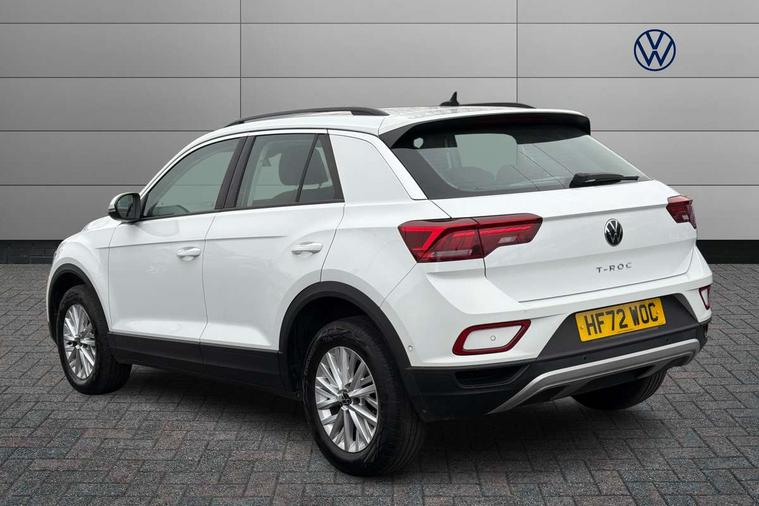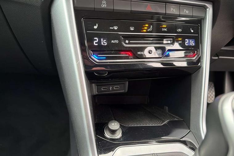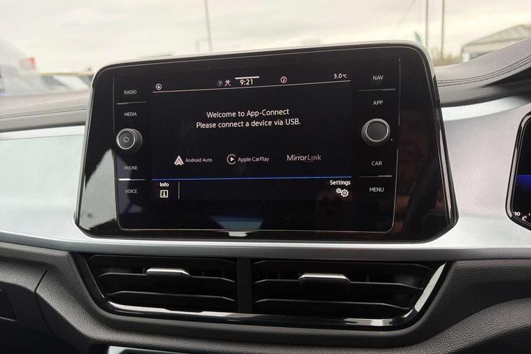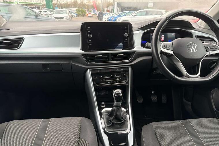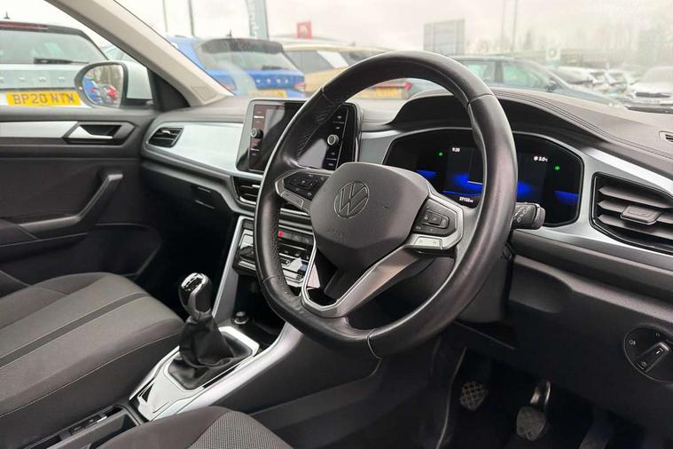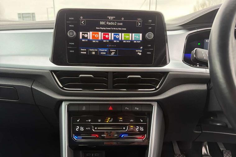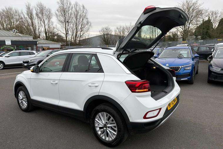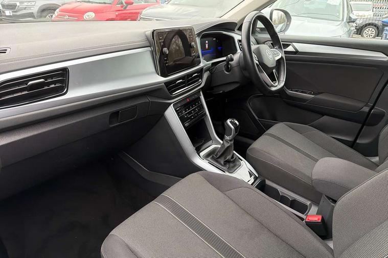Bluetooth mobile phone interface, Driver alert system with fatigue detection, Driver tips and journey analysis, Emergency call service, Lane keeping system Lane Assist, Modified key software - reduce switch off time for key status change to Long no motion, Online services, Park assist including front and rear parking sensors, Power assisted speed sensitive steering, Service interval indicator, Tailgate/trunk lid release from outside, Think blue trainer driver tips and journey analysis, Warning sound and light for front seatbelts unfastened, Wireless app connect, Battery regeneration during braking, Front shock absorption, Rear shock absorption chassis with increased ride height, Start/stop function with battery regeneration, DAB Digital radio, Diversity antenna for FM reception, Front and rear 6 speakers, Music playback - MP3, WMA and AAC files, Premium USB cable in choice of either Apple or Android smartphone compatibility, SD card slot, Simultaneous pairing of 2 compatible mobile devices, Title and cover art display, We Connect and We Connect Plus functionality, 3rd brake light, Auto dimming interior rear view mirror, Automatic hazard lights activation under emergency braking, Automatic headlight control with LED separate daytime running lights with coming/leaving home function, Black roof rails, Body coloured bumpers and radiator grille with chrome trim and front fog lamps with chrome bezel, Body coloured exterior mirror housings and door handles, Extended roof spoiler, Exterior mirrors aspherical on driver side, convex on front passenger side, External USB type C socket and charging sockets, Front windscreen wiper with intermittent wipe and 4 position delay, Heated rear window, LED Headlights, LED rear combination lamps, LED rear number plate lights, LED tail lamp rear comination lamps, Power windows with comfort operation and circuit breaker, Rain sensor, Rear exhaust tailpipe, Rear fog light on one side and reversing lights on both sides, Rear side wing doors, Rear wash/wipe with intermittent wipe setting, Remote electrically foldable door mirrors, puddle lights and reverse activated passenger's door mirror, 12V power socket in centre console, 3 rear head restraints, 3 seat bench in 2nd row, 4 load lashing points in luggage compartment, Air care climatronic air conditoning system with active combination filter and 2-zone temperature control, Ambient lighting with mirror logo projection, Cloth upholstery, Door and side trim panel in cloth, Drawer under drivers seat, Driver/front passenger seat height adjustment, Front centre armrest, Front comfort sports seats, Front cupholders x 2, Front reading light, Instrument lighting, white adjustable panel illumination, Interior light delay, Isofix child seat preparation, Leather gearshift handle, Load-through provision with cup holder when folded down ('Unsplit rear seat bench, split folding backrest, with centre armrest), Luggage compartment lighting, Lumbar support for driver's and front passengers seat, Non-folding front passenger seat backrest, Single front passenger seat, Storage compartment in left and right luggage area, Storage compartment in rear doors, Storage compartments in driver and front passenger doors, Sunvisors with illuminated vanity mirrors, Variable boot floor, height adjustable and removable, Driver assistance pack without proactive passenger protection - T-Roc, 3 point height adj front seatbelts + pretensioners, 3 point seatbelts in outer rear with ECE label, ABS, Child locks on rear doors, Driver and front passenger airbag with front passenger airbag deactivation, Driver and front passenger safety-optimised head restraints, Drivers seatbelt reminder, Electronic parking brake, Electronic Stability Control (ESC) inc EDL (Electronic Differential Lock) and ASR (Traction Control), Front and rear passengers curtain airbag system including front side airbags, Front assist with city emergency braking and pedestrian monitoring, Front disc brakes, Front seat side impact airbags, Hill start assist, Predictive pedestrian protection, Rear disc brakes, Single tone horn, Tyre pressure loss indicator, Volkswagen roadside assistance, Alarm with interior protection, Anti-theft alarm system with interior monitoring, backup horn, and towing protection, Remote central locking with SAFELOCK, radio remote control with 2 remote control folding keys, Pewter matt decorative inserts for intrument panel, centre console and door panels at the front, Trims for alloy wheels,