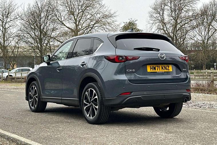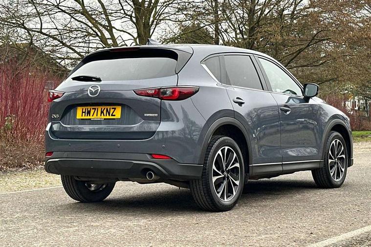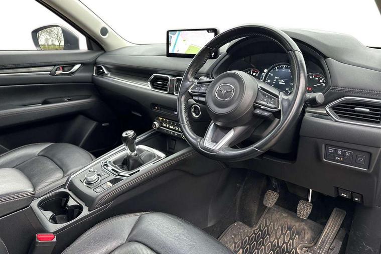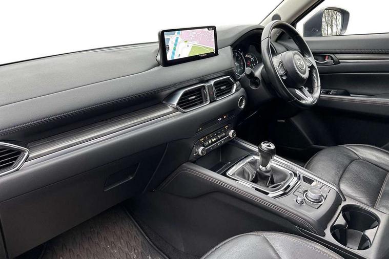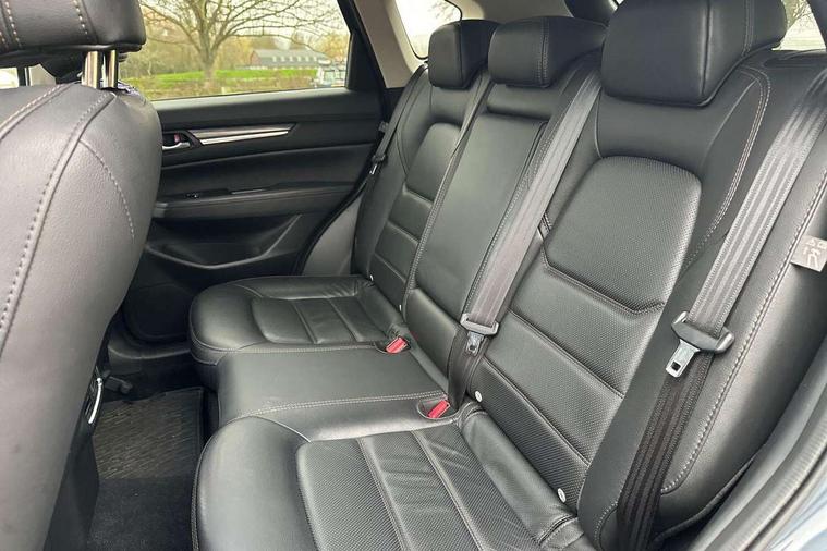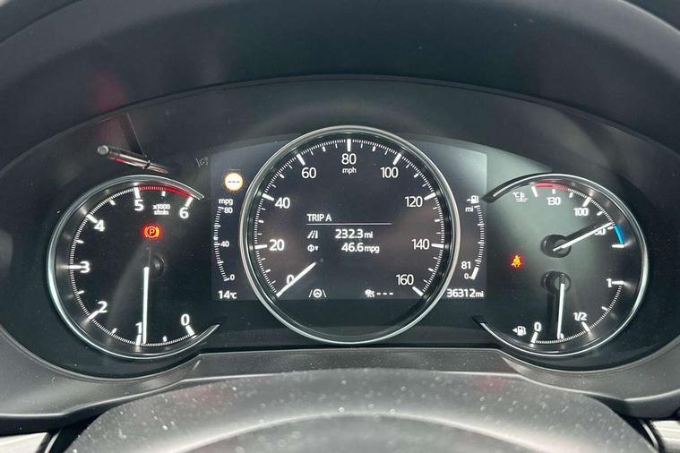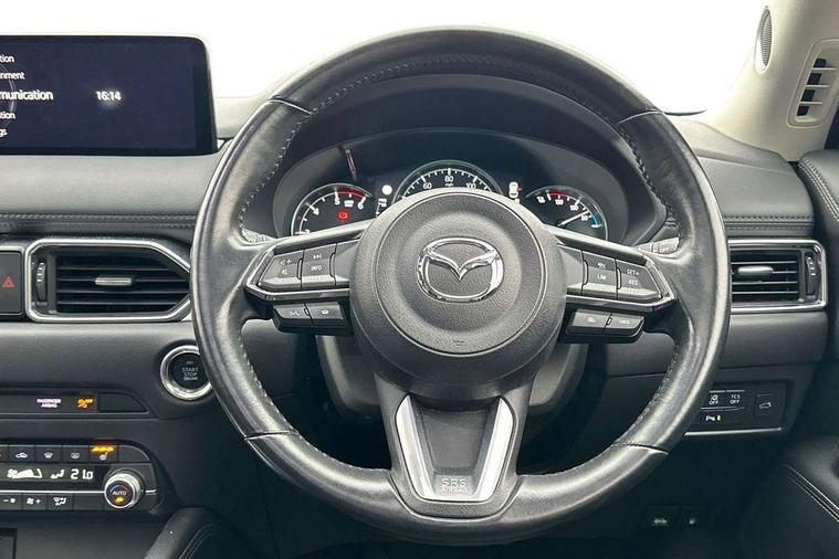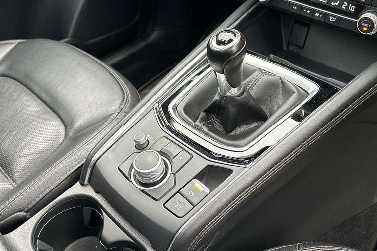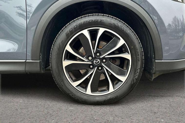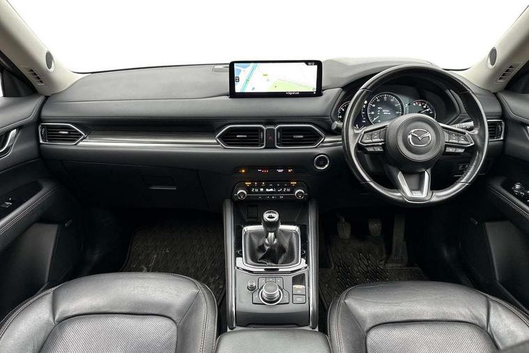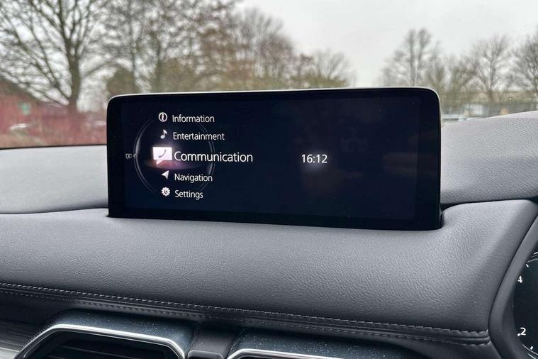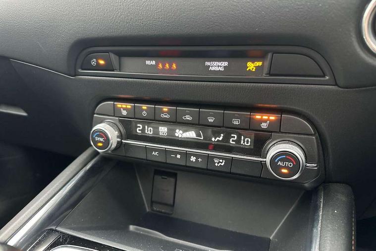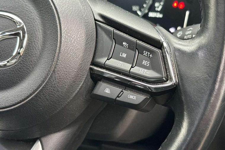 10.25" display with Mazda Connect infotainment, 7" colour TFT display, Apple car play/Android Auto, Blind spot monitoring with rear cross traffic alert, Bluetooth connectivity with voice control, Collision prevention assist, Connected services, Electric power steering, Emergency stop signalling system, Engine start/stop button, Forward collision warning, Front and rear parking sensors, Integrated navigation system, Intelligent speed assist, Lane departure warning system, Lane keep assist, Power liftgate, Qi wireless phone charging, Radar cruise control, Reversing camera, Service indicator, Trip computer, Windscreen projected colour active driving display (HUD) with memory, i-stop, 2 USB sockets in rear, 2x USB sockets in front, AM/FM radio, Bluetooth audio streaming, Bose premium sound system with 10 speakers, DAB Digital radio, Multimedia Commander including separate volume dial, Steering wheel mounted audio controls, Adaptive front lighting system, Auto dimming rear view mirror, Automatic headlights, Black inlay dashboard panel, Body colour door mirrors, Body colour roof spoiler, Body coloured front and rear black lower bumper mouldings, Bright finish signature wing, Coming/leaving home lighting function, Door mirror integrated indicators, Dusk sensitive headlamps, Electric front/rear windows with one touch auto up/down, Front grille in gloss black finish, Gloss black B and C pillars garnish, High beam assist, Intermittent rear wash/wipe, LED auto levelling, LED daytime running lights, LED front fog lights, LED Headlights, LED third brake light, Power folding and heated door mirrors, Power tilt/slide sunroof, Privacy glass (rear side windows only), Rain sensing front wipers, Rear side wing doors, Satin black side mouldings, Scuff plates, Shark fin antenna, Signature LED rear combination lights, Single chrome tailpipes, Vinyl with wood grain metal inlay door trim panel, Windscreen wiper de-icer, 12v electrical power outlet, 3 seat bench in 2nd row, 3 stage heated front seats, 40:20:40 Karakuri fold-flat seat system, 6 way electric adjustable passenger seat, 8 way electric driver seat with lumbar support + memory, Cargo room flat floor board with waterproof undertray, Driver seat power slide, recline and height adjustment, Driver, Front passenger and two rear grab handles with coat hooks, Driver/passenger front seatback pockets, Driver/passenger sunvisors + illuminated vanity mirrors (drivers with ticket holder), Dual zone climate control, Folding centre armrest with 2 cup holders, Front and rear door pockets, Front centre storage with two cupholders, Front passenger seat power slide, recline and height adjustment, Gear shift indicator, Heated steering wheel, Humidity sensor, Illuminated glovebox, Interior dome light with integral spotlight, ISOFIX child seat anchorage points attached on outer rear seats, Karakuri tonneau cover, Leather upholstery, Leather wrapped steering wheel and gear knob, Light roof lining, Luggage compartment LED lighting, Luggage compartment power outlet, Rear air vents, Rear headrests, Rear seat recline, Roof mounted sunglasses holder, Single front passenger seat, Three height adjustable head restraints, Tilt/height adjustable steering wheel, White interior LED illumination lighting, 3 point front seatbelts with pre-tensioners, 3 rear 3 point seatbelts, ABS, Advanced Smart City Brake Support - SCBS, Child locks on rear doors, Driver and front passenger side airbags, DSTC-Dynamic Stability and Traction Control, Dual front airbags, Electronic brake force distribution, Electronic parking brake with auto hold, ESP, Front and rear curtain airbags, Front passenger airbag deactivation, G-Vectoring control, Hill hold assist, Seatbelt reminder front and rear, Single stage passenger airbags, Smart brake support with forward obstruction warning, Tyre pressure monitoring system, Automatic door locking when moving off, Deadlock, Immobiliser, Power door locks, Remote central locking, Smart keyless entry, Thatcham Cat.1 alarm, 19" diamond cut black alloy wheels, Tyre repair kit,