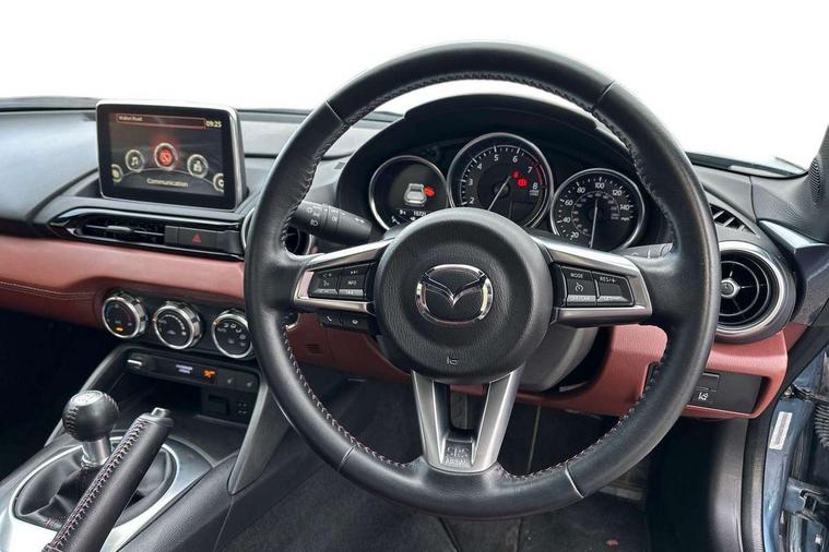 7" touchscreen with multimedia commander, Cruise control + speed limiter, Engine start/stop button, Integrated bluetooth with steering wheel mounted controls, Lane departure warning system, PAS, Rear parking sensor, Remote boot release, Satellite navigation system, Trip computer, Water temperature gauge, Limited slip differential, Sports suspension, 9 speakers, Auxiliary input socket, Bose Premium Audio system, DAB Digital radio, MP3 compatible radio/single CD player, USB/iPod connection, Adaptive front lighting system, Auto dimming rear view mirror, Automatic headlamp levelling, Body colour bumpers, Body coloured door mirrors, Coming/leaving home lighting function, Dual exhaust pipes, Dusk sensitive headlamps, Electric front windows/one touch facility, Electrically heated door mirrors, Electrically operated body colour retractable hard top, LED daytime running lights, Rain sensing front wipers, 12V socket, Body coloured inner door trims, Centre console storage box, Climate control air conditioning, Cupholders, Front centre armrest, Front head restraints, Heated front seats, Height adjustable front seats, ISOFIX front passenger seat child seat compliance, Leather gear knob, Leather handbrake lever, Leather steering wheel, Lockable rear storage box, Sports seats, Strut brace, Tilt/slide reclining front seats, Windblocker, 3 point ELR front seatbelts with pretensioners, ABS+Electronic Brake force Distribution, DSTC-Dynamic Stability and Traction Control, Dual front airbags, Fasten seatbelt reminder, Hill hold assist, Manual passenger airbag deactivation function, Side airbags, Tyre pressure monitor, Deadlock, Remote central door locking, Smart keyless entry, Thatcham category 1 alarm + immobiliser, Black vinyl leather dashboard panel, 17" Bright alloy wheels, Tyre puncture repair kit,