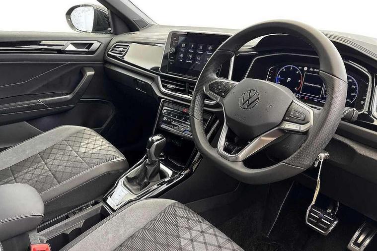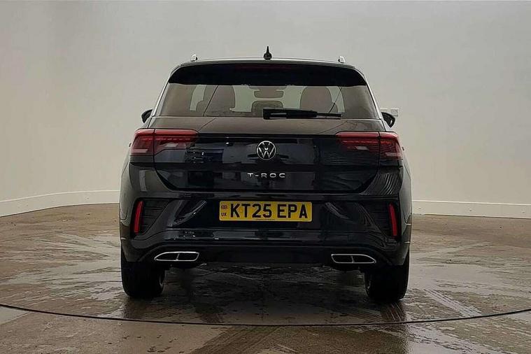 10.25" Digital cockpit pro, Advanced driver attention and drowsiness monitor, Dynamic road sign display, Emergency call service, Lane keeping system Lane Assist, Mobile phone interface, Modified key software - reduce switch off time for key status change to Long no motion, Online services, Park assist including front and rear parking sensors, Service interval indicator, Tailgate/trunk lid release from outside, Think blue trainer driver tips and journey analysis, Warning sound and light for front seatbelts unfastened, Wireless app connect, Battery regeneration during braking, Start/stop function with battery regeneration, DAB Digital radio, Diversity antenna for FM reception, Front and rear 6 speakers, Music playback - MP3, WMA and AAC files, Premium USB cable in choice of either Apple or Android smartphone compatibility, SD card slot, Simultaneous pairing of 2 compatible mobile devices, Title and cover art display, We Connect and We Connect Plus functionality, Auto dimming interior rear view mirror, Automatic hazard lights activation under emergency braking, Automatic headlight control with LED separate daytime running lights with coming/leaving home function, Body coloured exterior mirror housings and door handles, Electrically adjustable and heated door mirrors, Extended roof spoiler, Exterior mirrors aspherical on driver side, convex on front passenger side, External USB type C socket and charging sockets, Front windscreen wiper with intermittent wipe and 4 position delay, Heated rear window, LED 3rd brake light, LED rear combination lamps, LED rear number plate lights, Power windows with comfort operation and circuit breaker, Privacy glass for rear side windows and rear window, R-Line design body coloured bumpers, Rain sensor, Rear exhaust tailpipe, Rear fog light on one side and reversing lights on both sides, Rear side wing doors, Rear wash/wipe with intermittent wipe setting, Remote electrically foldable door mirrors, puddle lights and reverse activated passenger's door mirror, 12V power socket in centre console, 3 rear head restraints, 3 seat bench in 2nd row, 4 load lashing points in luggage compartment, Air care climatronic air conditoning system with active combination filter and 2-zone temperature control, Black roof lining, Chrome plated decorative trims, Chrome plated radiator grille inserts, air vent surrounds and light switch surrounds, Door and side trim panel with leatherette insert, Front + rear carpet mats, Front centre armrest, Front cupholders x 2, Front footwell illumination, Front reading light, Front scuff plates with R Line logo, Front seat back storage pockets, Glove compartment door with light, Instrument lighting, white adjustable panel illumination, Interior ambient lighting and surround lighting, Interior light delay, Isofix child seat preparation, Leather gearshift handle, Load-through provision with cup holder when folded down ('Unsplit rear seat bench, split folding backrest, with centre armrest), Luggage compartment lighting, Single front passenger seat, Stainless steel pedals, Storage compartment in left and right luggage area, Storage compartment in rear doors, Storage compartments in driver and front passenger doors, Sunvisors with illuminated vanity mirrors, Variable boot floor, height adjustable and removable, Driver assistance pack without proactive passenger protection - T-Roc, 3 point height adj front seatbelts + pretensioners, 3 point seatbelts in outer rear with ECE label, ABS, Child locks on rear doors, City emergency braking and pedestrian monitoring, Driver and front passenger airbag with front passenger airbag deactivation, Driver and front passenger safety-optimised head restraints, Drivers seatbelt reminder, Electronic parking brake, Electronic Stability Control (ESC) inc EDL (Electronic Differential Lock) and ASR (Traction Control), Front and rear passengers curtain airbag system including front side airbags, Hill start assist, Predictive pedestrian protection, Rear disc brakes, Two tone horn, Tyre pressure loss indicator, Volkswagen roadside assistance, Piano black decorative inserts in dashboard and front door trim panels, Trims for alloy wheels,