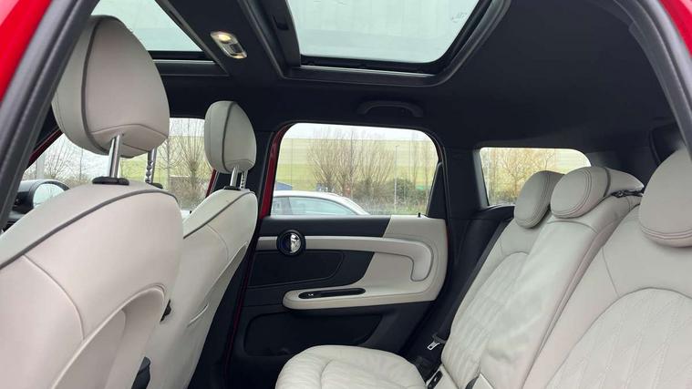 Active Guard incl speed limiting and lane departure functions with auto steering, and front collision warning with brake intervention, Automatic start/stop function with brake energy recuperation, Compatible mobile phone bluetooth with audio streaming, Cruise control with brake assist, eDrive button, Electro-mechanical speed dependant steering assistance, Instrument cluster, Mini E-call, On board computer, Rear parking distance control, 36L fuel tank, Automatic transmission, Charging flap on front left lower A-panel, Double Vanos system, Fully variable valve control, High precision injection, Home charging cable, Performance Control, Public charging cable, FM tuner and DAB digital radio, 3rd brake light, Bonnet scoop, Chrome fuel filler cap, Day time driving lights, Dynamic brake lights, Electric windows, Heated rear window, Heated windscreen washer jets, LED fog lights, LED Headlights, Metal door sill strips with Cooper S imprint, MINI yours exterior badge in C-Pillar, driver and passenger side, Model logo, Model logo on Tailgate, Rain sensor with auto headlights, Rear fog lights, Rear side wing doors, Rear window wiper, Side scuttle panel with integrated indicator, Split rear doors, Sun/heat protection glass, White indicator lenses, 12V socket in centre console, 3 seat bench in 2nd row, 360L luggage compartment capacity, 4 lashing eyes in luggage compartment, 40:20:40 split folding rear seats, Anthracite headlining with grab handles and clothes hooks, Chrome interior highlights, Colour line - Carbon black, Cupholders, English handbook, Front headrests, Glove compartment, Height and length steering column adjustment, Interior lighting with 12 basic colours selectable via toggle switch in roof, Isofix rear child seat preparation, Leather gearshift lever and handbrake gaiters, LED reading lights, vanity mirror lights, front foot well light and spotlight on front seats, Manual air conditioning, MINI Yours fine walk nappa leather steering wheel with contrast stitching in silver and MINI Yours badge, MINI Yours floor mats, Multifunction steering wheel, Rear headrests, Single front passenger seat, Storage compartments in doors, Sunvisors with vanity mirrors, Excitement pack - Countryman, Navigation pack - Countryman, 2 tone horn, 3 point seatbelts on all seats, 6 Airbags - front, side, head and seat belt tensioners, Acoustic pedestrian protection, Anti-lock braking system (ABS), DSC - Dynamic Stability Control, Electronic handbrake, Front and rear disc brakes, Hill start assist, Manual rear child locks, Tyre pressure monitoring system, Alarm system with tilt sensor, monitoring doors, bonnet interior and tailgate, Auto drive away locking, Deadlocking function, Electronic vehicle immobiliser, Locking wheel bolts, Start/stop toggle with keyless go, Tool kit,