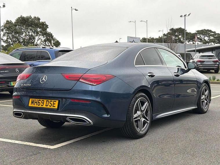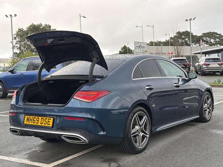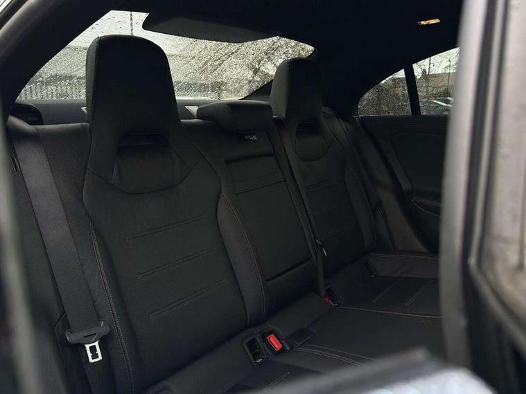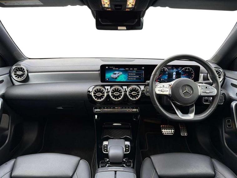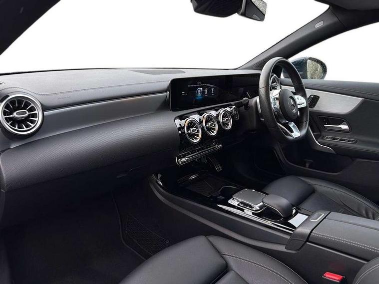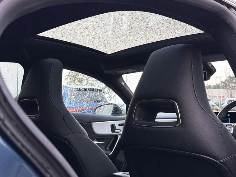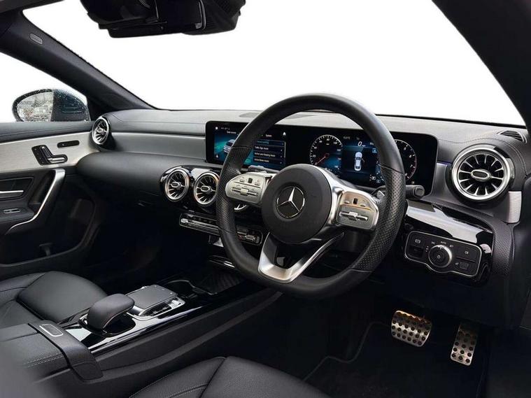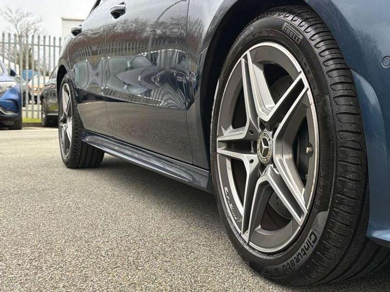 10.25 inch display instrument, 10.25 inch touchscreen media display, Attention assist, Direct steer system with speed sensitive power steering, Dual bluetooth interfaces, DYNAMIC SELECT with a choice of driving modes (ECO, Comfort, Sport, Sport+ and Individual), ECO start/stop function, Fluid level warning indicator for fuel, oil, coolant and washer fluid, Hard-disk navigation, Hey Mercedes Voice activation, Instrument cluster, Lamp failure indicator, MBUX augmented reality for navigation, Mercedes connect me, Outside temperature gauge, Pre-installation for car sharing, Preinstallation for Mercedes Benz link, Radio aerial integrated into front and rear windshields, Service indicator (ASSYST), Smartphone integration with Apple CarPlay and Android auto, Traffic sign assist, Trip computer in multifunction display with current consumption indicator, Wireless charging, 7G-DCT 7 speed automatic transmission, Lowered comfort suspension, Rear axle multi-link, DAB digital radio tuner, MBUX multimedia system with DAB digital radio and touchpad including satellite navigation, Mercedes Benz sound system (225w) includes mid-range sound system, USB (type C) port in front stowage compartment, USB (type C) ports (2) in stowage compartment, Active radiator shutters open for cooling air and close when not needed to improve aerodynamics and fuel efficiency, Adaptive brake lights, AMG body styling front apron, rear apron and side skirts, Beltline strips and weather strip in chrome, Body colour bodystyling side skirt, Body colour bumpers, Body colour door handles with chrome inserts, Diamond radiator grille pins in chrome with silver painted louvres and chrome insert, Electric panoramic sliding sunroof, Electric windows, Electrically adjustable and heated door mirrors with integrated LED indicators, Exhaust system - Twin trapezoidal tailpipes in polished stainless steel, Headlamp assist automatic headlamp activation, Heated glass rear windscreen + timer control, High level LED third brake light, Integrated LED daytime running lights, LED tail lamp, Multibeam LED headlamps with adaptive highbeam assist plus, Privacy glass, Rain sensing windscreen wipers with two sensitivity settings, Rear fog lamp, 3 spoke flattened bottom nappa leather multifunction steering wheel with perforated leather in grip area, 40:20:40 split folding rear seats with backrest, Air vents with surround in silver chrome, Automatic child seat recognition sensor, Black roof lining, Brushed stainless steel sports pedals with rubber studs, Cup holder and stowage compartment lighting, Electrically adjustable front memory seats including lumbar support, Floor mats with stitched AMG lettering, Freight packaging with tie-down hooks, Front and rear Handle recess/closing handle light in left and right, Front centre armrest with stowage, Front door sills with Mercedes Benz lettering, Front footwell lights, Front reading lamps in left and right console downlighter, Front seat cushion length adjustment, Front signal exit lamp in left and right, Front vanity light in left and right, Galvanished gear shift paddles on steering wheel, Heated front seats, Illuminated glove compartment stowage, Illuminated Mercedes benz door sills, Interior lighting - 64 colour Ambient lighting, Luggage net on driver/front passenger seat backrest, Manually height and reach adjustable steering column, Oddments tray lighting, Rear armrest, Rear interior lamp, Rear reading lamp in support plate in left and right, Spectacles compartment for driver, Sport seats with fixed head restraints, Stowage compartment in centre console with retractable cover, Sunvisors with illuminated vanity mirrors, Thermatic single zone climate control, Touchpad illumination, Touchpad on center console, Twin front cupholders, Two outer rear seat isofix and top tether child seat fixing points, Energizing pack - CLA, Light and sight pack - CLA, Mirror pack - CLA, Parking package - CLA, Seat comfort pack - CLA, Active bonnet pedestrain safety measure which detects an impact and raises bonnet by 65mm, Adaptive brake assist with hold function and hill start assist, Anti-lock braking system (ABS), Brake pad wear warning indicator, Childproof locks manually operated for rear doors and electrically operated for rear power windows, Crash responsive emergency lighting, Driver and front passenger head and sidebags, Driver and front passenger windowbags, Drivers knee airbag, Dual stage driver and front passenger airbags, Electric parking brake, Electronic stability programme with acceleration skid control, ESP curve dynamic assist, Front and rear seatbelt reminder, Front brake callipers with Mercedes Benz lettering, Front passenger seat occupancy sensor, Perforated front brake discs, Three point rear seat belts, Tyre pressure monitoring system, Warning triangle and first aid kit, Alarm system with immobiliser and interior protection -Thatcham category 1, Keyless entry lock/unlock, Keyless Go starting function, Remote central locking and crash sensor with emergency opening function, Light aluminium with longitudinal grain interior trim, 18" 5 twin spoke design alloy wheels painted in titanium grey with high sheen finish, Summer tyres, Tirefit tyre sealant kit,