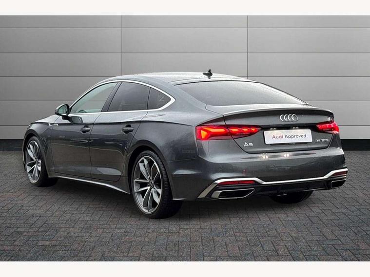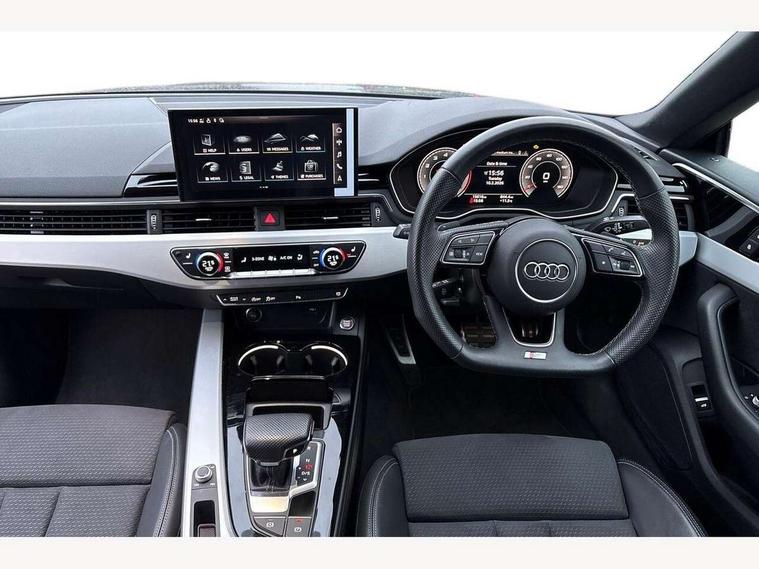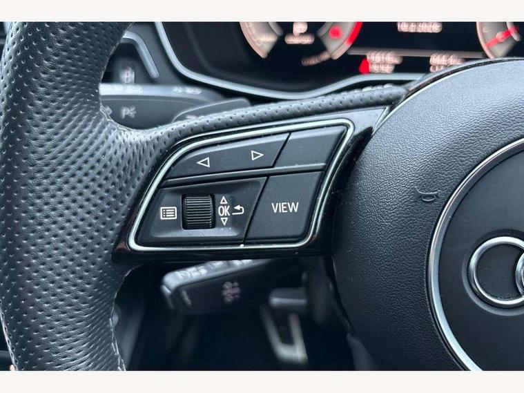 Audi connect safety and service (e-call), Audi connect with Amazon Alexa Integration, Audi drive select (Auto, Comfort, Dynamic and Individual), Audi parking system plus with front and rear sensors, Audi smartphone interface, Audi virtual cockpit - 12.3" full colour digital instrument cluster, vehicle/engine speed, Radio/media information+Driver assistance systems, Automatic start-stop system with coasting functionality and efficiency programme, Bluetooth interface, Electro-mechanical power steering, Email, calendar and text messages displayed via MMI, MMI nav+ with MMI touch - 10.1" high resolution MMI display, touch sensitive, 3D map, route/country info, dynamic route guide, personal route assist, Power operated tailgate, Rear view camera, Service interval indicator, Voice control system, Sports suspension lowered by 23mm, 8 passive loudspeakers, CD player, DAB digital radio reception, Two additional USB ports for rear passenger in rear centre console, Two SDXC card slots, Audi matrix LED headlights with LED rear lights + dynamic front and rear indicators, Auto dimming door mirrors, Auto dimming rear view mirror, Body colour bumpers, Body colour door handles, Body colour front spoiler lip, Body colour side sill trim, Body coloured door mirrors, Electric adjustable heated door mirrors, Electric folding door mirrors, Electric front windows, Front fog lights, Honeycomb structure radiator grille in grained matt black, Kerb-view function for passenger side, LED daytime running lights, LED side indicator lights integrated into door mirrors, LED third brake light, Matt aluminium silver tailpipe trim, Privacy glass, Rain and light sensors, Rear side wing doors, S line badges on front wings, S line front and rear bumpers with side skirts, S Line rear diffuser in matt titanium black with trim strip in matt aluminium silver, Side air inlets in grained matt black with matt aluminium silver inlay, Variable front intermittent wipers, Windscreen with acoustic glazing, 3 seat bench in 2nd row, 4 way electric lumbar support for driver and front passenger, 40/20/40 split folding 3 seater rear bench seat, Adjustable steering column, Black cloth headlining, Black perforated leather gearknob, Contrast stitching on seats, steering wheel and gear lever gaiter, Deluxe 3 zone electronic climate control, Front centre armrest, Front head restraints, Front/rear floor mats, Heated front seats, Illuminated door sill trim with S logo, ISOFIX child seat mounting and top tether, Luggage compartment mat, Manual seat adjustment, Rear centre armrest, Rear headrests, Single front passenger seat, Stainless steel pedals, Sunvisors with vanity mirrors, LED interior light pack - A5/RS5, 3x3 point rear seatbelts, 6 airbags - Driver, front passenger, curtain and side airbags, Electromechanical parking brake, Electronic Stabilisation Control (ESC) including ABS, ASR and EDL, Front passenger airbag deactivation, Height adjustable front seatbelts, Hill hold assist, Manual child lock in rear doors, Multi collision brake assist, Pop-up bonnet for pedestrian protection, Pre sense city, Seatbelt monitoring, Tyre pressure warning, Variable restraint system, Warning triangle and first aid kit, Anti theft alarm system, Anti theft wheel bolts, Immobiliser, Keyless Go, Remote central locking, Matt brushed aluminium inlays, Tool kit, Tyre repair kit,