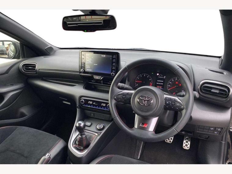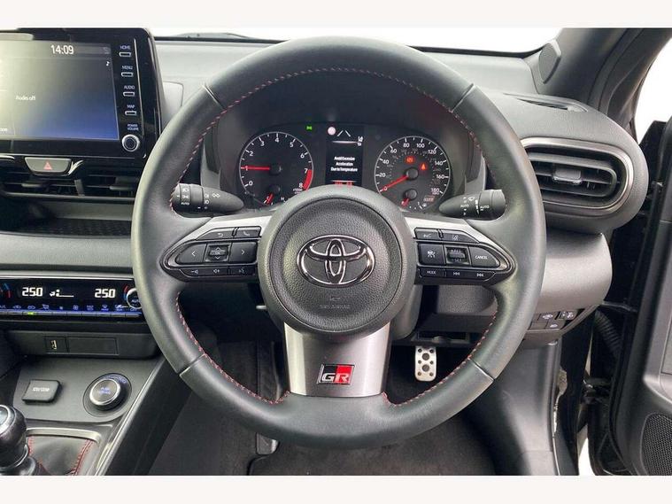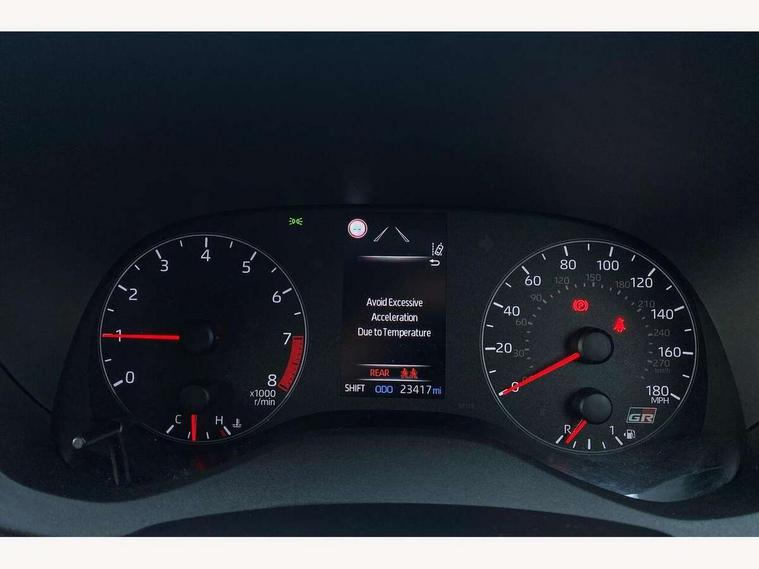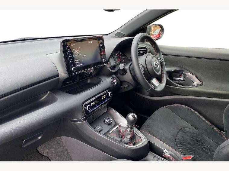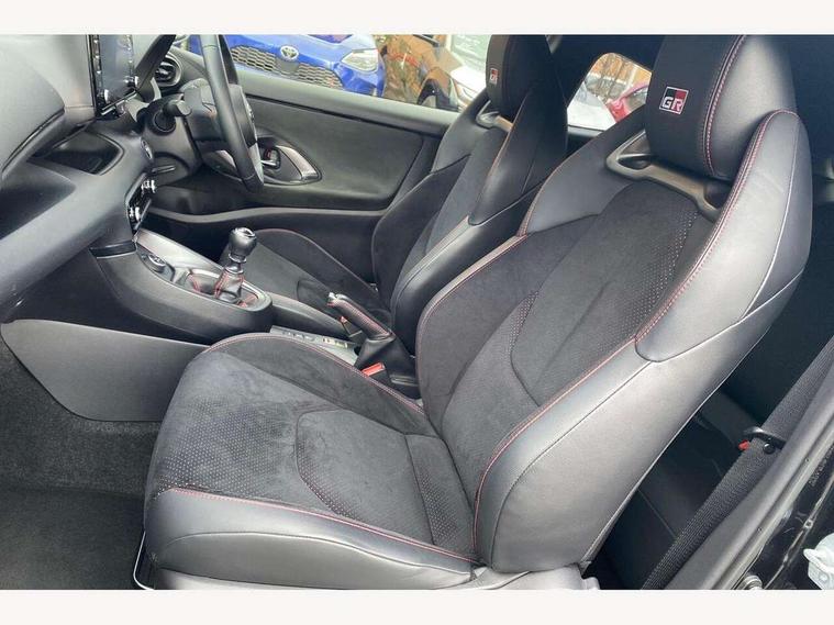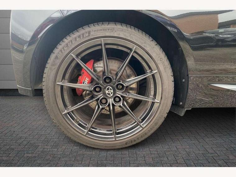 Apple car play/Android Auto, Coloured TFT multi informational display, eCall emergency system, Emergency steering assist, Intelligent adaptive cruise control, Lane Departure Alert (LDA) switch on steering wheel, Lane trace assist, Power Steering, Pre-collision system (PCS), Reversing camera, Road sign assist - RSA, Circuit tuned GR suspension, Double wishbone rear suspension, GR-Four AWD switch, MacPherson front suspension, Vehicle Stability Control (VSC), 6 speakers, 8" Multimedia display touch screen, DAB Digital radio, Toyota touch 2 multimedia system, USB connection, Adaptive high beam assist, Adaptive LED Headlights, Air intakes for brake cooling, Auto dimming eletrochromatic rear view mirror, Auto windscreen wipers, Automatic headlights, Automatic headlights cut-off, Automatically retractable door mirrors, Black contrasting colour door mirrors, Black rear spoiler, Body coloured door handles, Body coloured rear bumper, Carbon fibre roof wrap, Door scuff plates, Dual exhaust pipes, Electric adjustable heated door mirrors, Follow me home headlights, Front auto power windows with anti jam protection, Gloss black GR front bumper, GR badges 1 front, 1 rear and 2 sides, GR lower front grille, Integrated LED indicators in door mirrors, LED daytime running lights, LED fog lights, LED High mounted stop lamp, LED rear combination lights, Piano black side air vents, Privacy glass on rear and back windows, Rear auto power windows with anti jam protection, Rear window defogger, Shark fin antenna, 12v socket in front, 2 rear head restraints, 3 spoke leather sports steering wheel, 60/40 split folding rear seat, Aluminium pedals, Clean air filter, Driver and passenger headrests, Driver's sun visor with vanity mirror, Dual zone automatic air conditioning, Front bottle holders, Front cup holders, Front map light, Front sports seats, GR floor mats, GR logo on steering wheel, GR Ultrasuede leather upholstery, Height adjustable driver's seat, Isofix child rear seat restraints, Leather gearshift, Leather handbrake, Manual slide adjustable on driver's and passenger seats, Microphone on front personal light, Multimedia switch on steering wheel, Pollen filter, Red stitching on gearshift, Red stitching on handbrake lever, Satin chrome interior door handles, Soft tonneau cover, Ticket holder on driver's sun visor, Tilt/telescopic steering column, ABS with Brake Assist, Airbags - driver and front passenger, Driver and passenger side airbags, Emergency brake light system (EBS), Front passenger airbag on/off switch, Front seatbelt reminder, Hill start assist control (HAC), Rear passenger airbag, Rear seat belt reminder, Red brake callipers, Red sport front and rear brake pads, Start holding control, Torsen limited slip differentials x2, Tyre pressure warning system, Alarm/immobiliser, Keyless smart entry with push button start, 18" 10 spoke forged alloy wheels with Michelin pilot sport, Tyre repair kit,