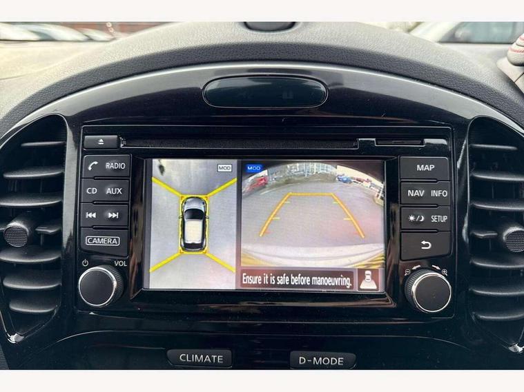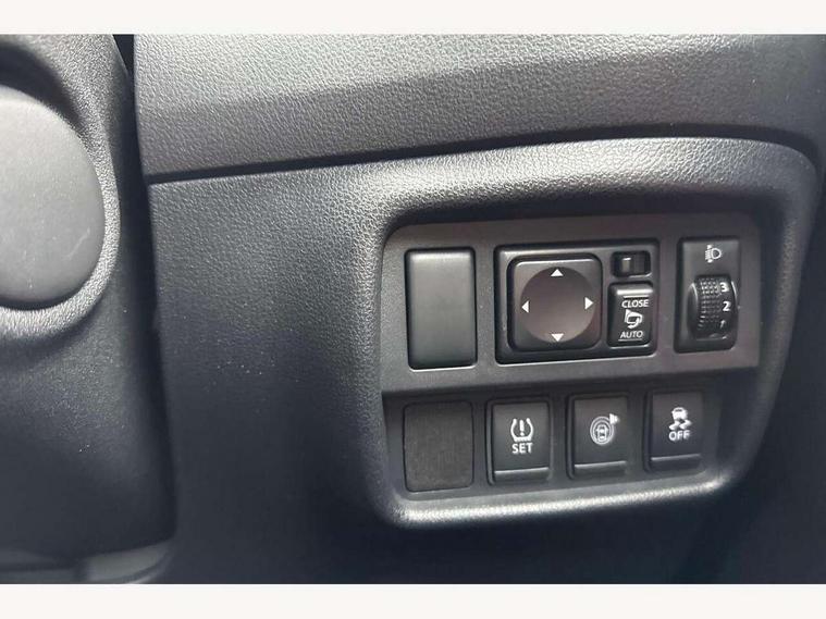 Around View Monitor, Blind spot monitoring, Bluetooth system, Colour rear view camera, Cruise control + speed limiter, Electric speed sensitive power steering, Lane departure warning system, Moving object detection, Nissan connect sat nav system, Push button starter, Service interval indicator, Trip computer, 6 speakers, Aux input, DAB Digital radio, Steering wheel mounted audio controls, Stereo radio/CD player and MP3 facility, USB port, 2 speed wipers+variable intermittent wipe, Automatic headlights, Body colour bumpers, Body colour door handles, Dusk sensor, Electric door mirrors, Electric folding door mirrors, Electric front/rear windows, Front fog lights, Heated door mirrors, LED daytime running lights, Privacy glass, Rain sensor, Rear wiper, 12V socket, 60/40 split folding rear seat, Climate control, Front armrest, Front cupholders x 2, Front door pockets with bottle holders, Front head restraints, Front seat belt pre-tensioners with load limiters, Gear shift indicator, Glovebox, Heated front seats, Height adjustable driver's seat, Internal chrome door handles, Isofix child seat preparation, Leather steering wheel and gear knob, Leather upholstery, Luggage area under floor storage box, Map reading lamp, Passenger seat back pocket, Pollen filter, Rear headrests, Rear tonneau cover integrated into tailgate, Sports seats, Steering wheel rake adjustment, ABS + EBD + EBA, Child locks on rear doors, Driver and passenger airbags, Driver and passenger side airbags, ESP + traction control, Front and rear curtain airbags, Height adjustable front seatbelts, Passenger airbag deactivate switch, Three 3 point rear seatbelts, Tyre pressure monitoring system, VDC Dynamic Vehicle Control, Warning triangle and first aid kit, Alarm, Immobiliser, Intelligent Key, Remote central locking, 17" Urban alloy wheels, Tyre repair kit,