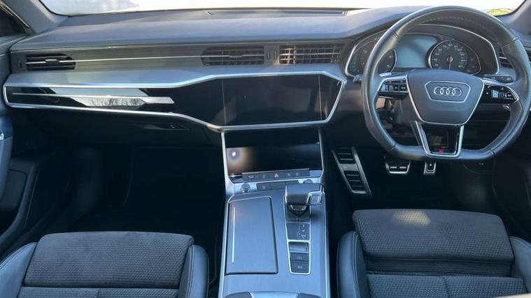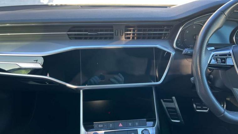 7" high resolution colour driver information display system, Audi connect safety and service (e-call), Audi drive select, Audi parking system plus - acoustic and visual park assist system for front and rear, Audi smartphone interface, Automatic start/stop system with coasting functionality, Bluetooth interface, Lane departure warning system, MMI navigation with MMI touch + twin touch screens 8.8" and 8.6" with haptic and acoustic feedback, Power operated tailgate, Progressive steering, Rear view camera, Service interval indicator, Voice control system, 12V Mild hybrid, 24 litre AdBlue tank, Diesel particulate filter, Sports suspension, Audi music interface, Audi sound system, Auxiliary input socket, DAB Digital radio, USB connection, Black roof rails, Electric front/rear windows, Frameless auto dimming interior rear view mirror, Gloss black exterior mirror housings, Gloss black highlights on the exterior area of the Audi Single frame, Gloss black highlights on the front and rear bumpers, Gloss black highlights on the radiator grille, Gloss black highlights on the side windows trim strips, Headlight washers, Heat insulating darkened glass in side and rear windows, Heat insulating glass in windshield, LED rear lights, LED signature front daytime running light, Matrix LED headlights with dynamic rear indicators, Matt black rear diffuser with diffuser strip and tailpipes in chrome, Matt black side air intake grille with inlay in matt aluminium, Privacy glass, Rain and light sensors, Rear roof spoiler, Signature rear LED light design, 2 zone deluxe electronic climate control, 4 way electric lumbar support for driver and front passenger, 40/20/40 split folding 3 rear seat bench in 3 parts with rear centre armrest, Black cloth headlining, Electrically adjustable front seats with driver memory, Front centre armrest, Front head restraints, Front/rear floor mats, Heated front seats, Height/reach adjust steering wheel, Illuminated door sill trims with S logo, Illuminated sun visors with vanity mirrors, ISOFIX child seat mounting and Top Tether with front passenger airbag deactivation, Leather gear knob, Luggage compartment system, Rear headrests, Stainless steel pedals and foot rest, Tool kit and car jack, LED Interior Ambient Lighting Pack - A6, Non smoking pack - A6, 3 point seatbelts on all seats, Airbags - Front side, front and rear including head, Audi pre-sense front, Black seatbelts, EBD - Electronic brakeforce distribution, Electromechanical parking brake, Electronic Stability Control (ESC) including ABS, ASR and EDL, Extended pedestrian protection measures, Seatbelt monitoring, Tyre pressure warning light, Warning triangle and first aid kit, Anti theft alarm with tow away protection, Anti-theft wheel bolts and wheel loosening detection, Immobiliser, Keyless Go, Remote central locking, Matt brushed aluminium dark inlays, 20" 5 V spoke star design Audi sport cast aluminium alloy wheels in matt titanium look,