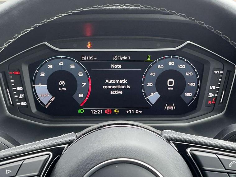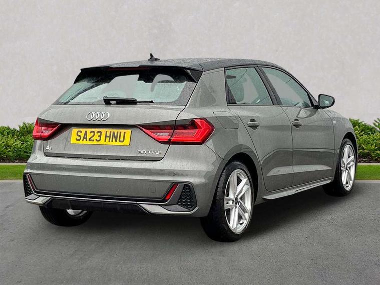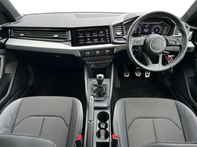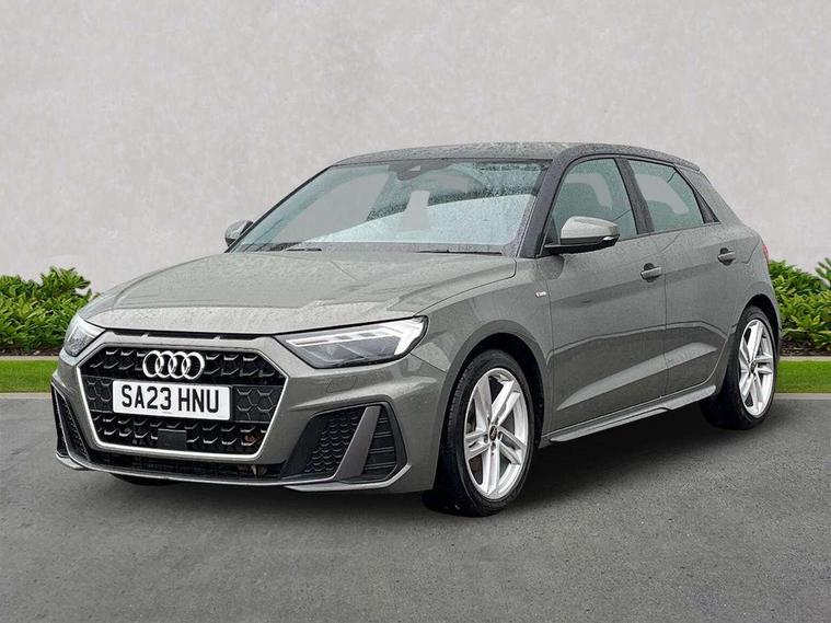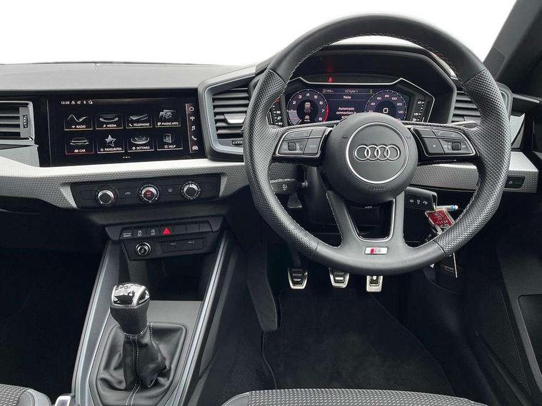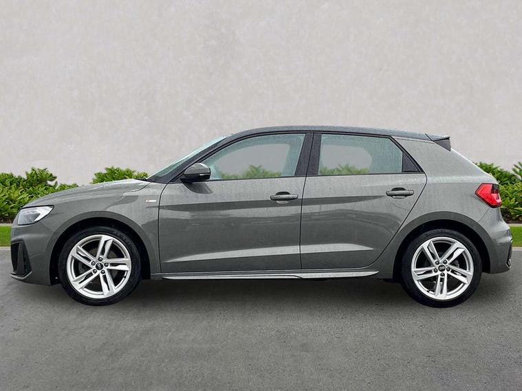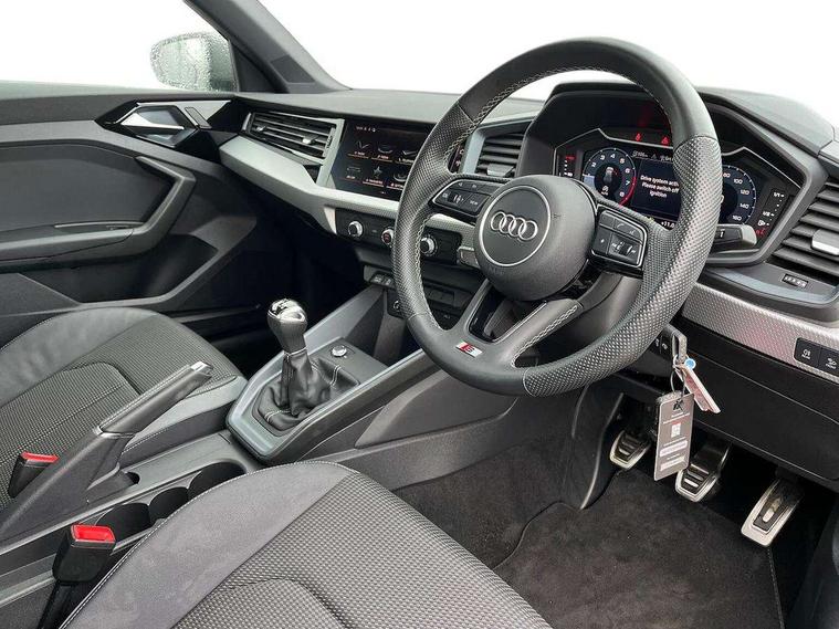 10.25" Digital instrument cluster display classis style instrument dials + speed, odometer, time, outside temperature, telephone menu + fuel level warning, Audi drive select - power steering assistance + engine, Audi smartphone interface with connect compatible smartphone via USB directly MMI display + Nav, music, third party apps controlled via MMI controller, Automatic start/stop system, Bluetooth interface, Cruise control, Driver's information system, Electromechanical power steering, Emergency e-call, Emergency services call system, Lane departure warning system, Service interval indicator, Speed limiter, Voice control system, Washer fluid level indicator, Sports suspension, 1 x SDXC card reader, 2 x USB type C connection points, DAB Digital radio, MMI radio plus with 8.8" colour MMI display screen and MMI touch, Auto dimming rear view mirror, Body coloured door mirrors, Door sills with aluminium inlays and S Line logo, Electric front and rear windows, Electrically adjustable, heated, folding door mirrors with integrated LED side indicator, Front side air inlets in grained matt black and C frame in anthracite black, Heat insulating glass windscreen and side windows, Heated rear windscreen, High level LED brake light, LED headlights with LED rear lights + dynamic rear indicators + headlight adjustment and high beam, turning light + LED daytime running lights, Radiator grille and rear diffuser in matt anthracite black, Radiator protective grille frame in matt aluminium silver, Rain and light sensors, Rear fog lights, Rear side wing doors, Rear wing door, Rear wiper, S line badges on front wings, Side front spoiler lips in grained matt black, 12V socket in centre console with two cup holders, 3 rear seats with headrests, 3 seat bench in 2nd row, 3 spoke leather multi-function plus steering wheel features S badging and grips in perforated leather with contrast stitching, 40:60 Split folding rear seat or folded fully, Black cloth headlining, Driver and passenger seat with manual height adjust with forward and backwards adjustment, Front and rear black floor mats with contrast stitching in fine silver, Front head restraints, Front passenger seat, Height and reach adjustable steering wheel, ISOFIX child seat mounting for front passenger and outer rear seats including top tether attachment point of outer rear seats, Leather gear knob with aluminium trim, Luggage compartment light with front and rear reading lights, Manually adjustable lumbar support in front seats, Stainless steel pedals, LED interior lighting pack - A1, Luggage compartment pack - A1, S line exterior styling pack - A1 Sportback, 3x3 point rear seatbelts, Audi pre-sense front with pedestrain and cyclist recognition, Brake assist function, Driver and front passenger airbag with front side and head airbags, Electronic Stability Control including ABS, EBD, ASR and EDL, Front passenger airbag deactivation switch, Hill hold assist, Manual rear child locks, Seatbelt height adjustment for front seats, Seatbelt monitoring, Tyre pressure warning light, Warning triangle and first aid kit, Anti theft alarm, Anti theft wheel bolts and loose wheel warning, Immobiliser, Remote central locking with 2 foldaway keys, Aluminium trim for control switches, air vents and digital instrument cluster, Silver grey inlays polygon structure in diamond paint finish, Structured grey accent areas including air vents, door handle recesses and centre console in quartz paint finish,