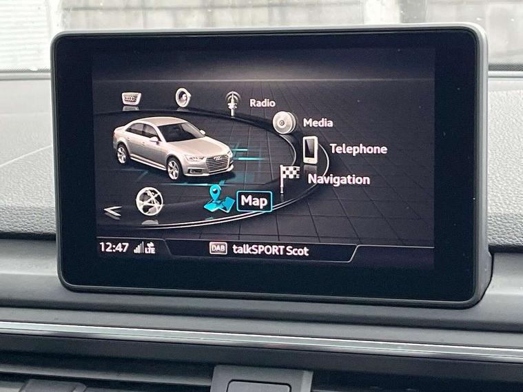 7" Colour driver information system, Audi connect safety and service (e-call), Audi drive select, Audi parking system plus with front and rear sensors, Audi Pre sense collision avoidance, Bluetooth interface, Cruise control + speed limiter, Driver information centre, Electric boot release, Electromechanical power steering, MMI SD card Navigation, Service interval indicator, Stop/start button, Voice control system, 54 litre fuel tank, Comfort dynamic suspension, 2 USB interfaces and Aux-In jack, DAB digital radio module, Acoustic windscreen, Air inlets in titanium black, Aluminium window trim, Auto dimming rear view mirror, Automatic headlights + automatic windscreen wipers, Body colour bumpers, Body colour door mirrors, Chrome door handles, Chrome rolled exhaust, Electric front windows, Electric rear windows, Headlight range control, High gloss black triangular aperture at rear door, LED indicators in door mirrors, Rain and light sensors, Rear diffuser design trapezoidal tailpipe, Titan black radiator grille with chrome inlay, 3 Spoke leather multi function steering wheel, 3 zone climate control, 40/20/40 split folding rear seats with rear centre armrest, Aluminium door sill trims, Cloth headlining, Concept cloth upholstery, Front centre armrest, Front headrests, Front/rear floor mats, Height and reach adjustable steering wheel with full size airbag, Interior light, Isofix child seat preparation for front passenger/outer rear seats inc passenger airbag deactivation, Jack and tool kit, Luggage compartment carpet, Rear headrests, Sunvisors with vanity mirrors, Top tether anchor plate for isofix child seat, High gloss package - A4, Non Smokers pack, 3 point seatbelts on all rear seats, Adaptive driver and front passenger airbags, Electromechanical parking brake, Electronic stabilisation control including ABS, ASR and EDL, Front head airbags, Front seatbelt pretensioners + load limiters, Front side airbags, Multi-Collision braking, Pop-up bonnet for pedestrian protection, Seatbelt warning, Traction control, Tyre pressure warning, Variable restraint system, Warning triangle and first aid kit, Anti theft alarm, Keyless start, Locking wheel bolts, Remote central locking, Thatcham category 1 alarm + immobiliser, MMI radio plus with smartphone interface, Tyre repair kit,